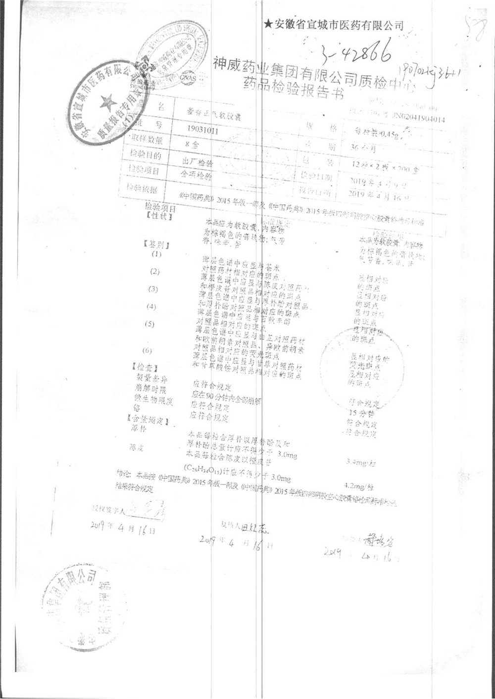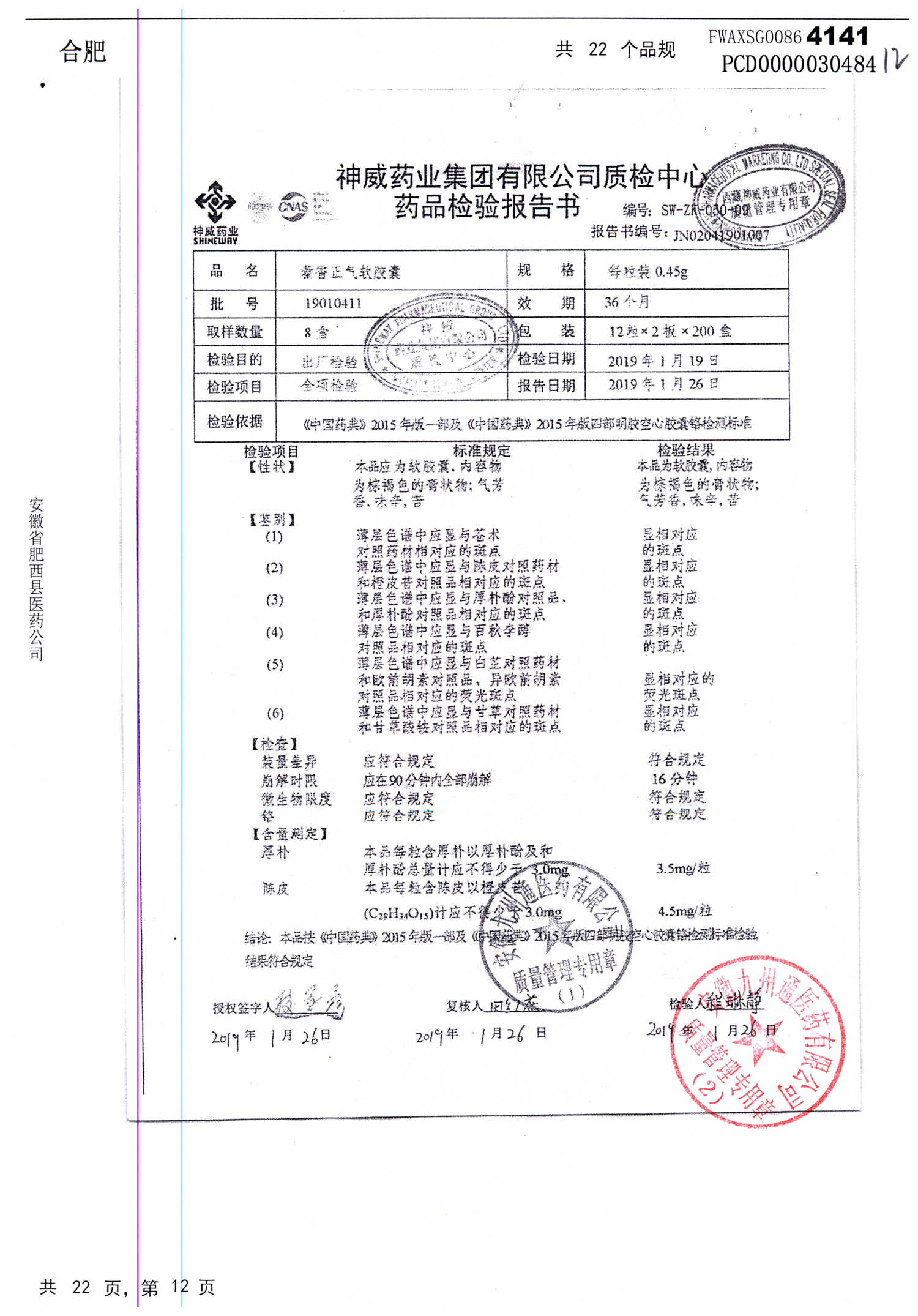 藿香正气软胶囊 | 0.45g*24粒 | 19031011 | 查看详情 |