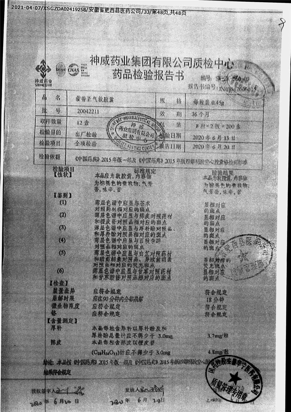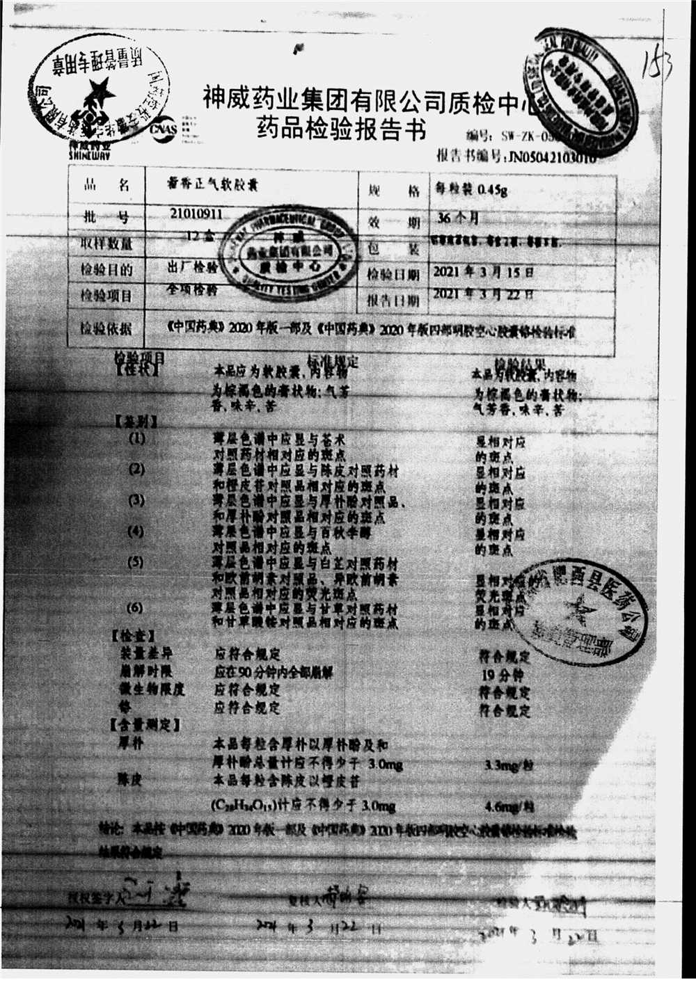 藿香正气软胶囊 | 0.45g*24粒 | 21033011 | 查看详情 |