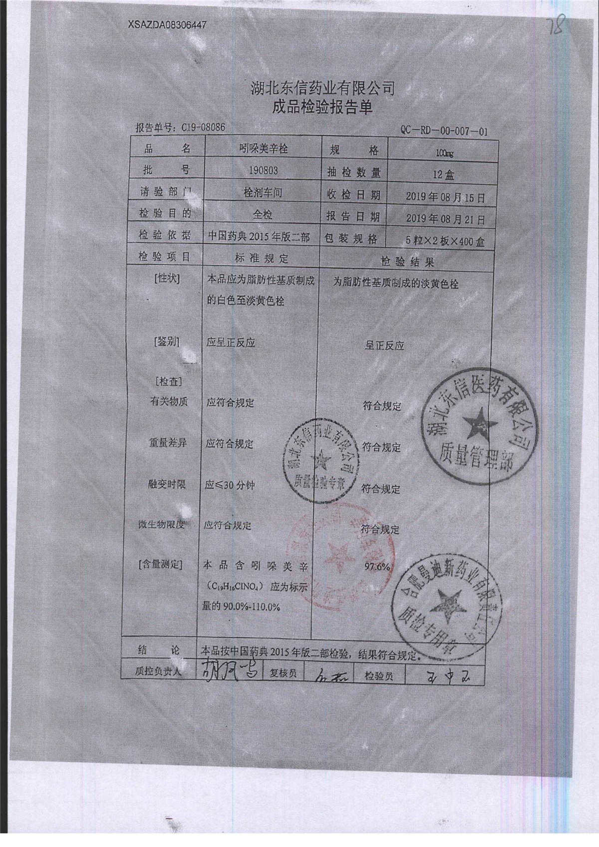 吲哚美辛栓 | 100mg | 190803 | 查看详情 |