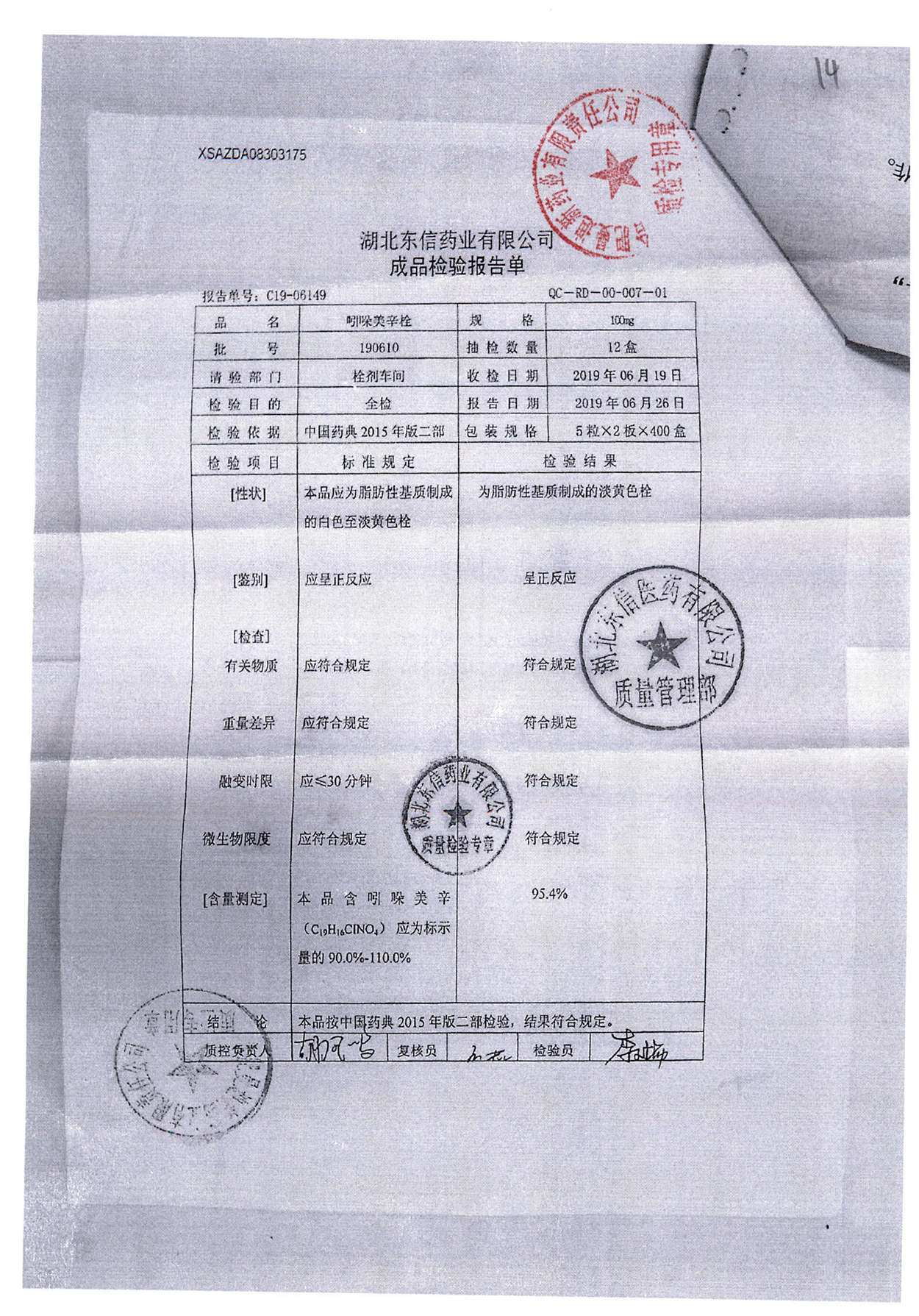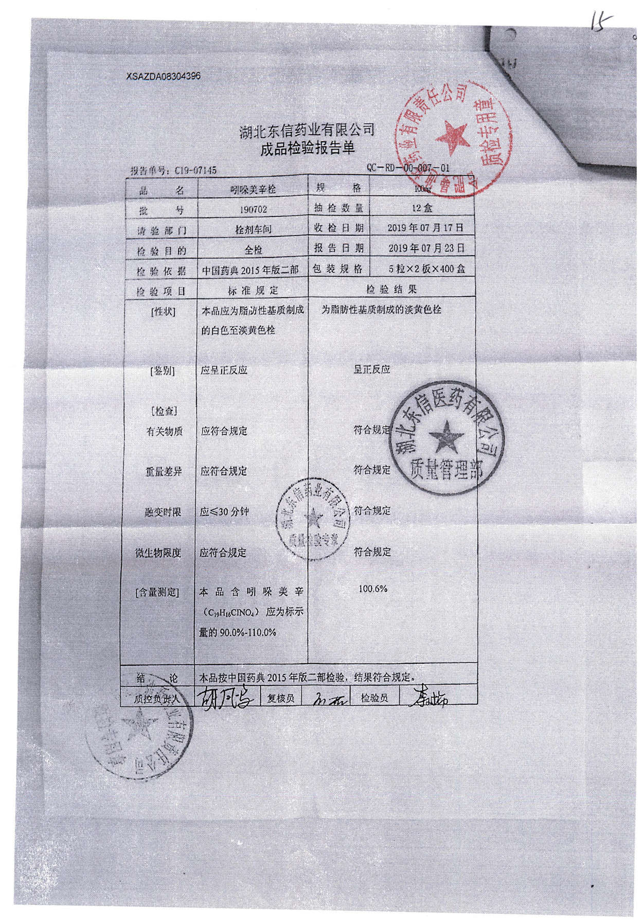 吲哚美辛栓 | 100mg | 190610 | 查看详情 |