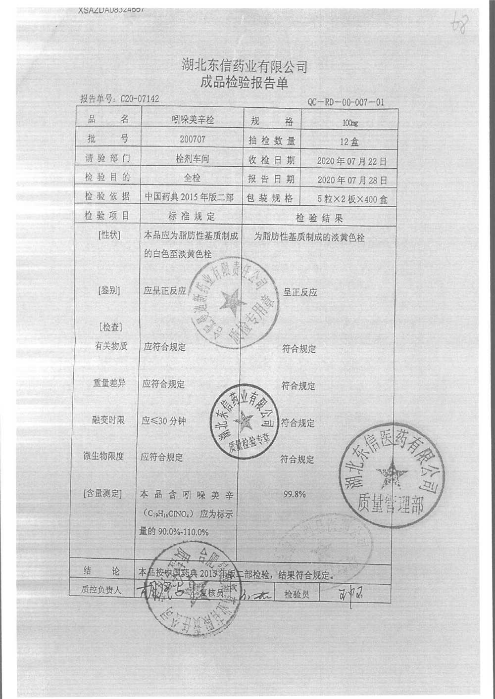 吲哚美辛栓 | 100mg | 200707 | 查看详情 |