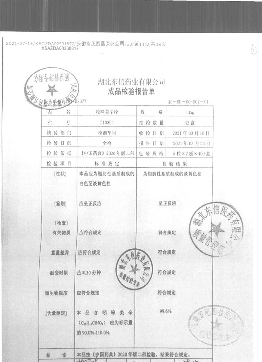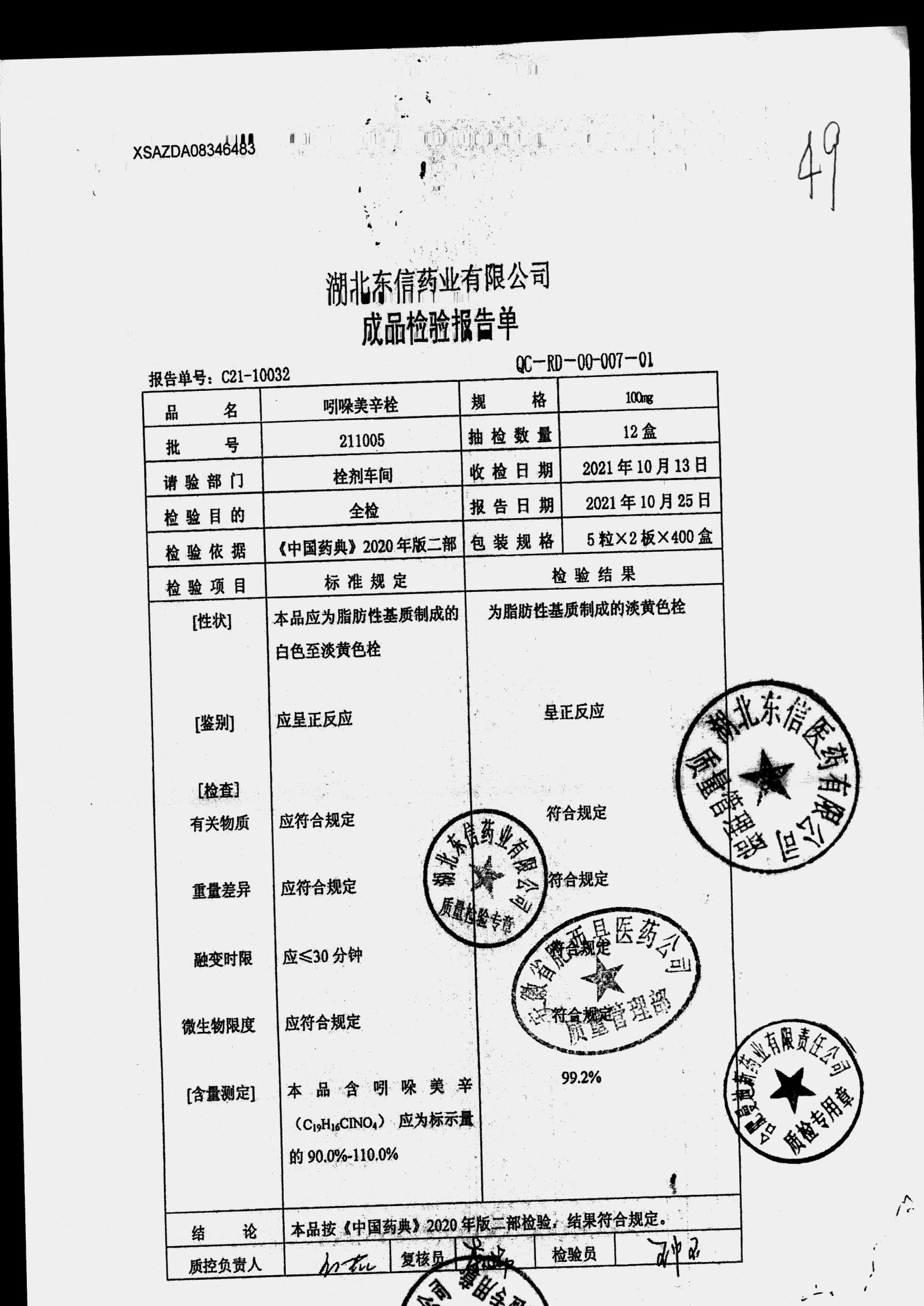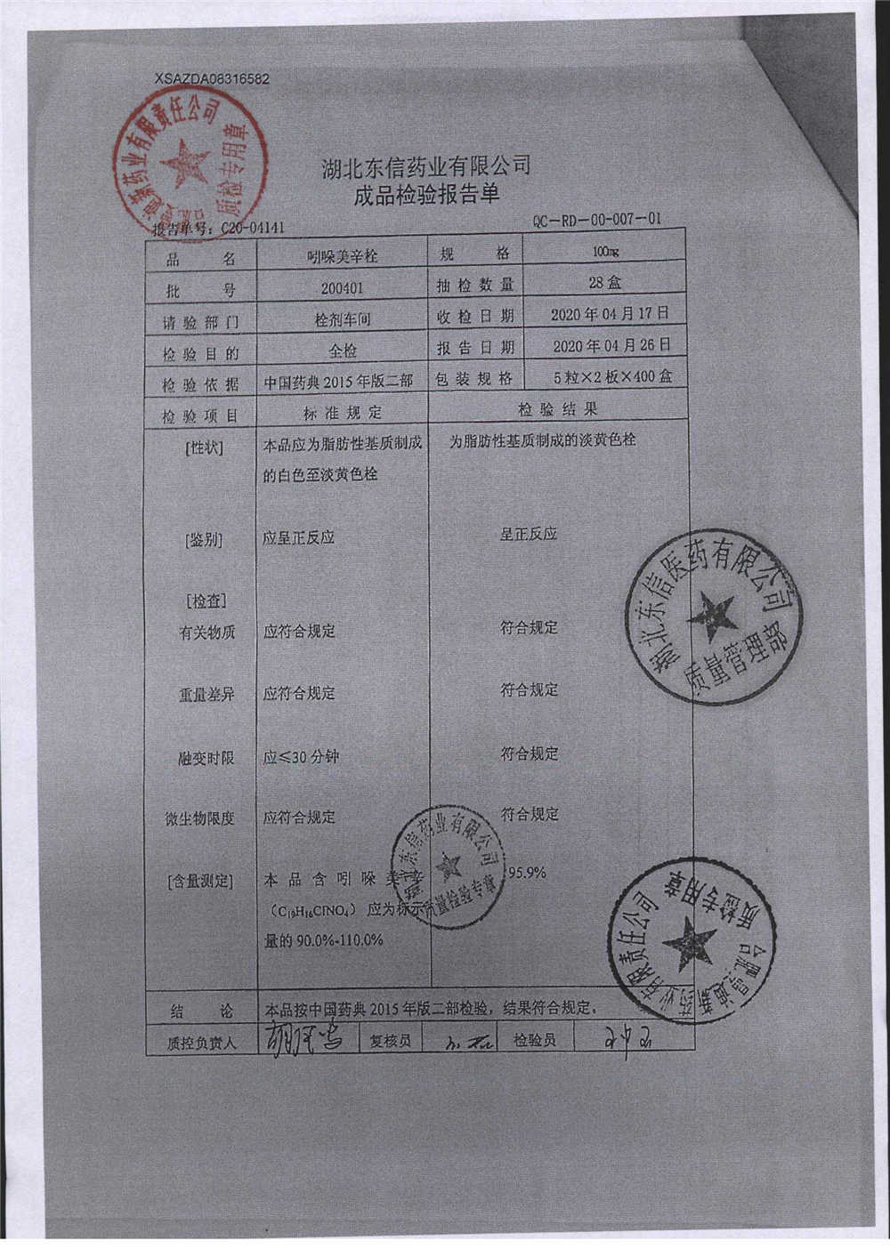 吲哚美辛栓 | 100mg | 180409 | 查看详情 |