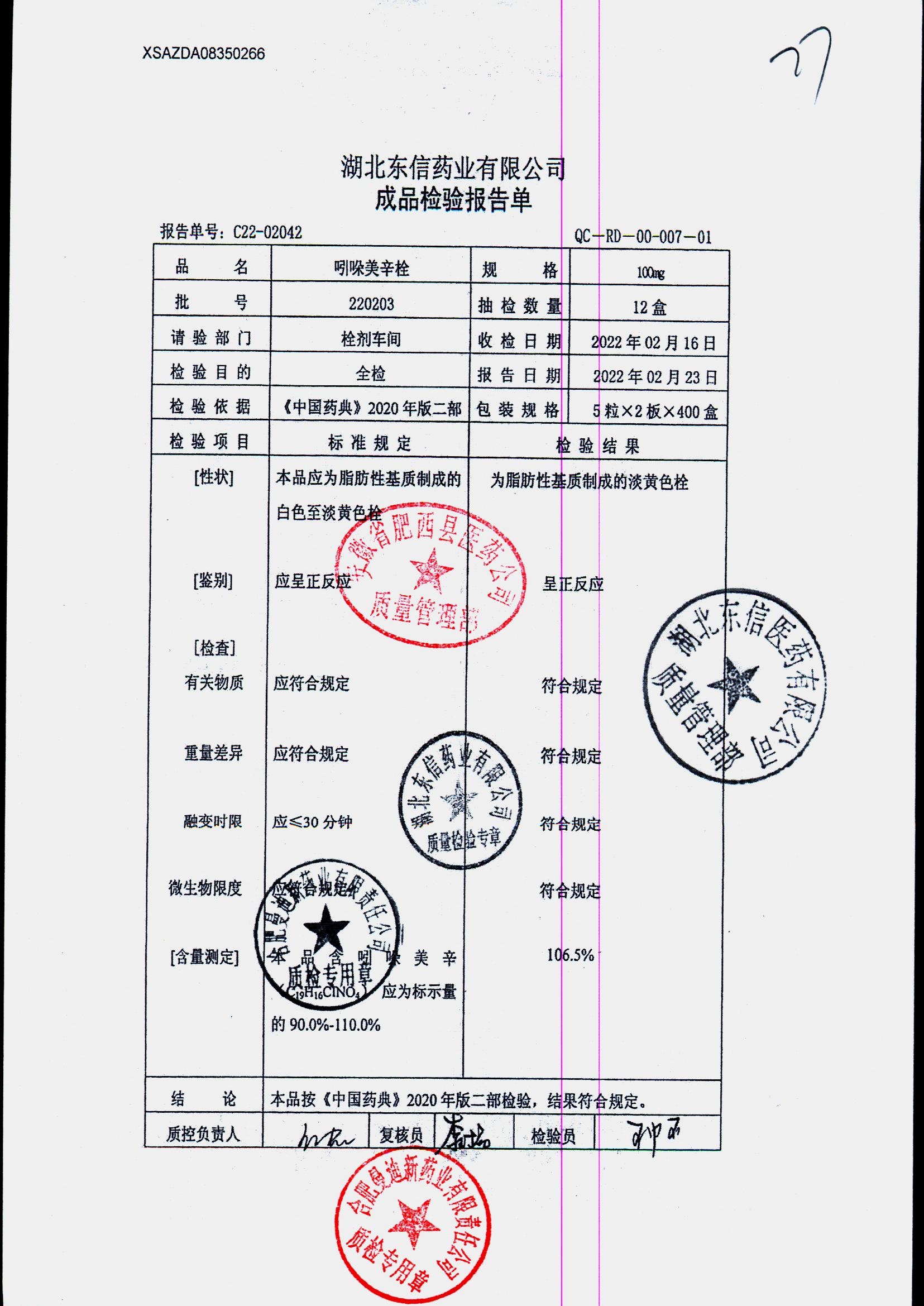 吲哚美辛栓 | 100mg | 220203 | 查看详情 |