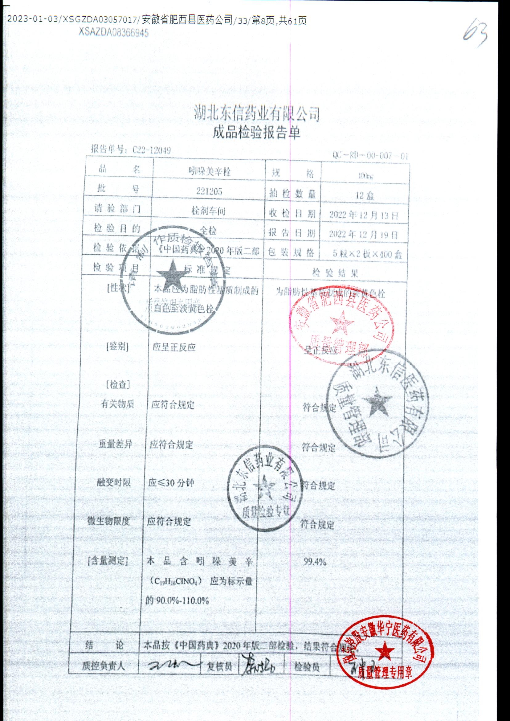 吲哚美辛栓 | 100mg | 221205 | 查看详情 |