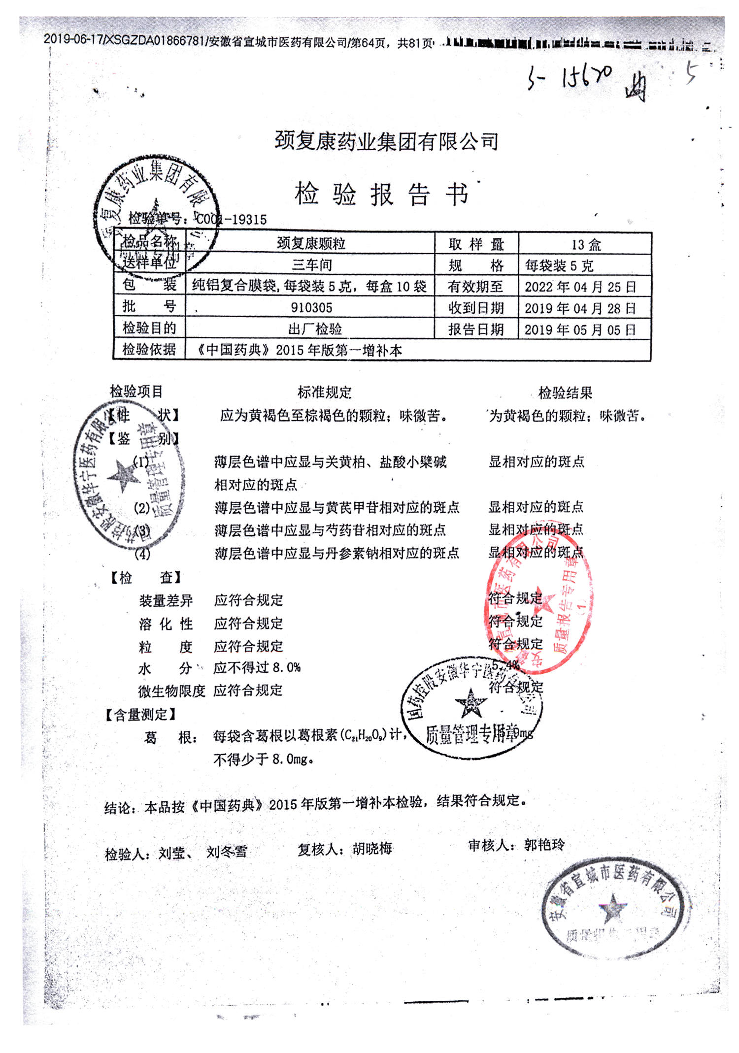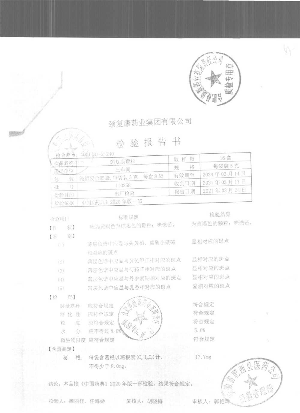颈复康颗粒 | 5g*10袋 | 010012 | 查看详情 |