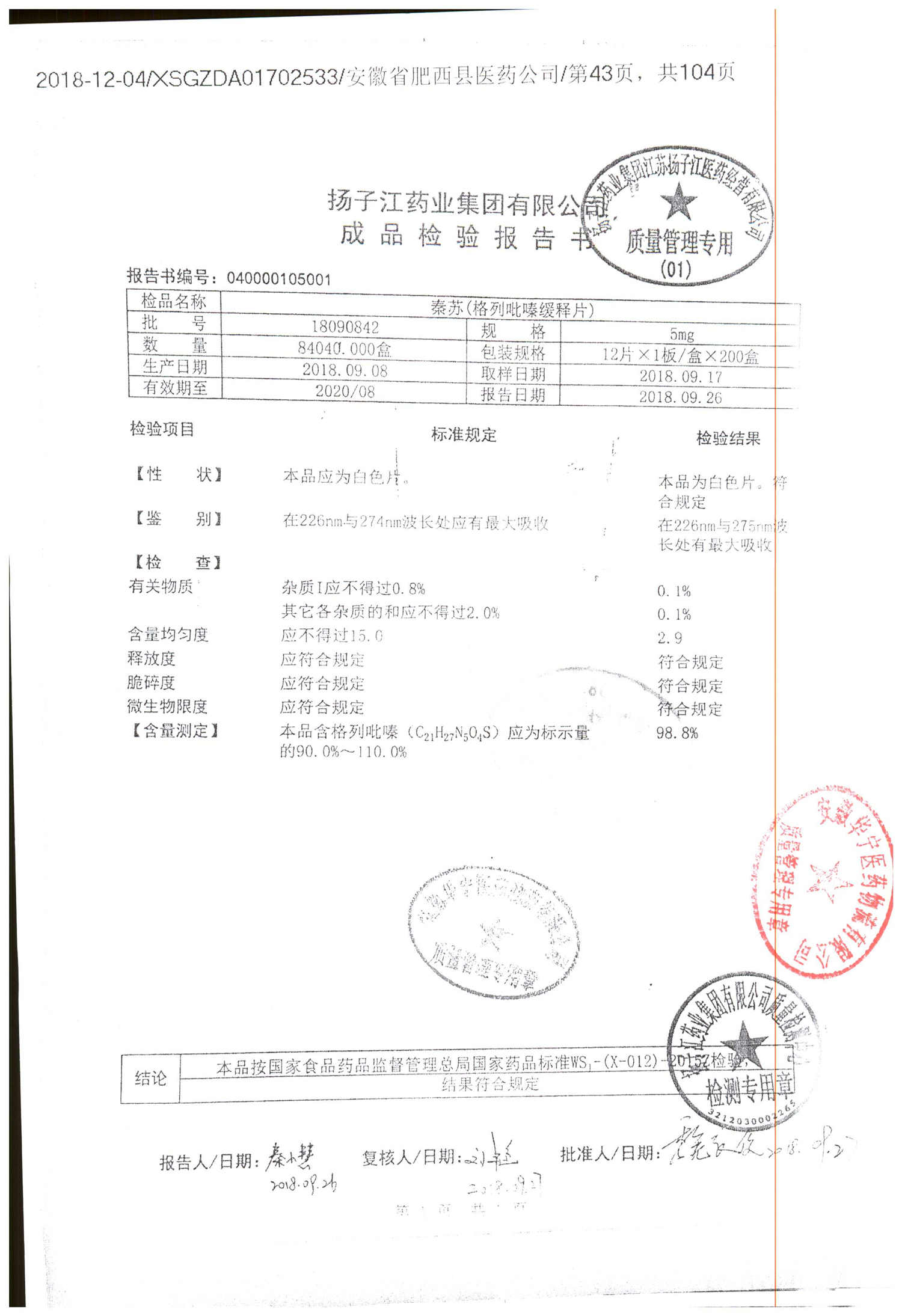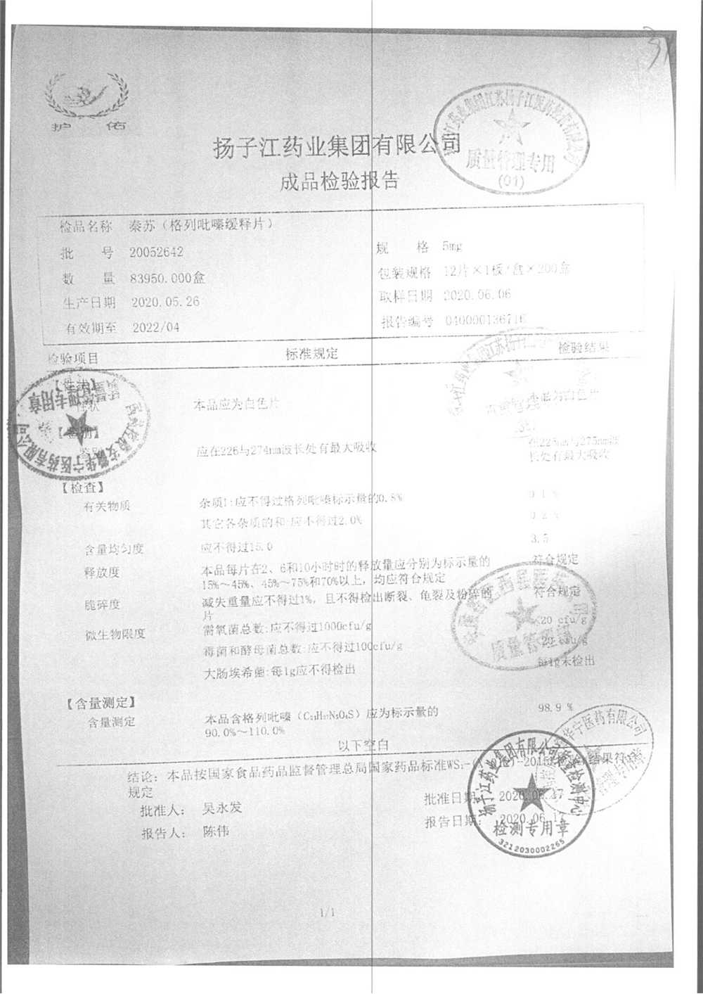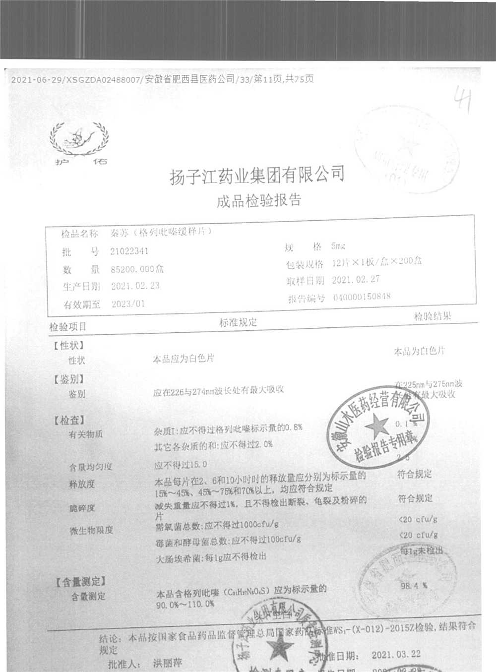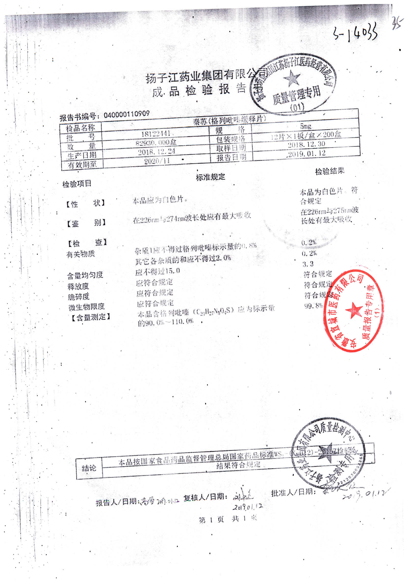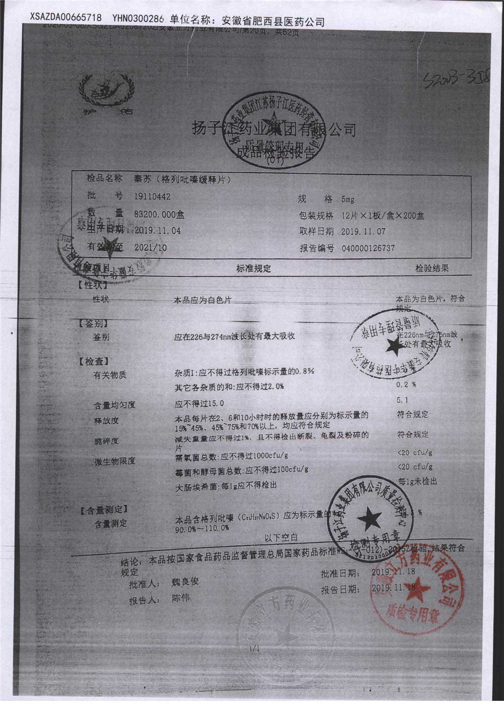 格列吡嗪缓释片 | 5mg*12片 | 20052642 | 查看详情 |