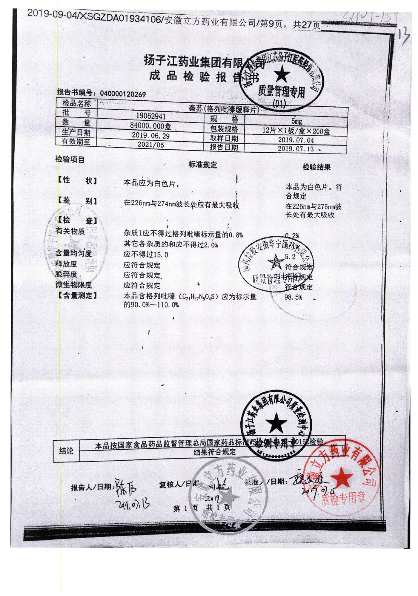 格列吡嗪缓释片 | 5mg*12片 | 19081041 | 查看详情 |