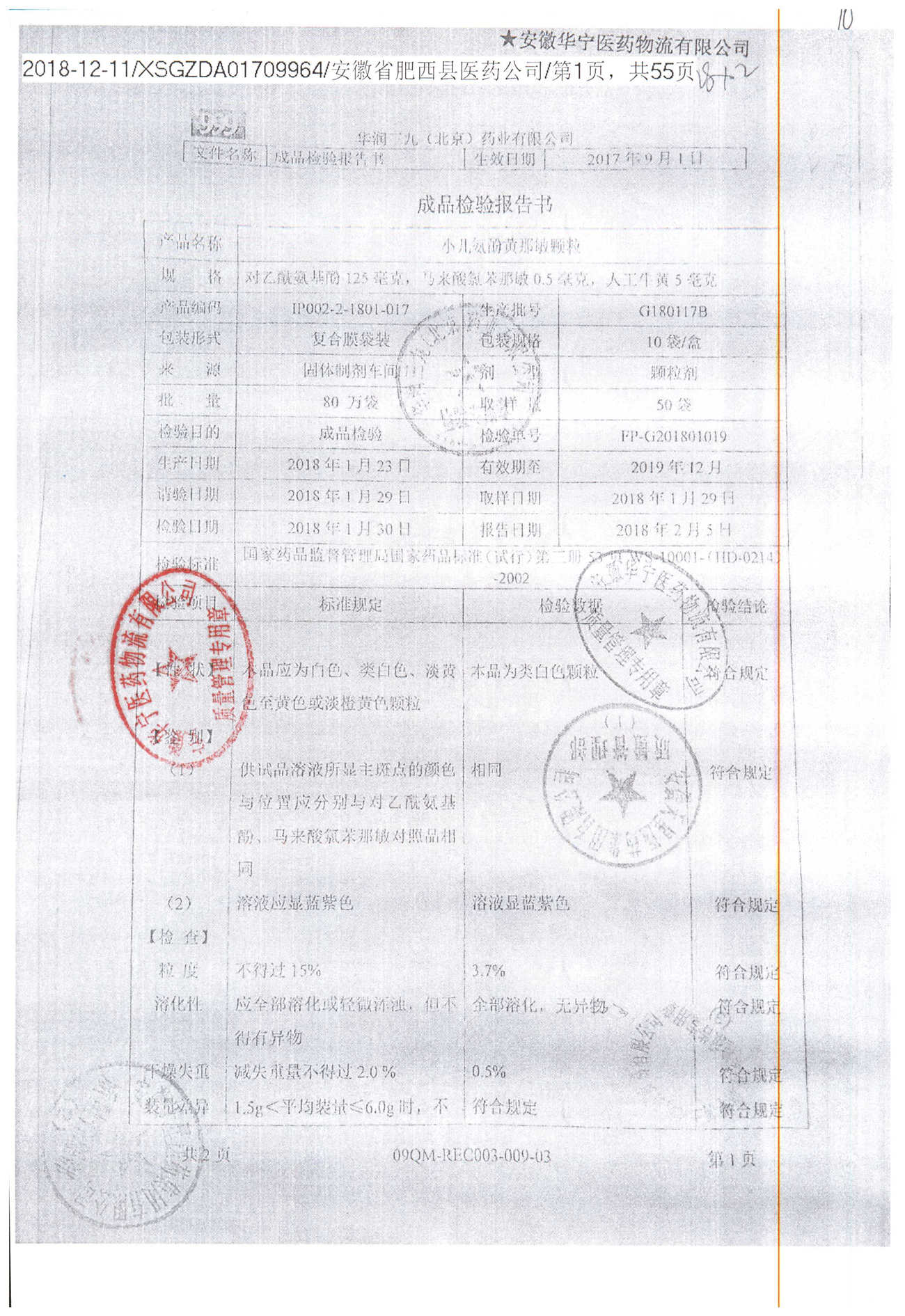 小儿氨酚黄那敏颗粒 | 10袋 | G180117B(1/2) | 查看详情 |