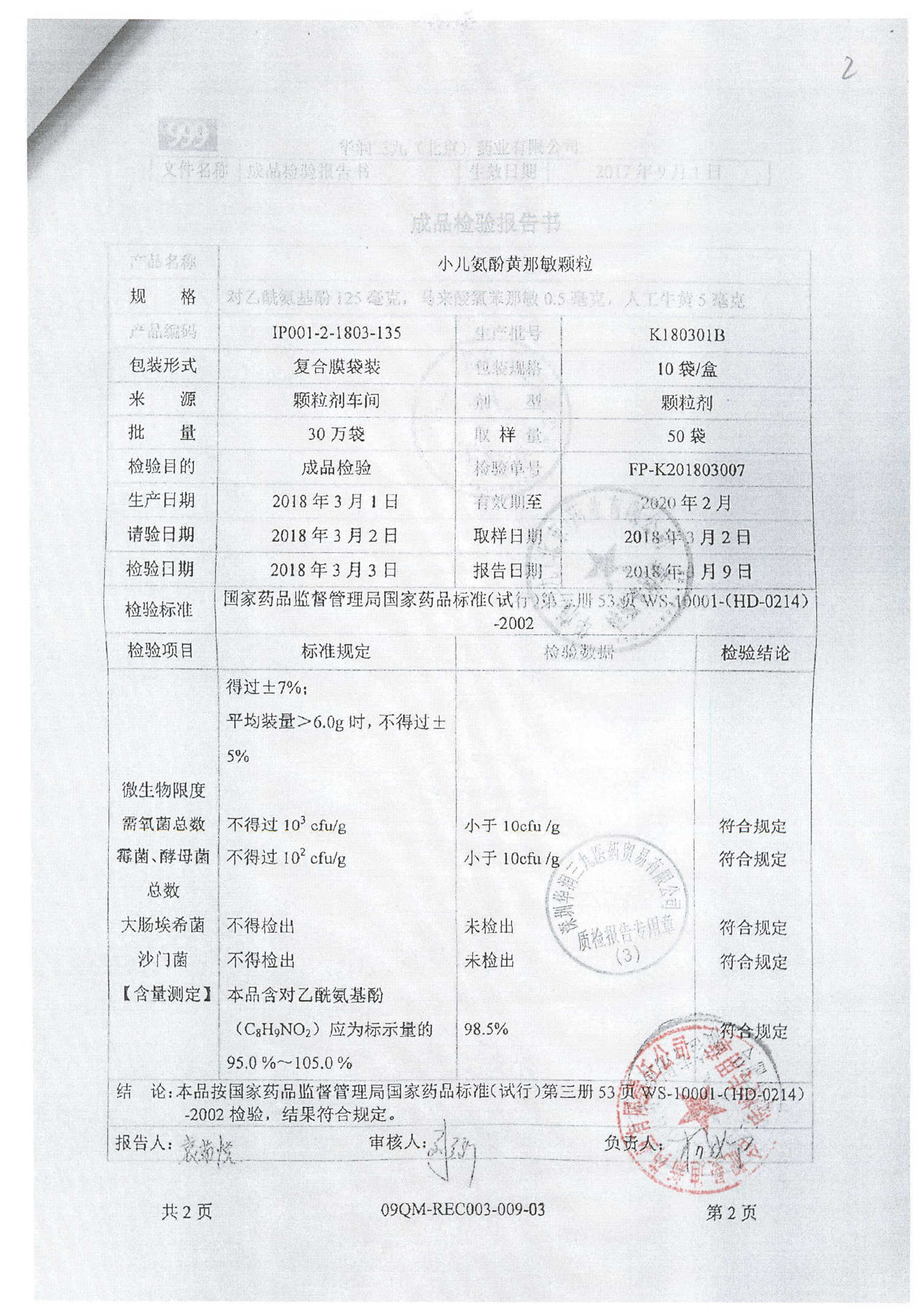 小儿氨酚黄那敏颗粒 | 10袋 | K180301B(2/2) | 查看详情 |