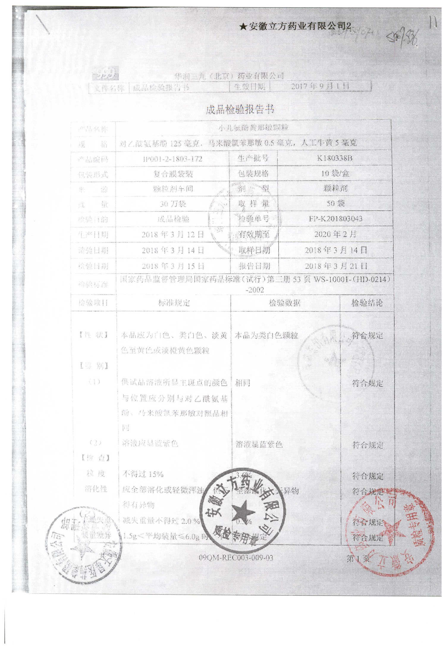小儿氨酚黄那敏颗粒 | 10袋 | K180336B(2/2) | 查看详情 |