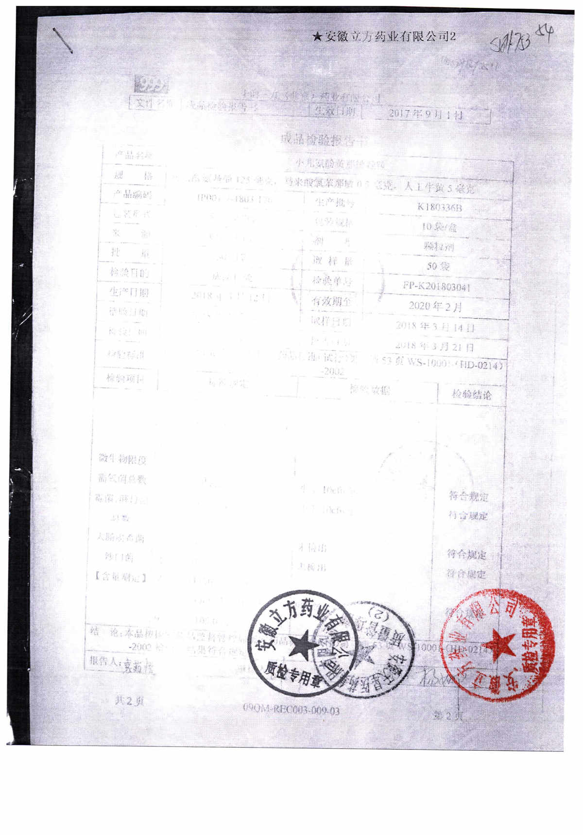 小儿氨酚黄那敏颗粒 | 10袋 | K180336B(1/2) | 查看详情 |