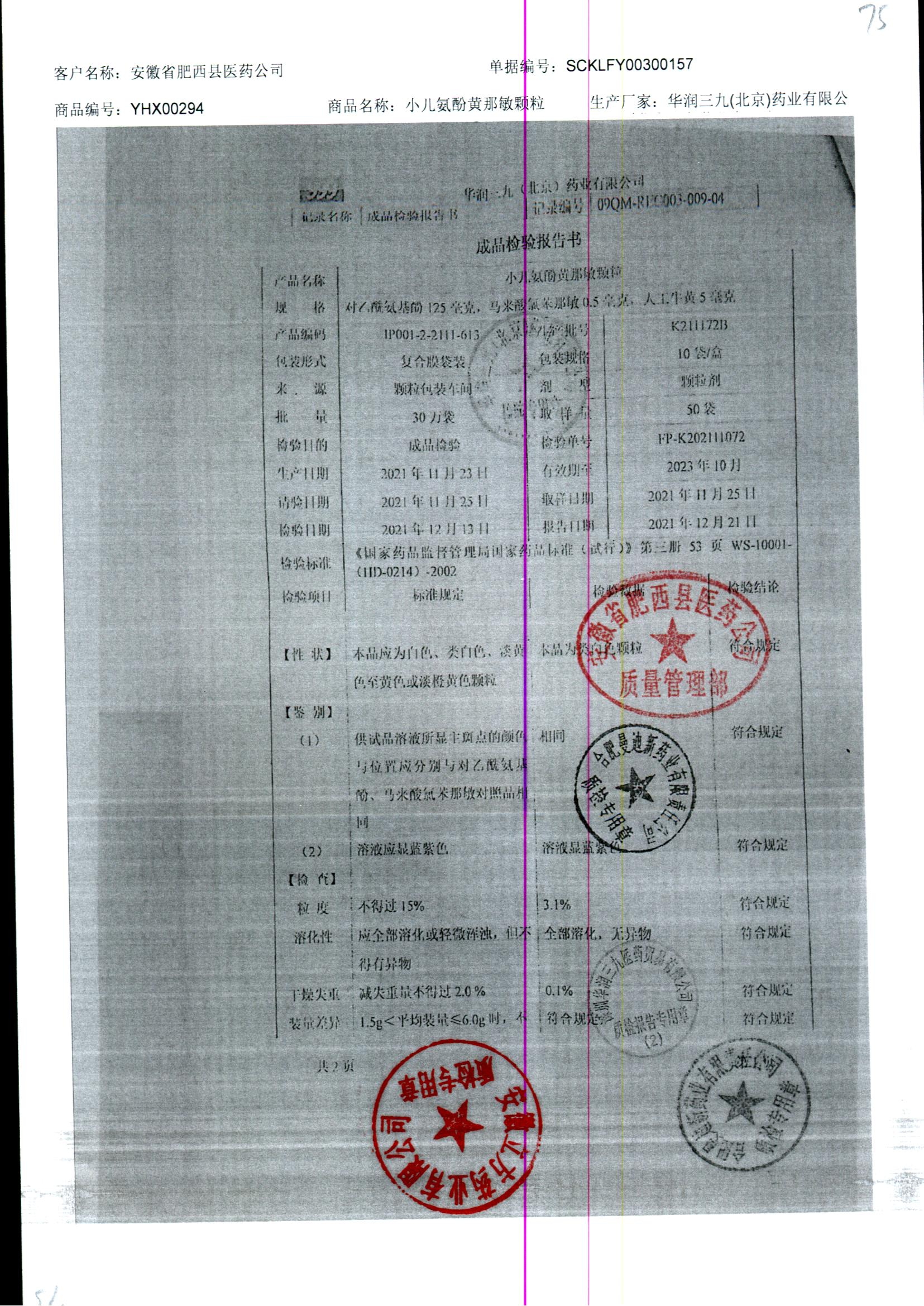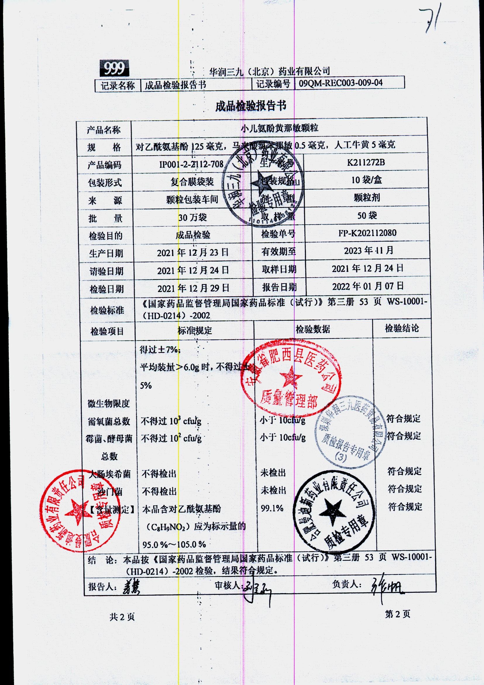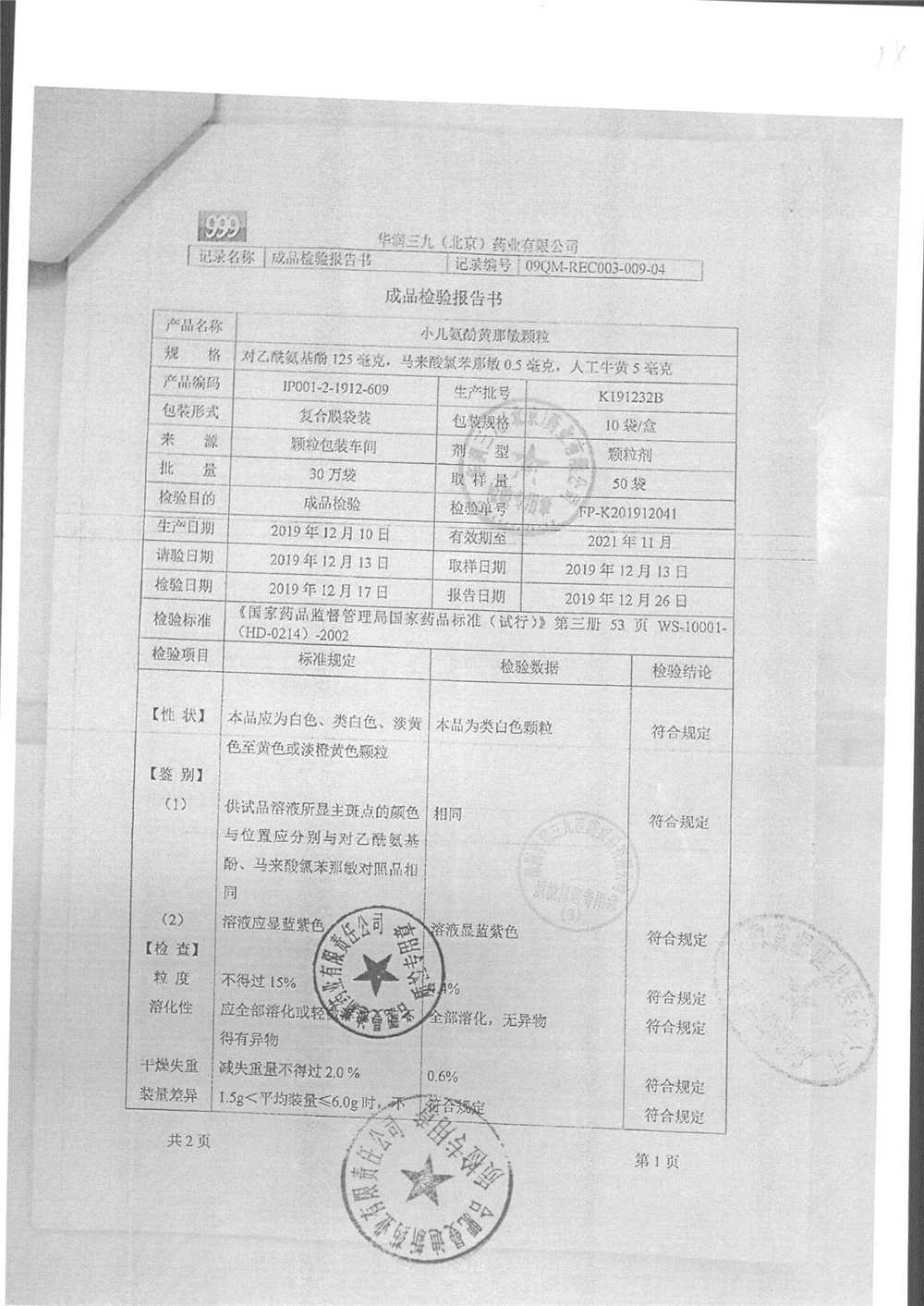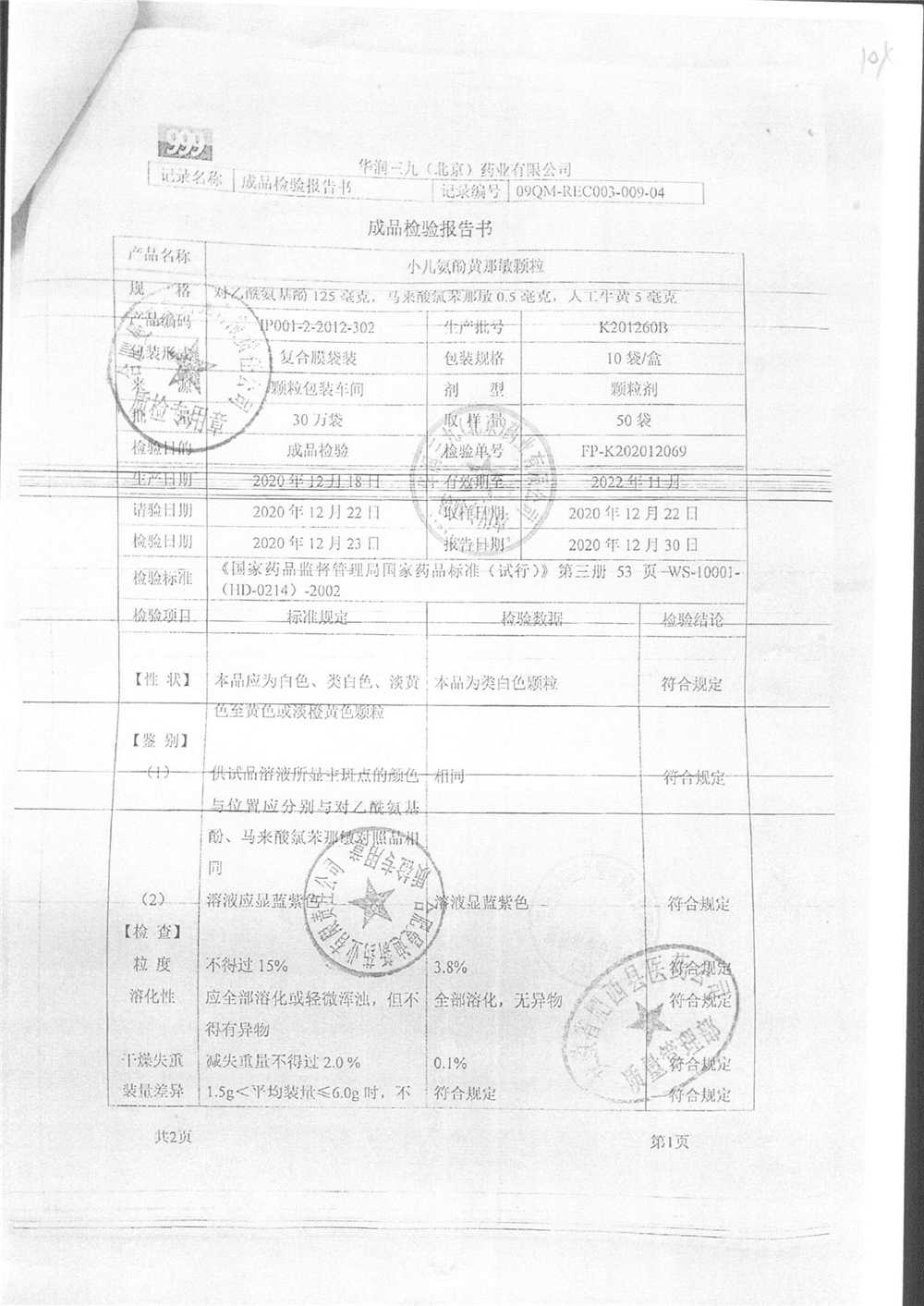 小儿氨酚黄那敏颗粒 | 10袋 | K210306B(1/2) | 查看详情 |