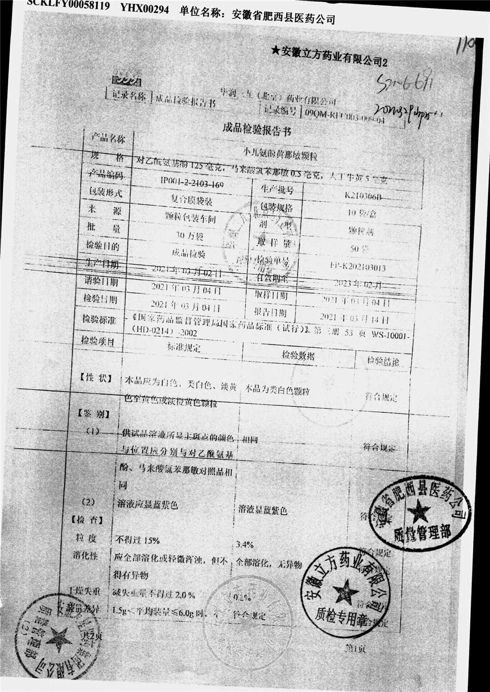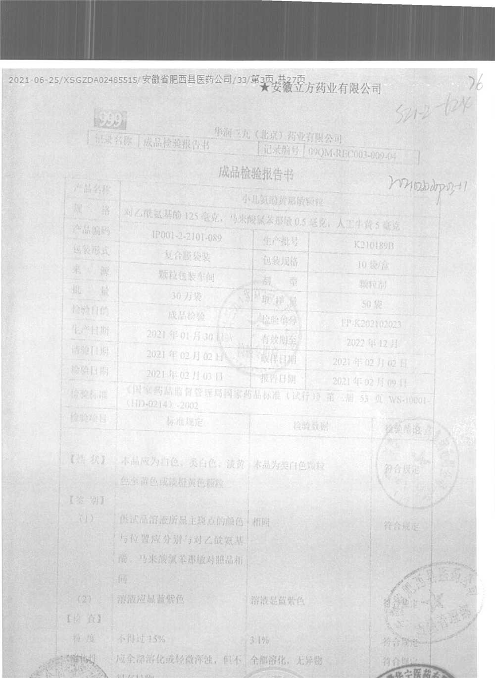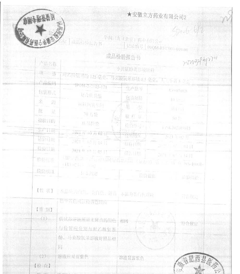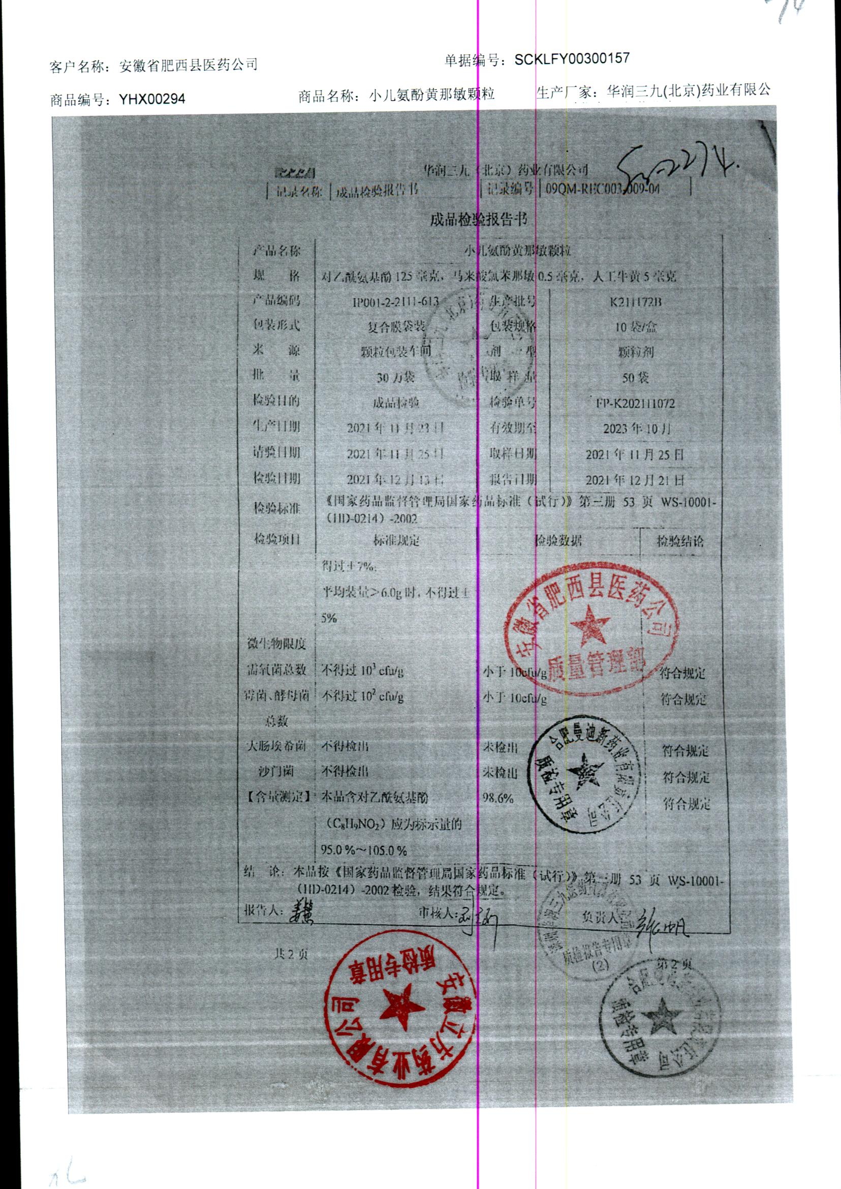 小儿氨酚黄那敏颗粒 | 10袋 | K210306B(1/2) | 查看详情 |