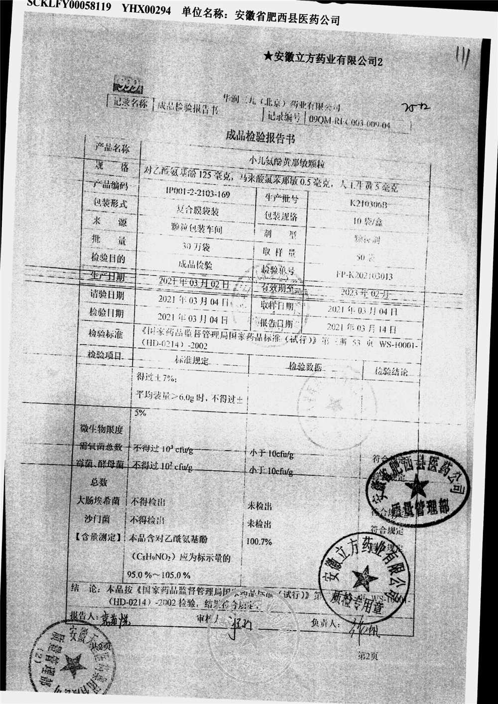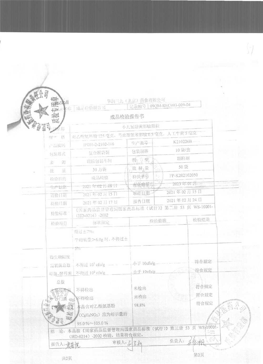 小儿氨酚黄那敏颗粒 | 10袋 | K210306B(2/2) | 查看详情 |