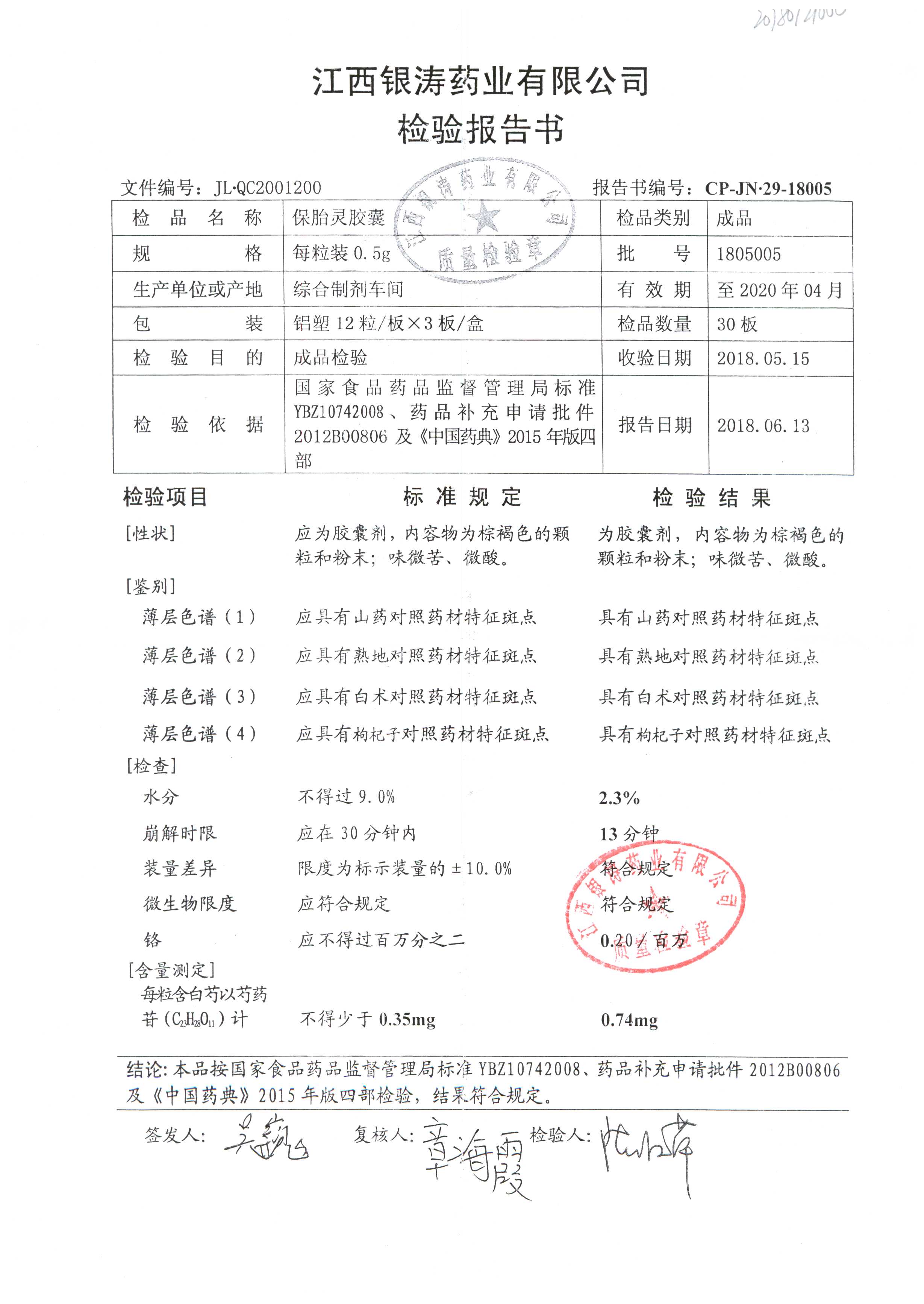 药检报告