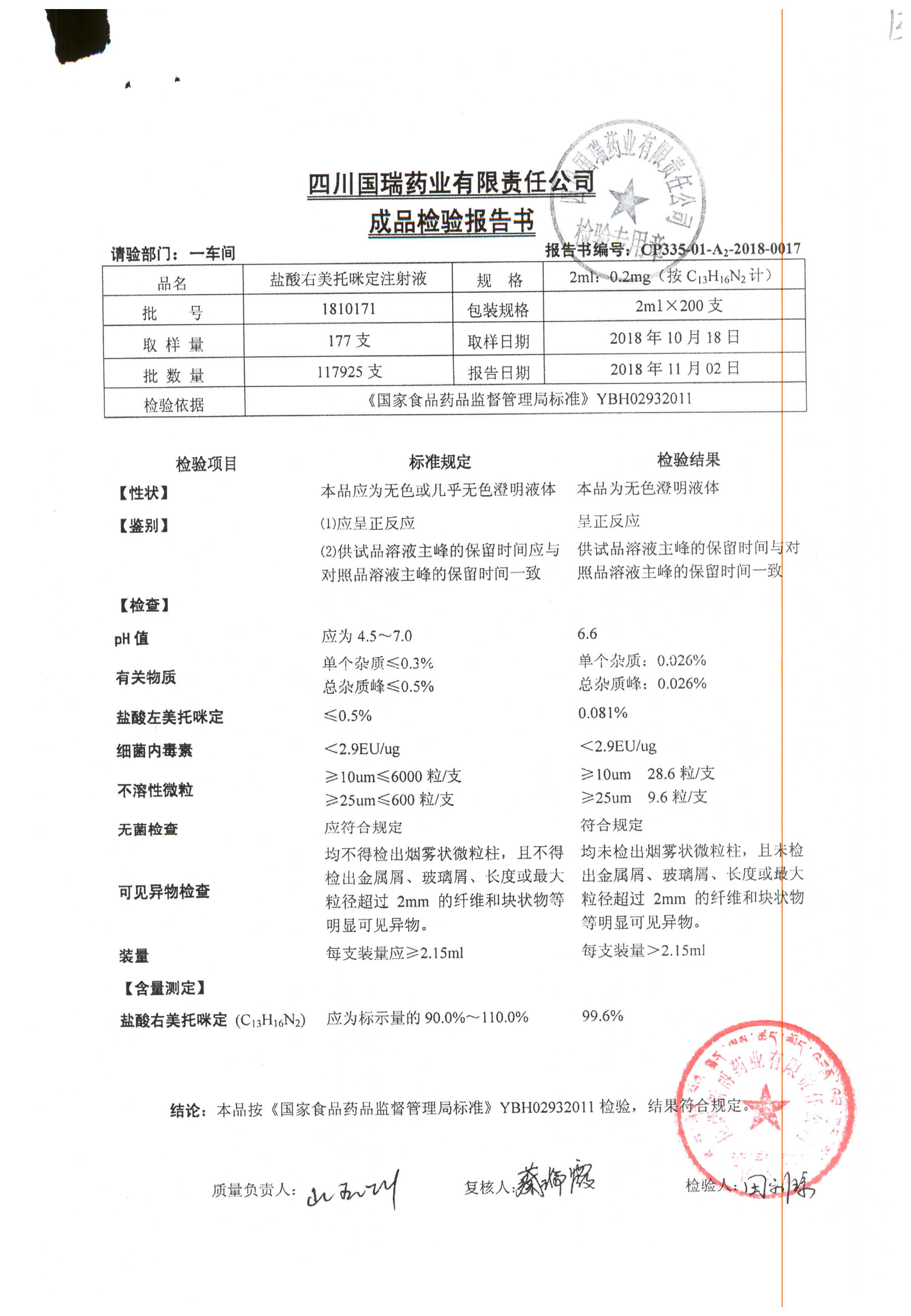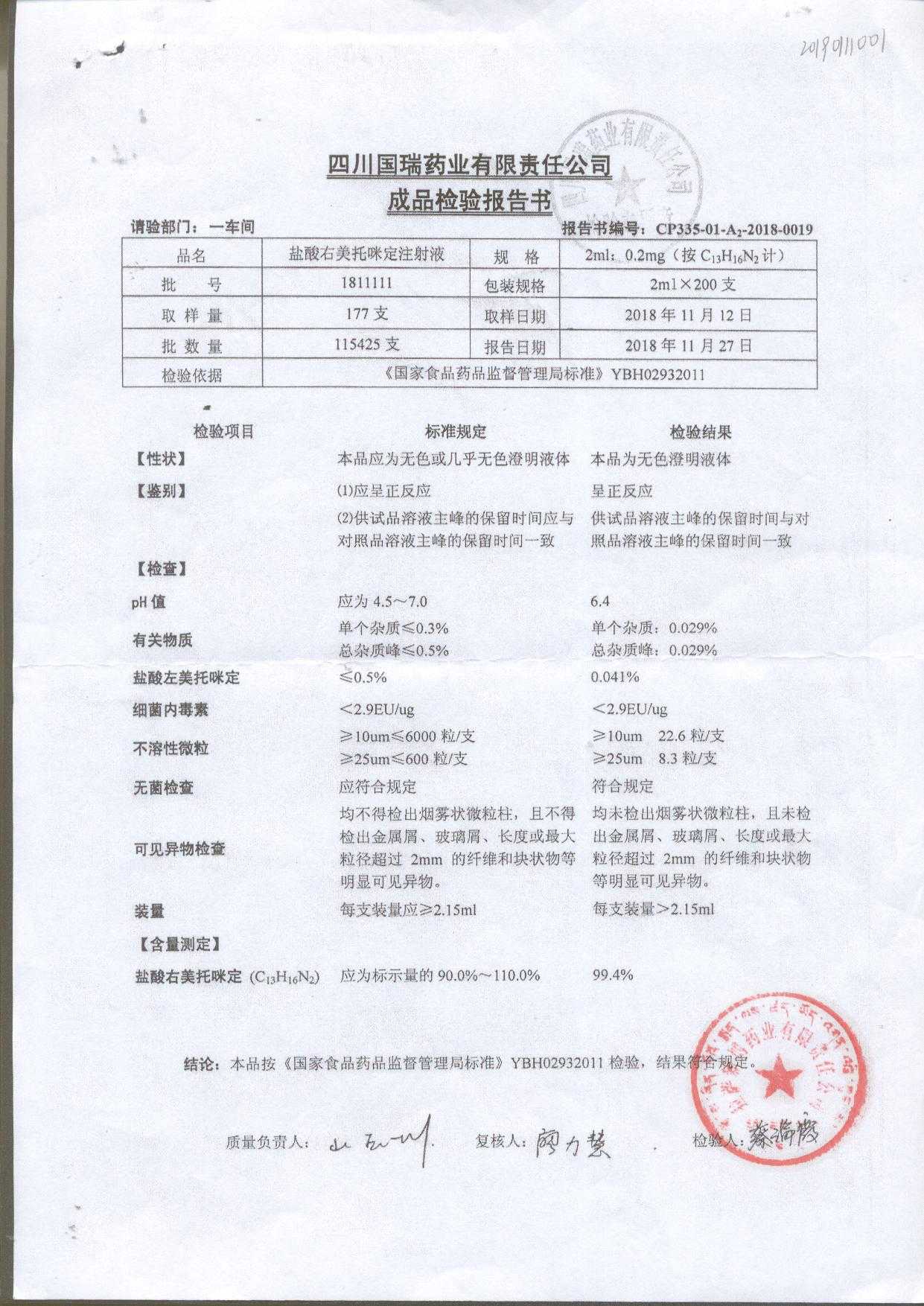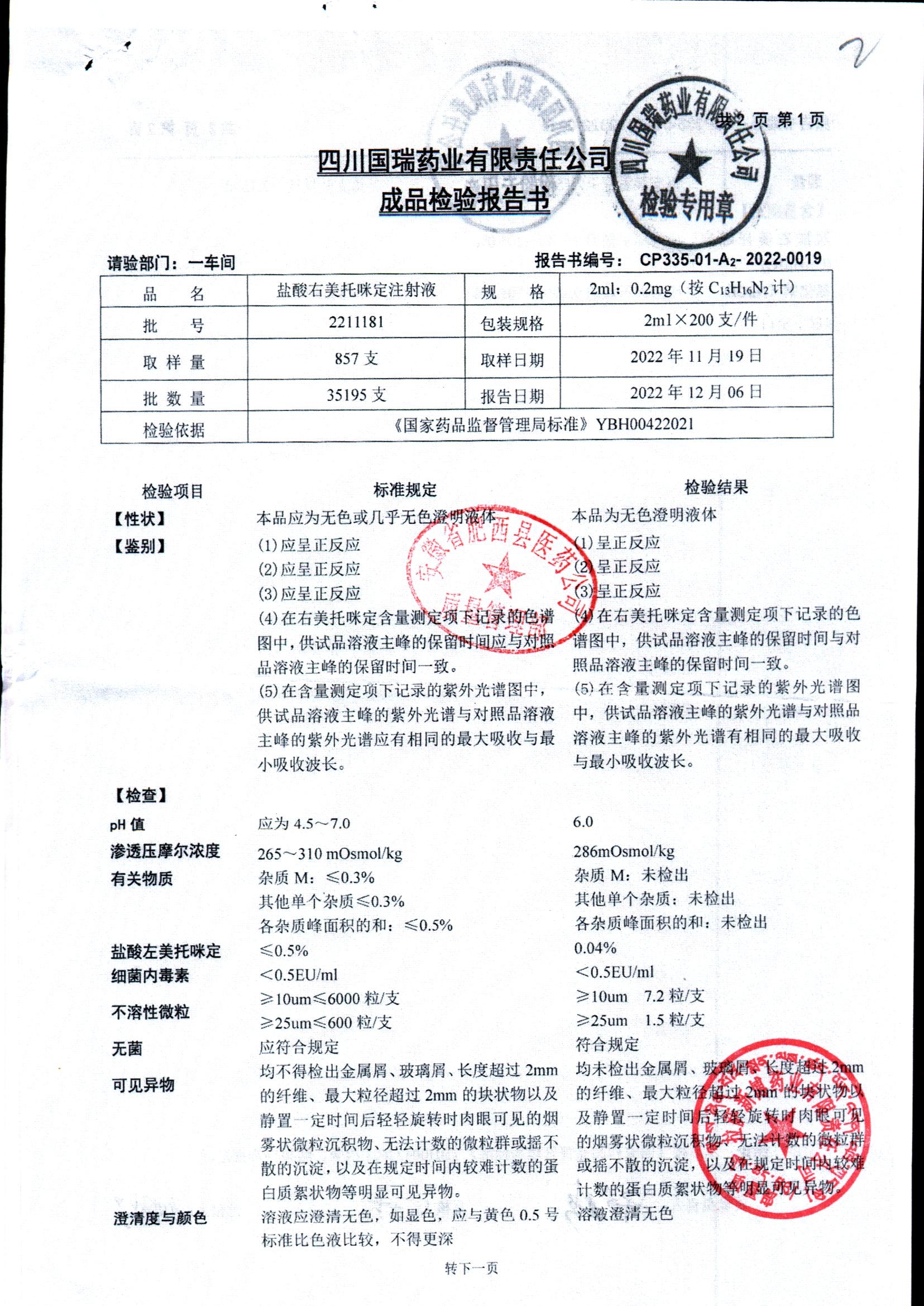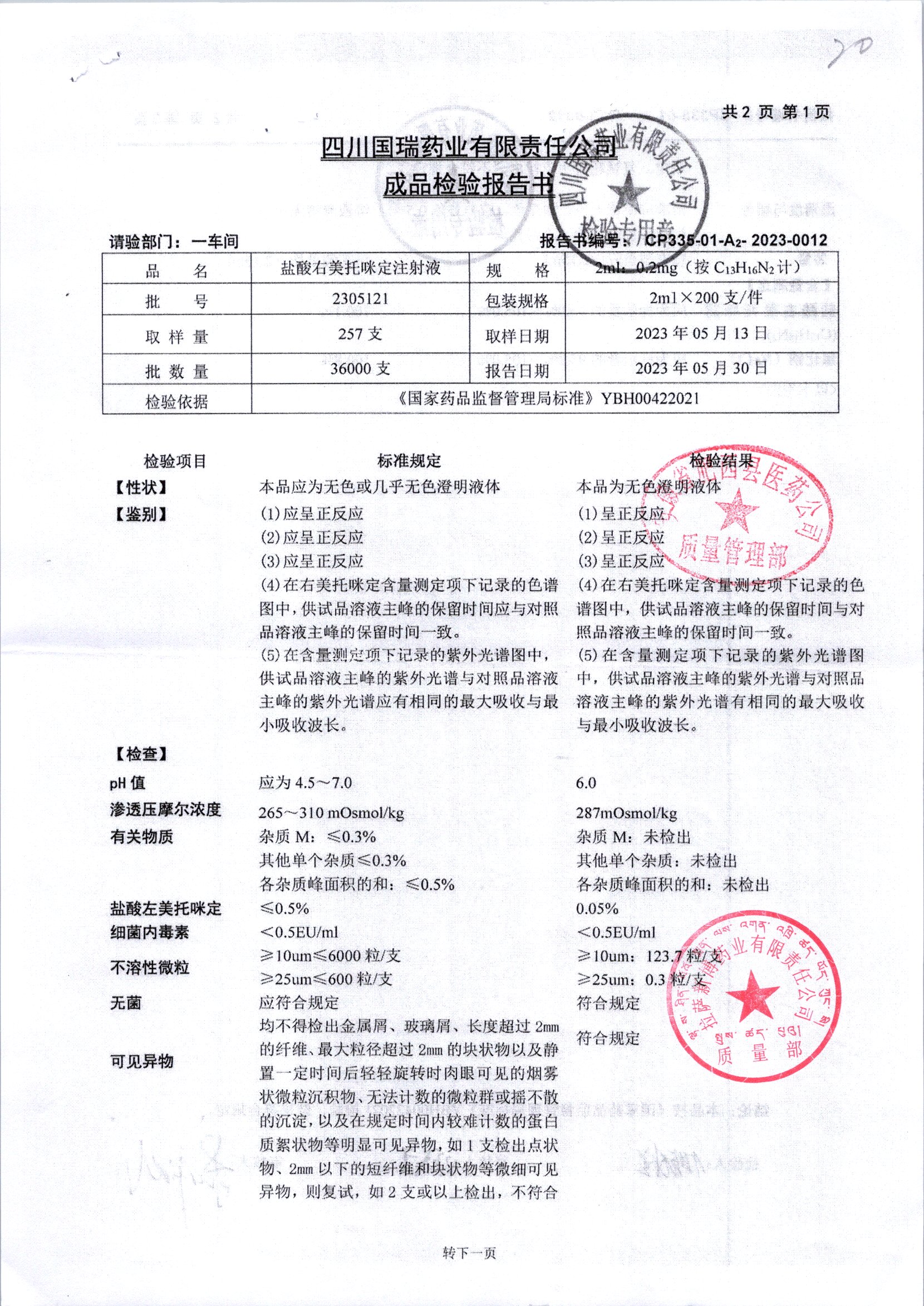盐酸右美托咪定注射液 | 2ml:0.2mg | 1908011 | 查看详情 |