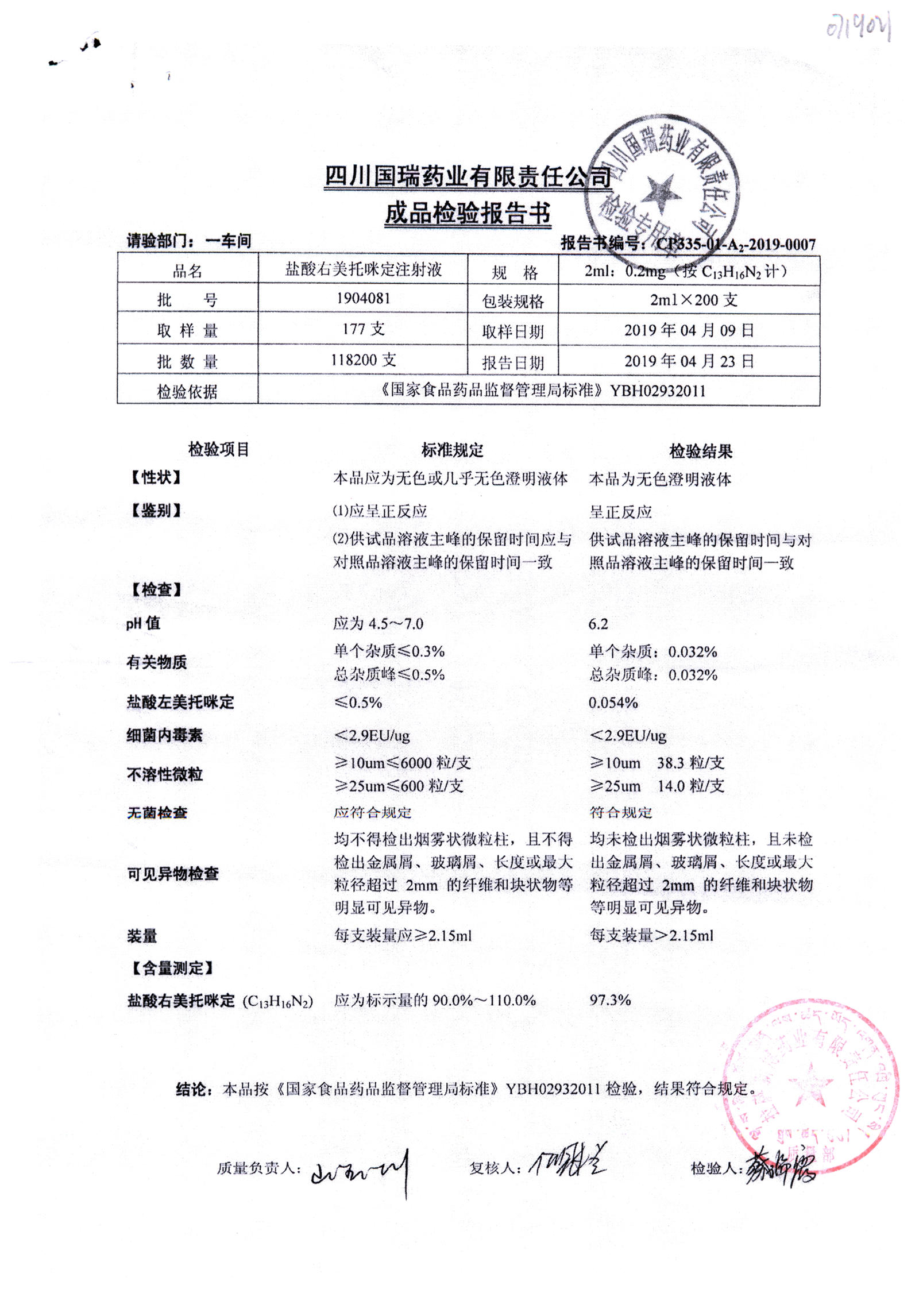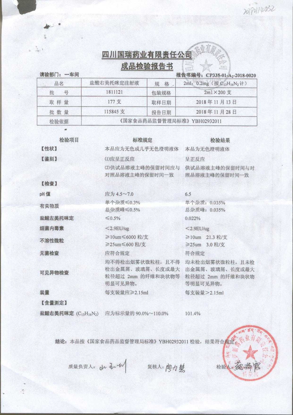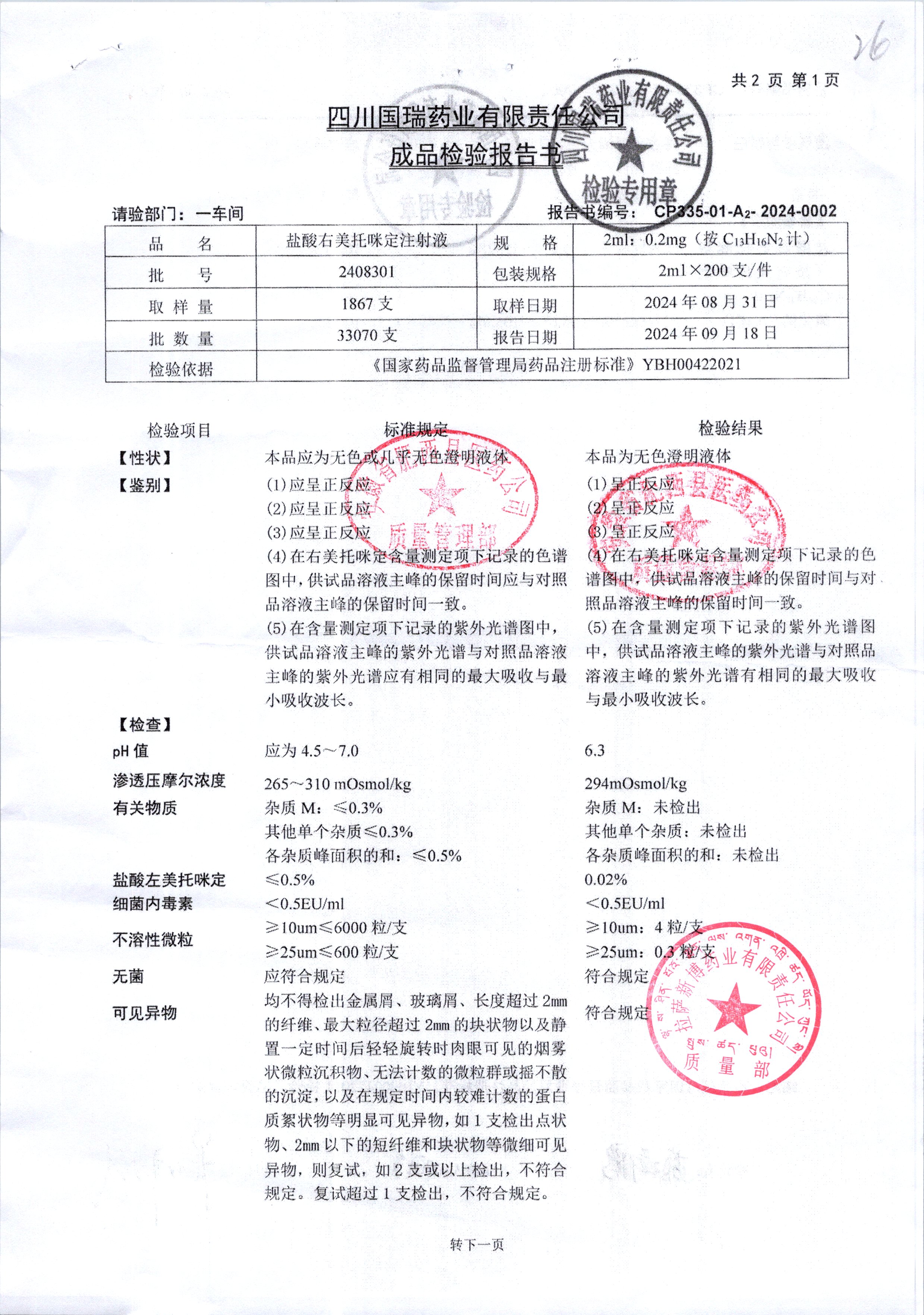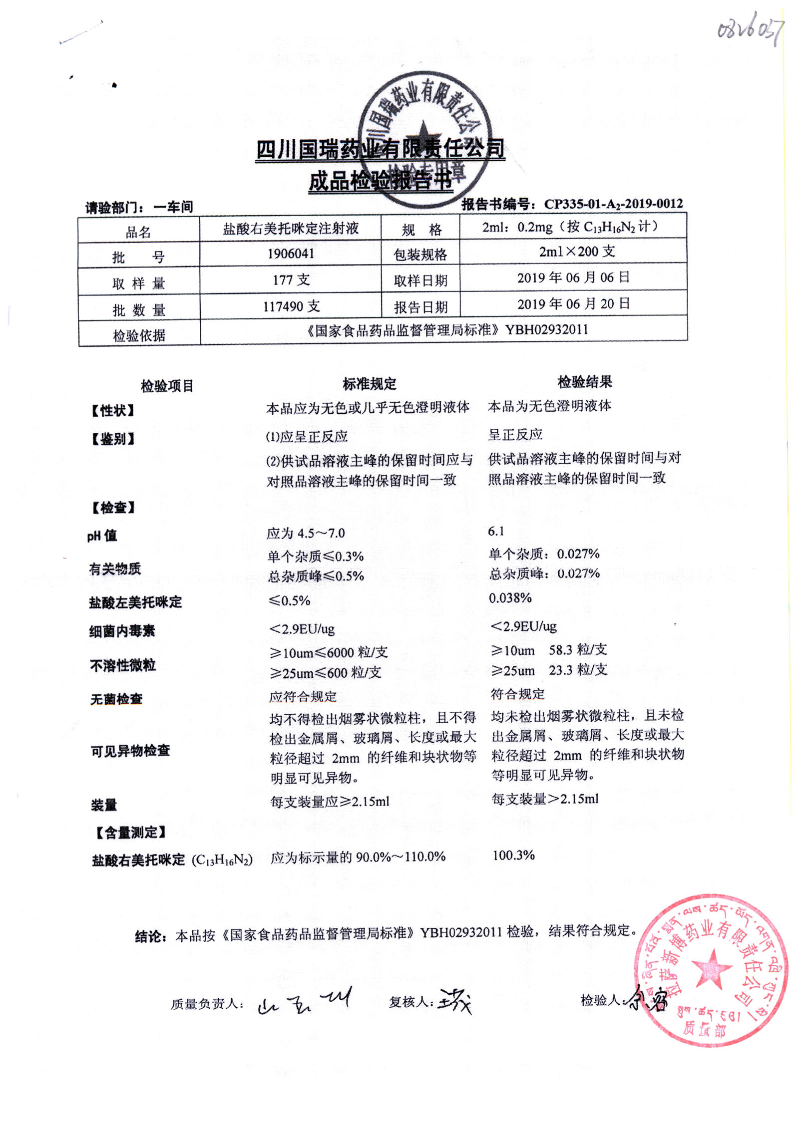 盐酸右美托咪定注射液 | 2ml:0.2mg | 1908011 | 查看详情 |