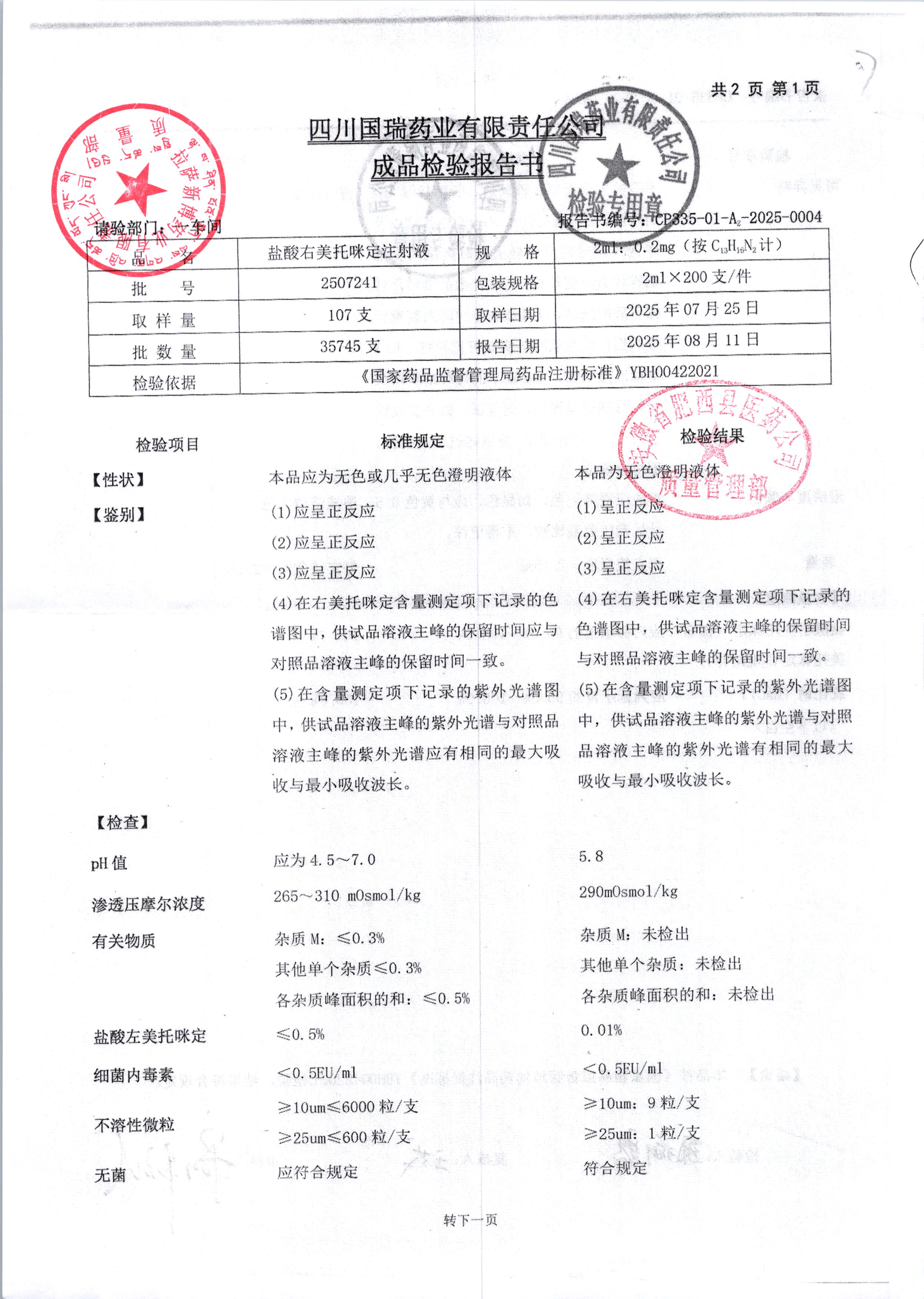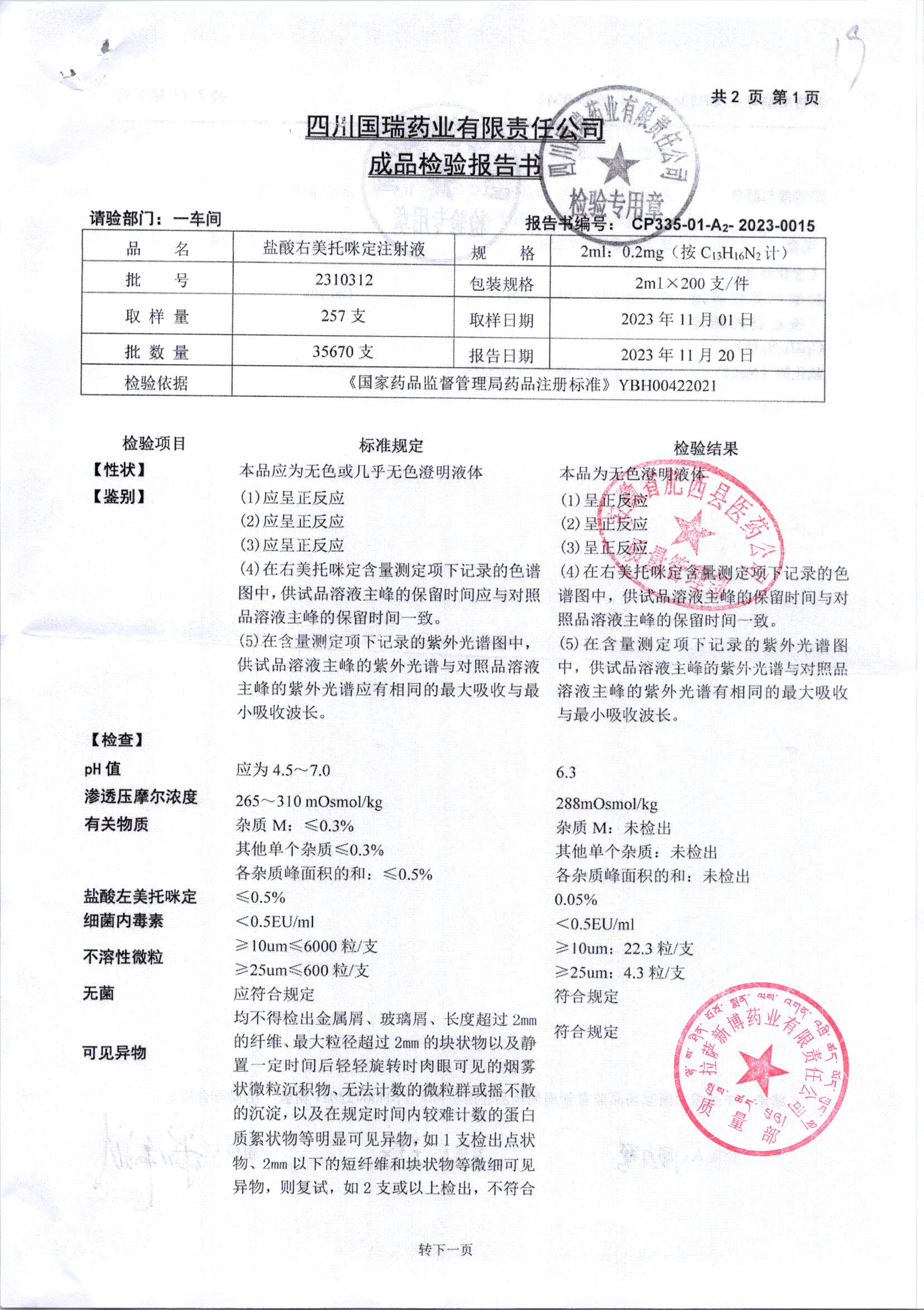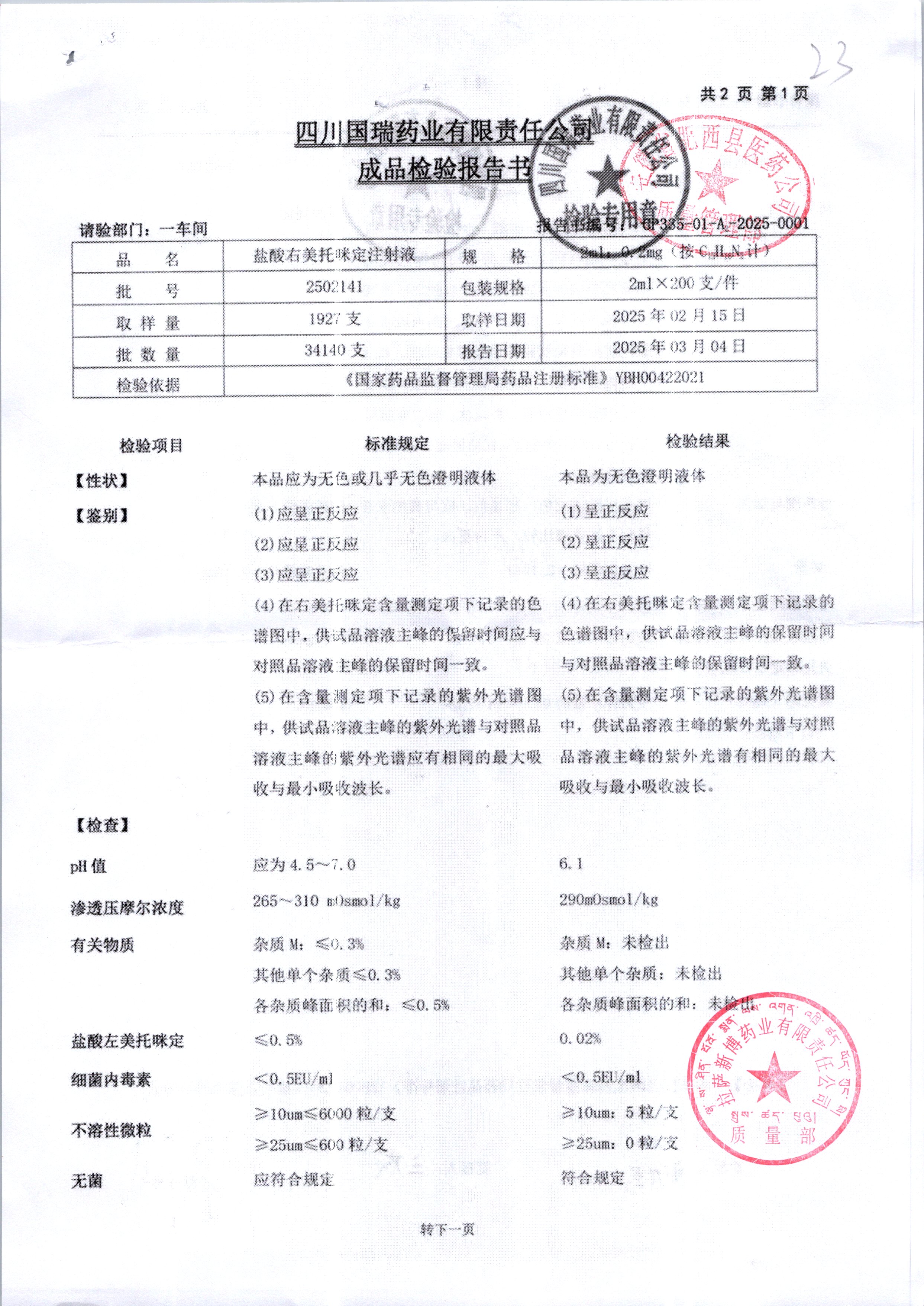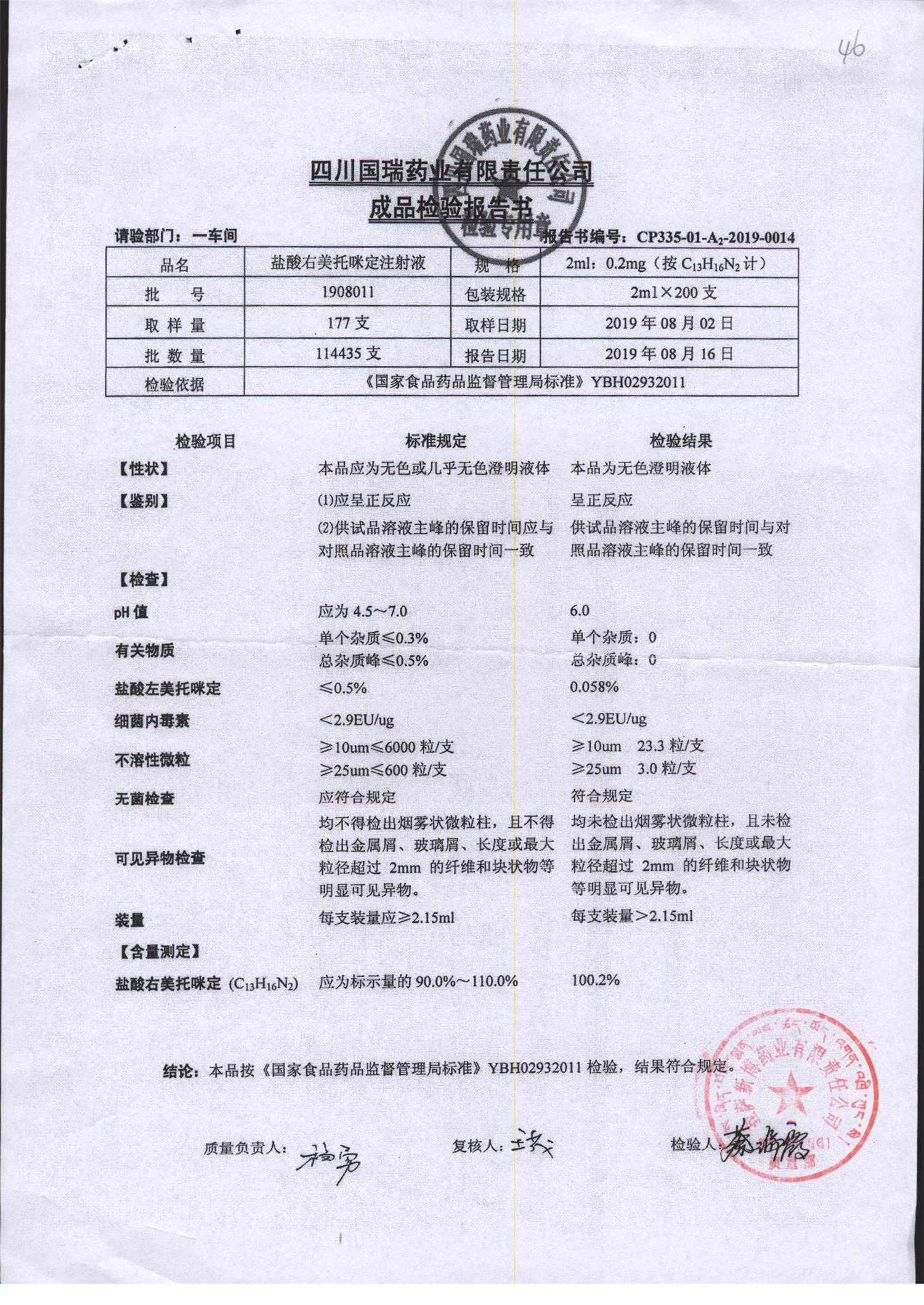 盐酸右美托咪定注射液 | 2ml:0.2mg | 1908011 | 查看详情 |
