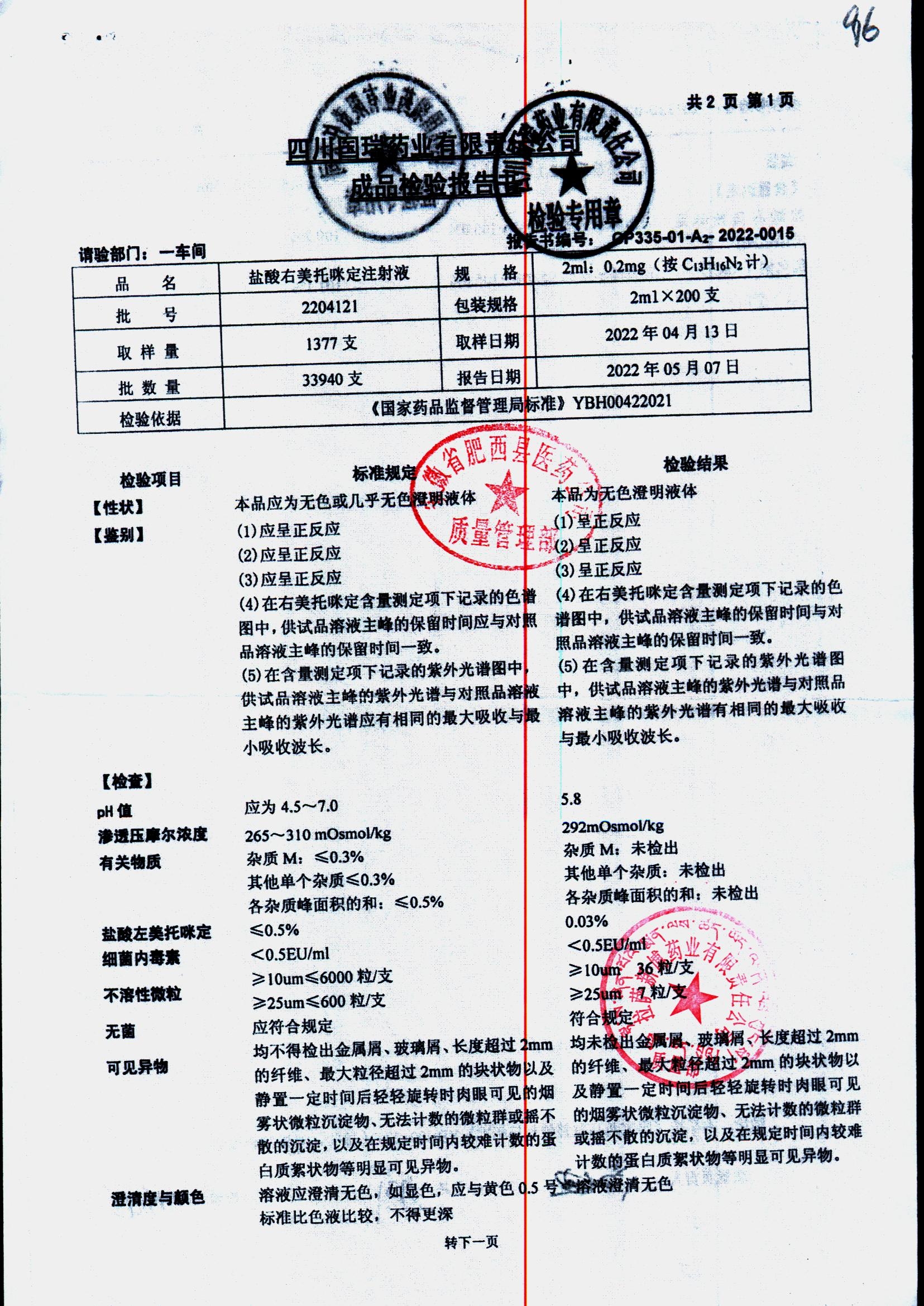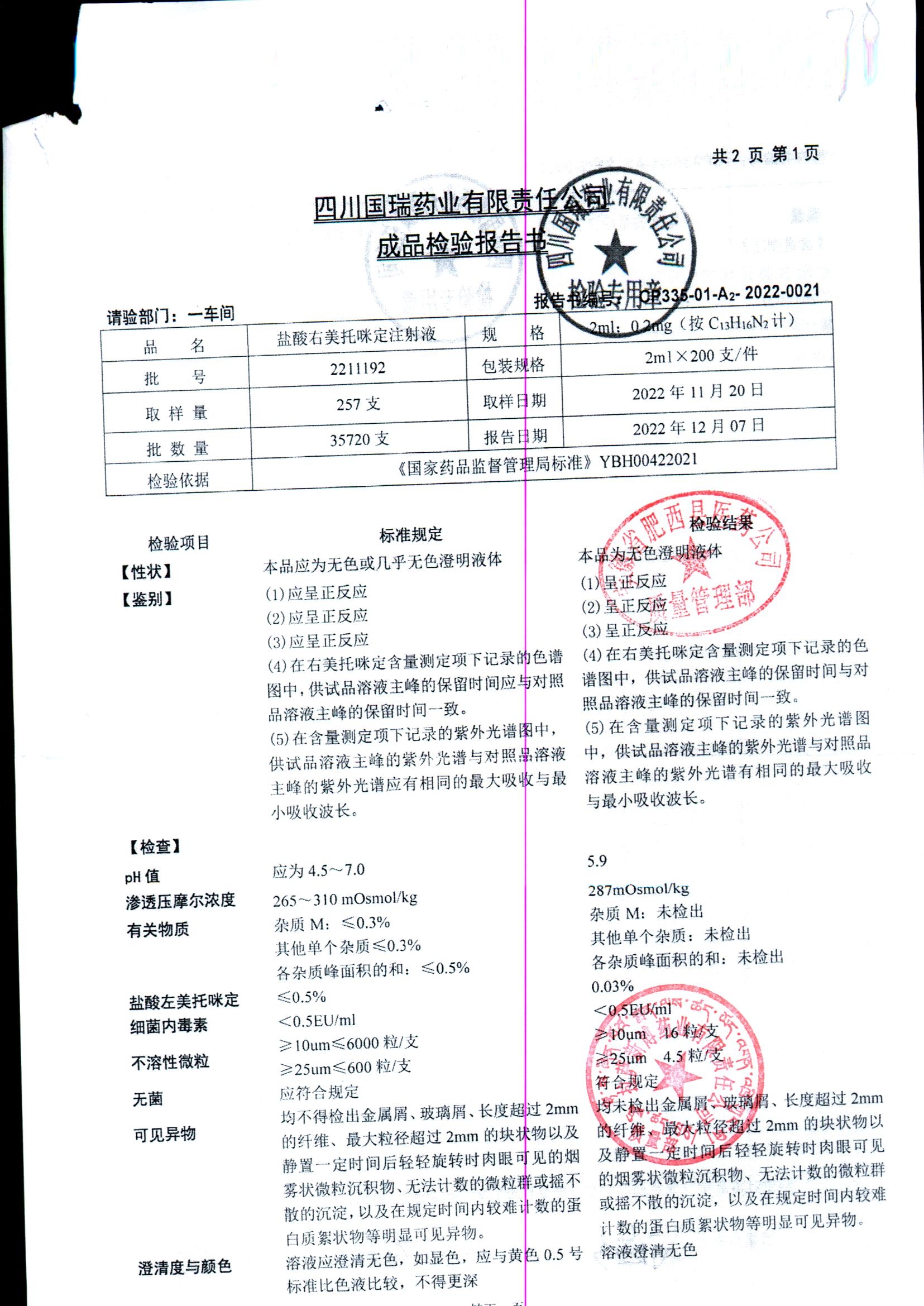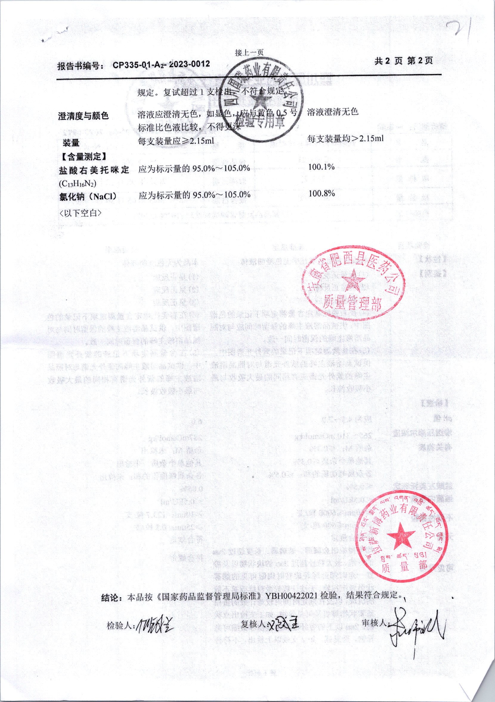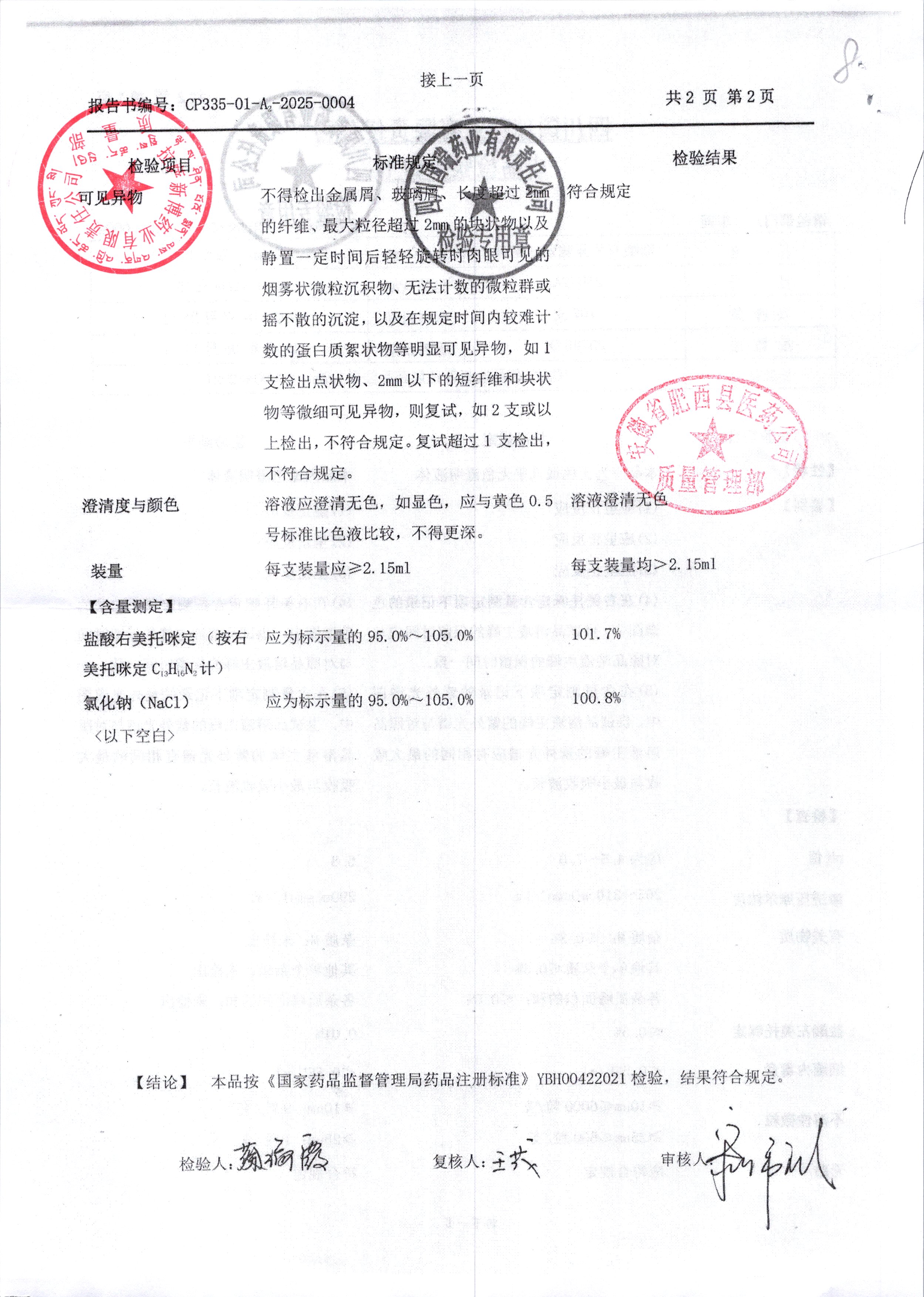 盐酸右美托咪定注射液 | 2ml:0.2mg | 1908011 | 查看详情 |
