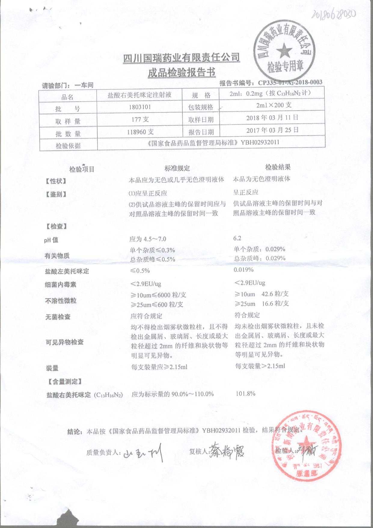 盐酸右美托咪定注射液 | 2ml:0.2mg | 1803101 | 查看详情 |