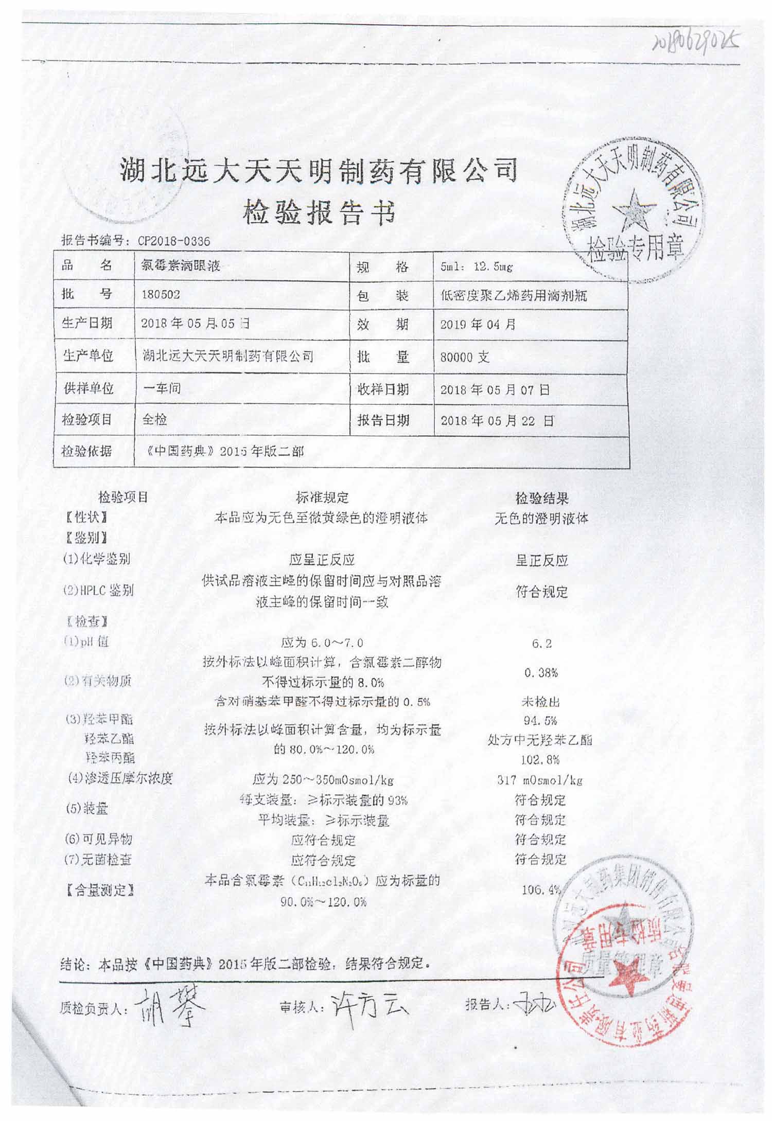 药检报告