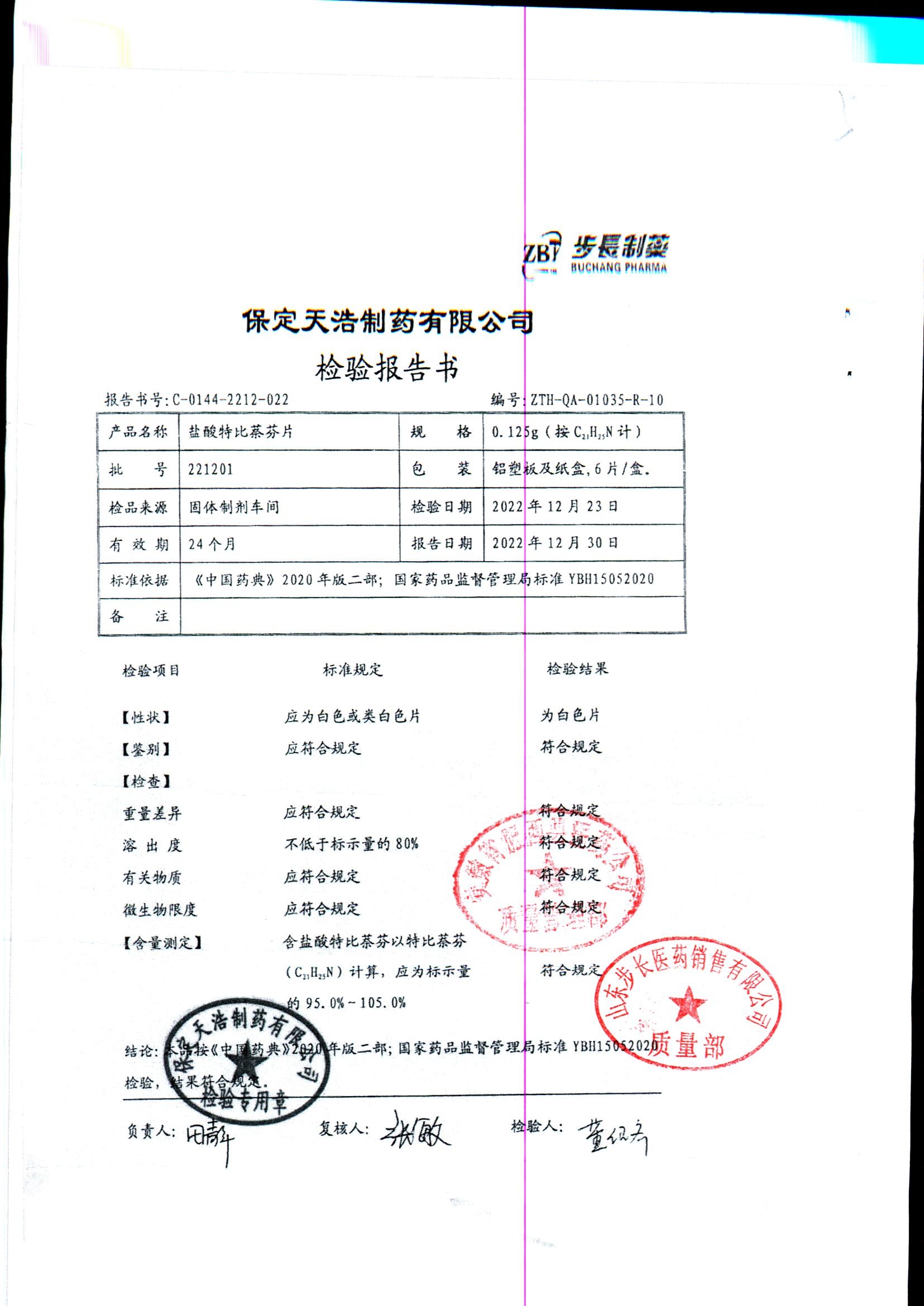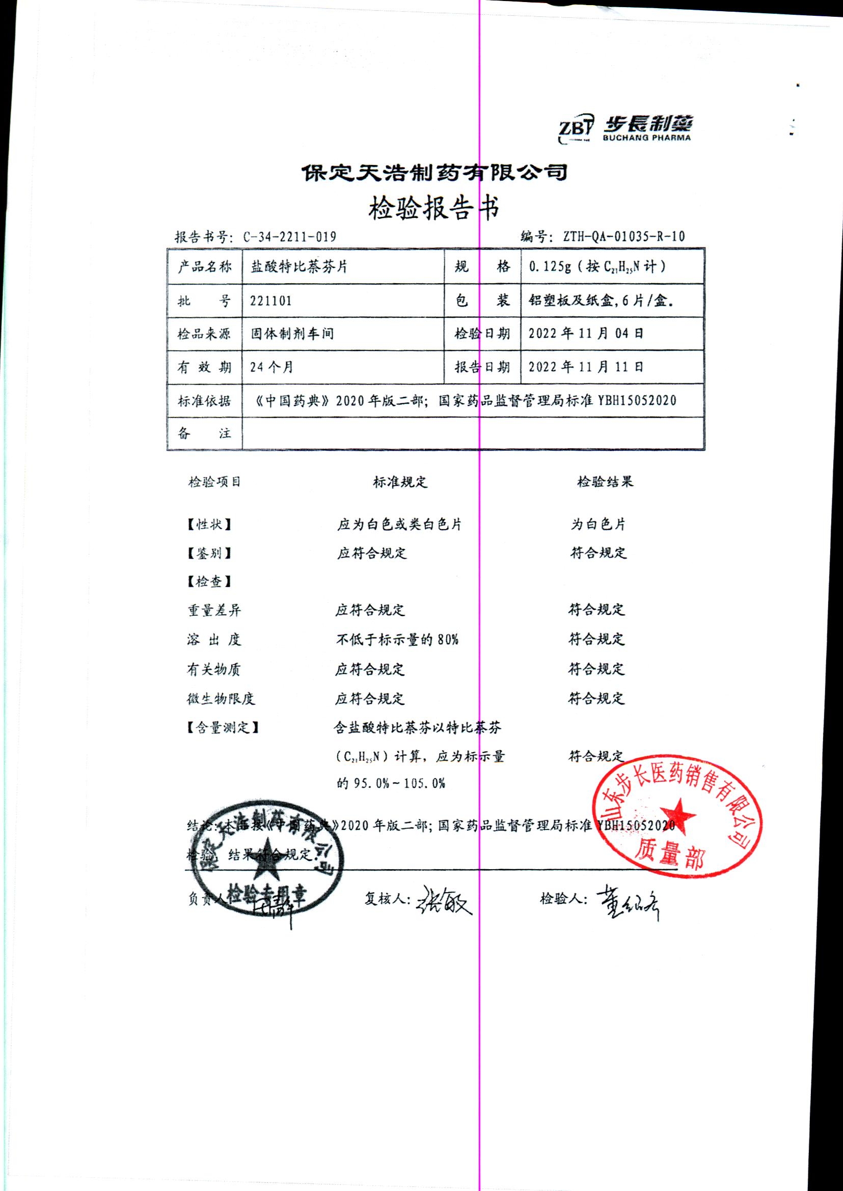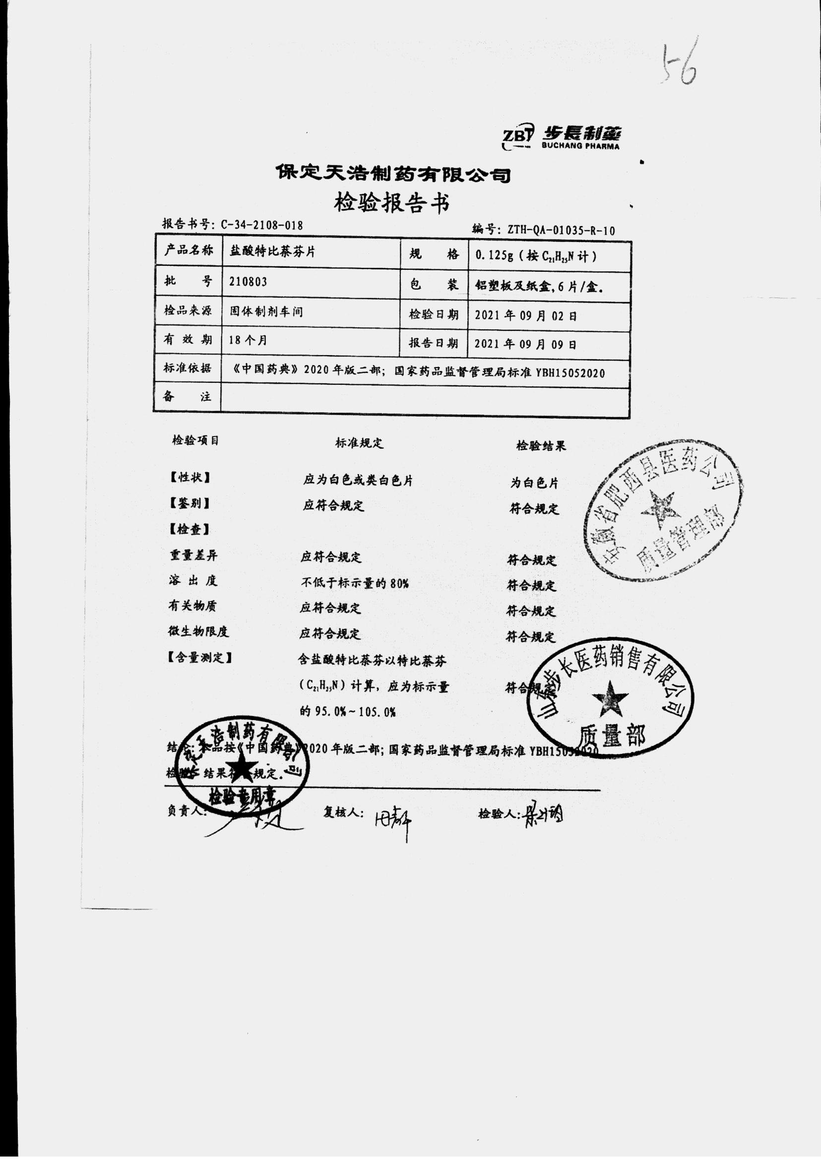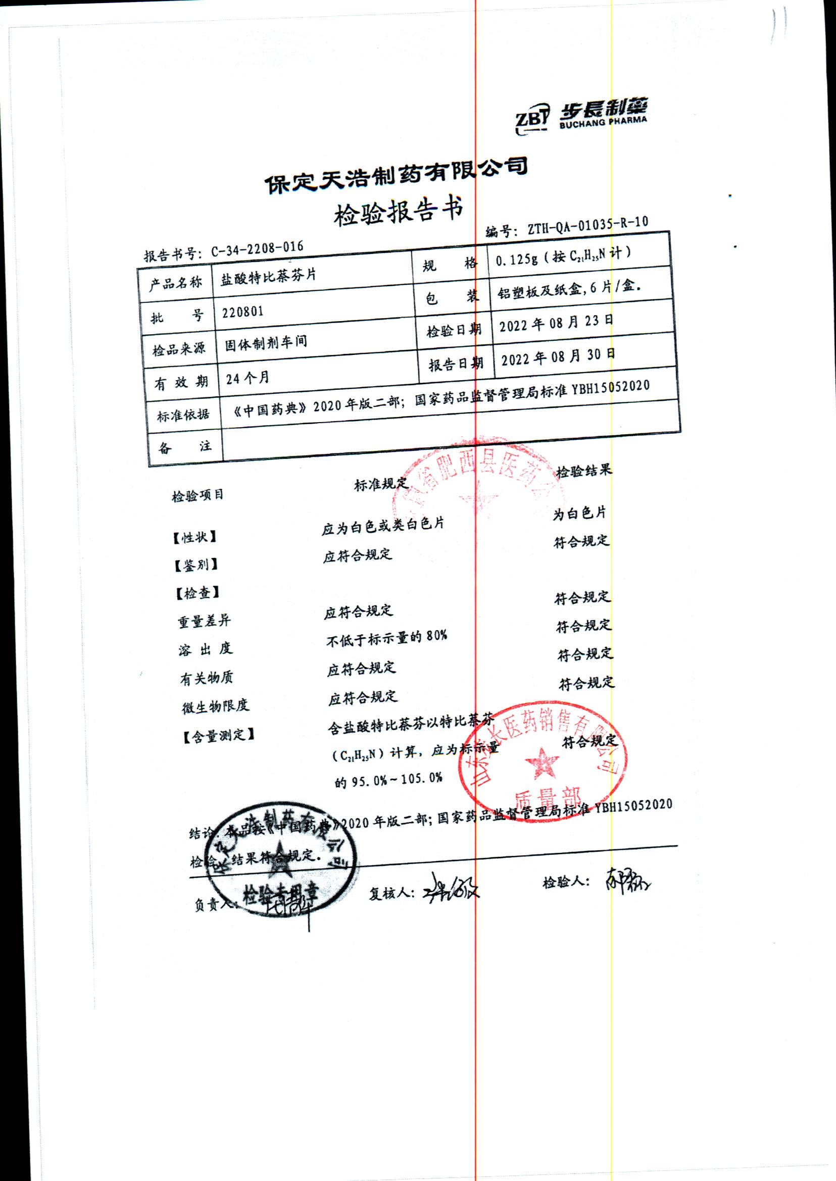 盐酸特比萘芬片 | 0.125g*6片 | 210801 | 查看详情 |