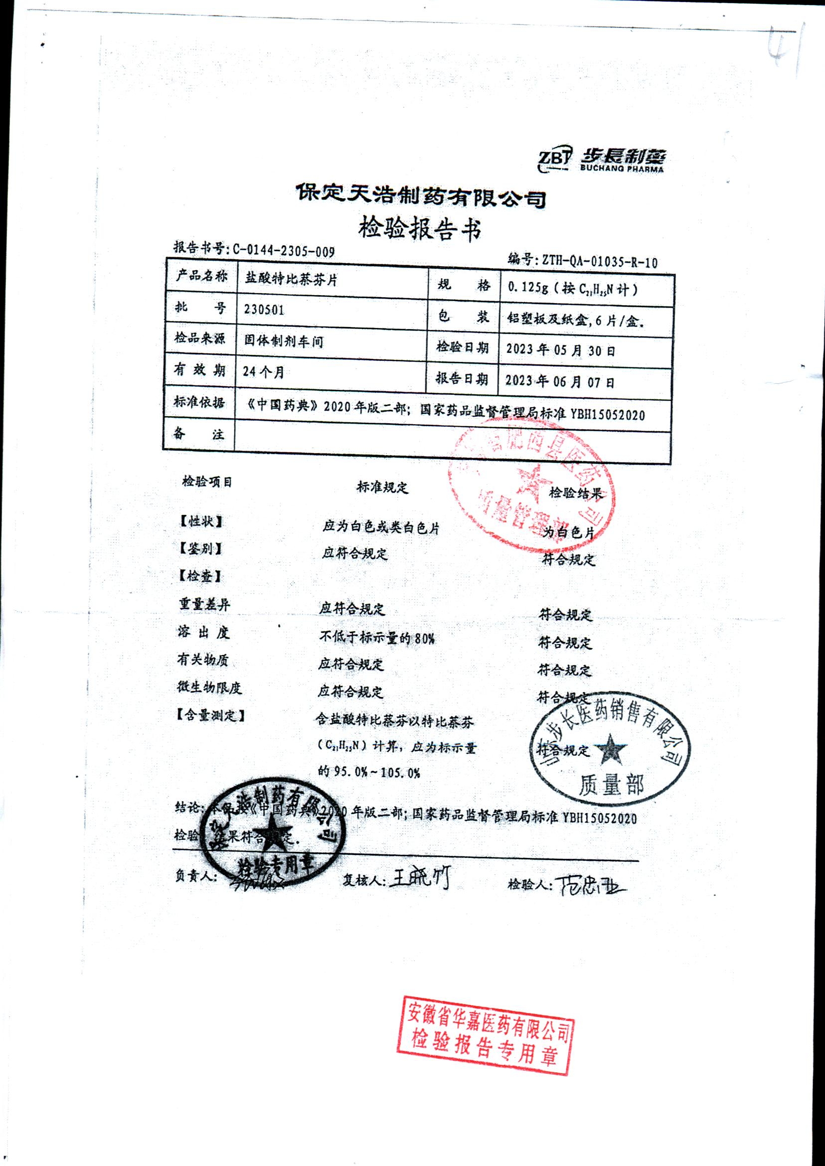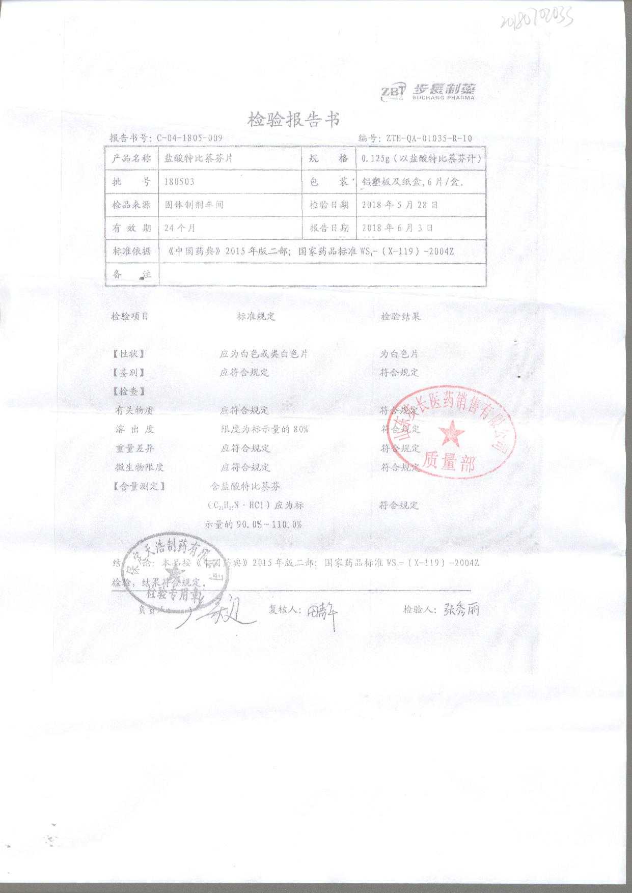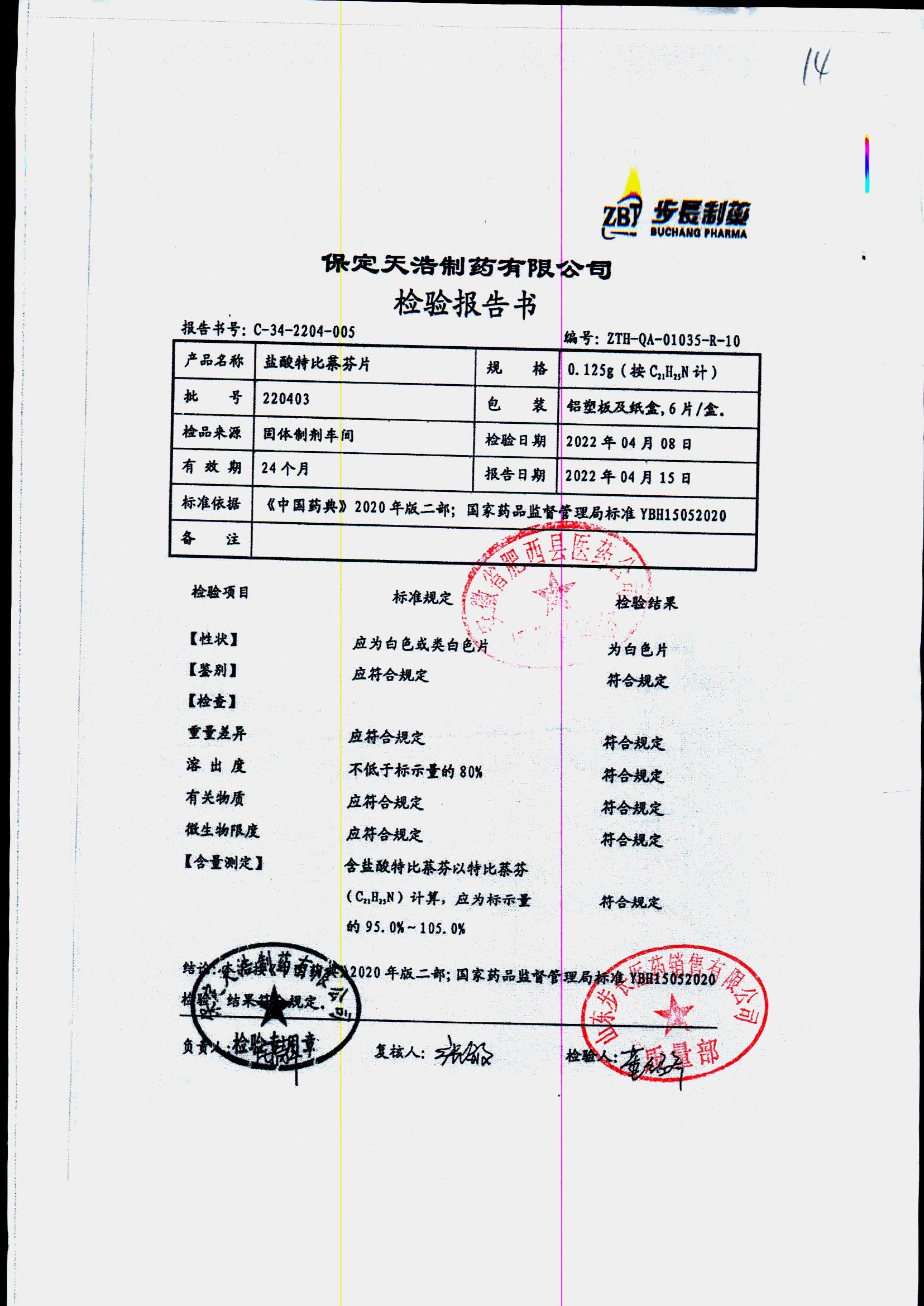 盐酸特比萘芬片 | 0.125g*6片 | 210801 | 查看详情 |