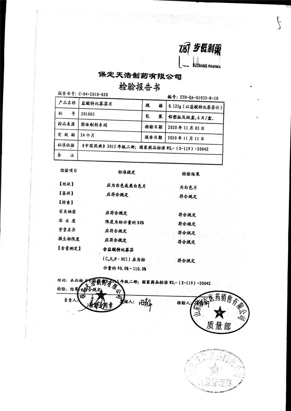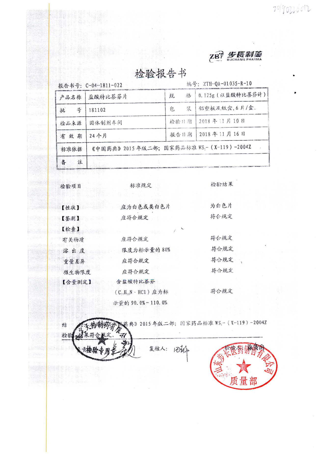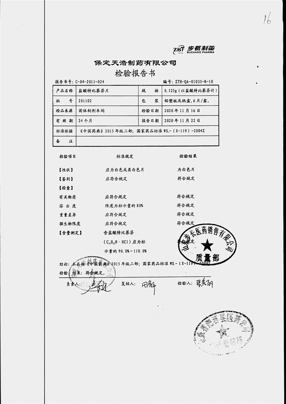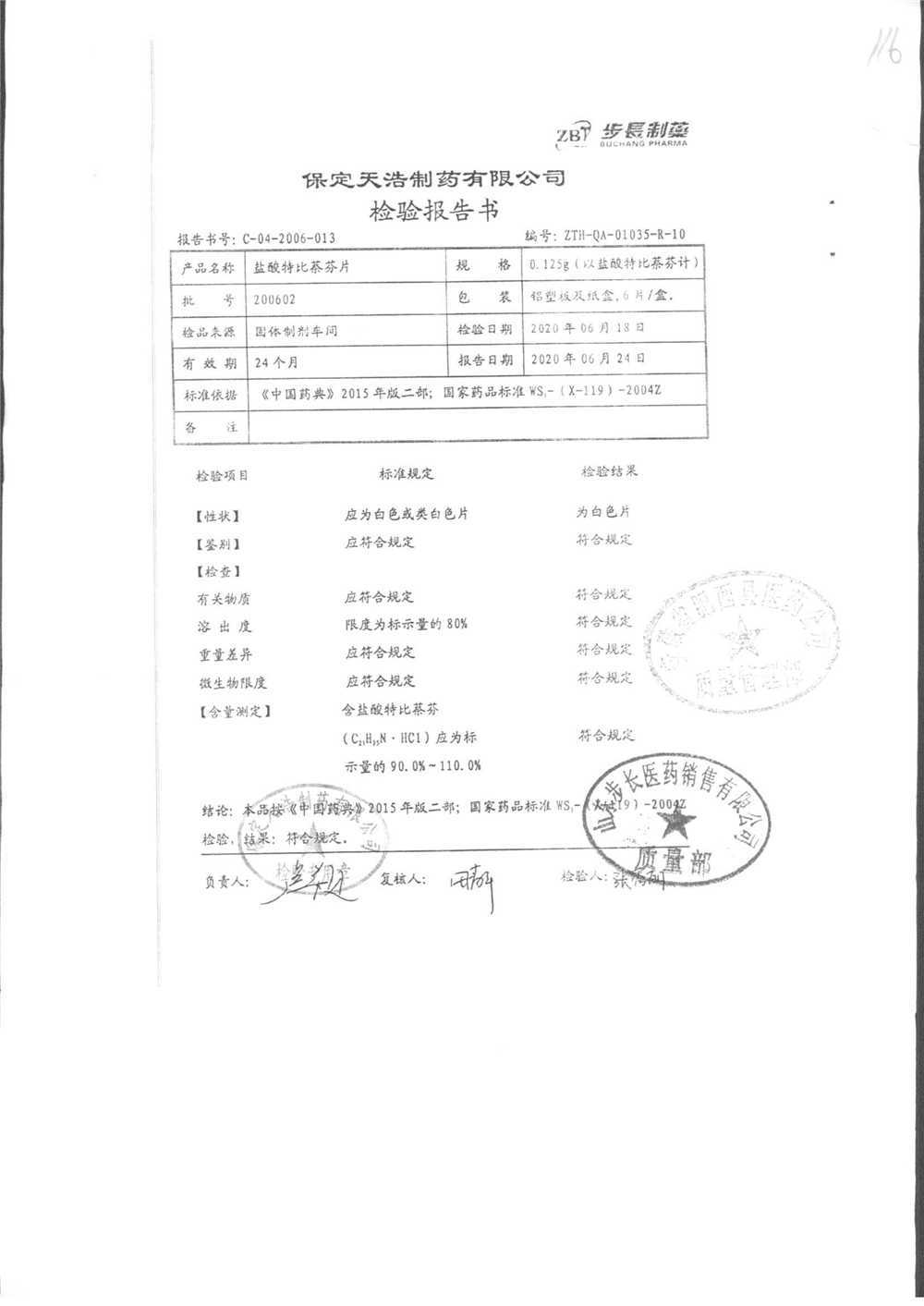 盐酸特比萘芬片 | 0.125g*6片 | 210801 | 查看详情 |