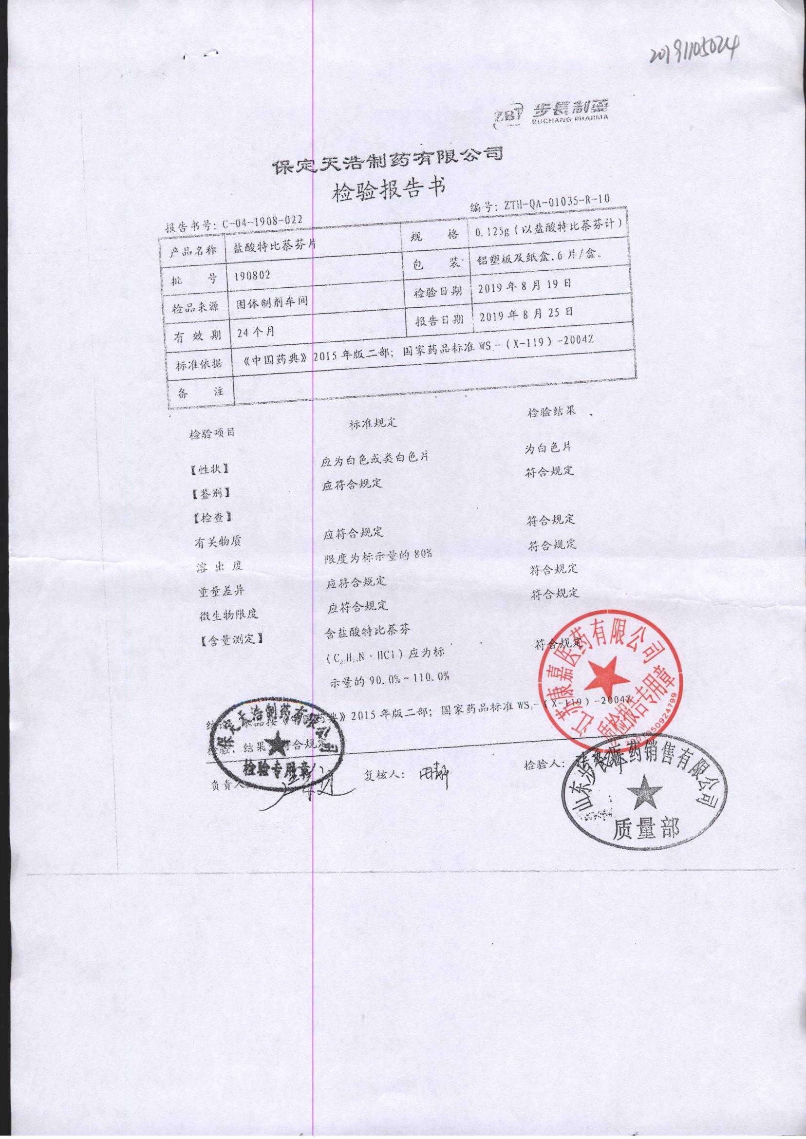 盐酸特比萘芬片 | 0.125g*6片 | 190802 | 查看详情 |
