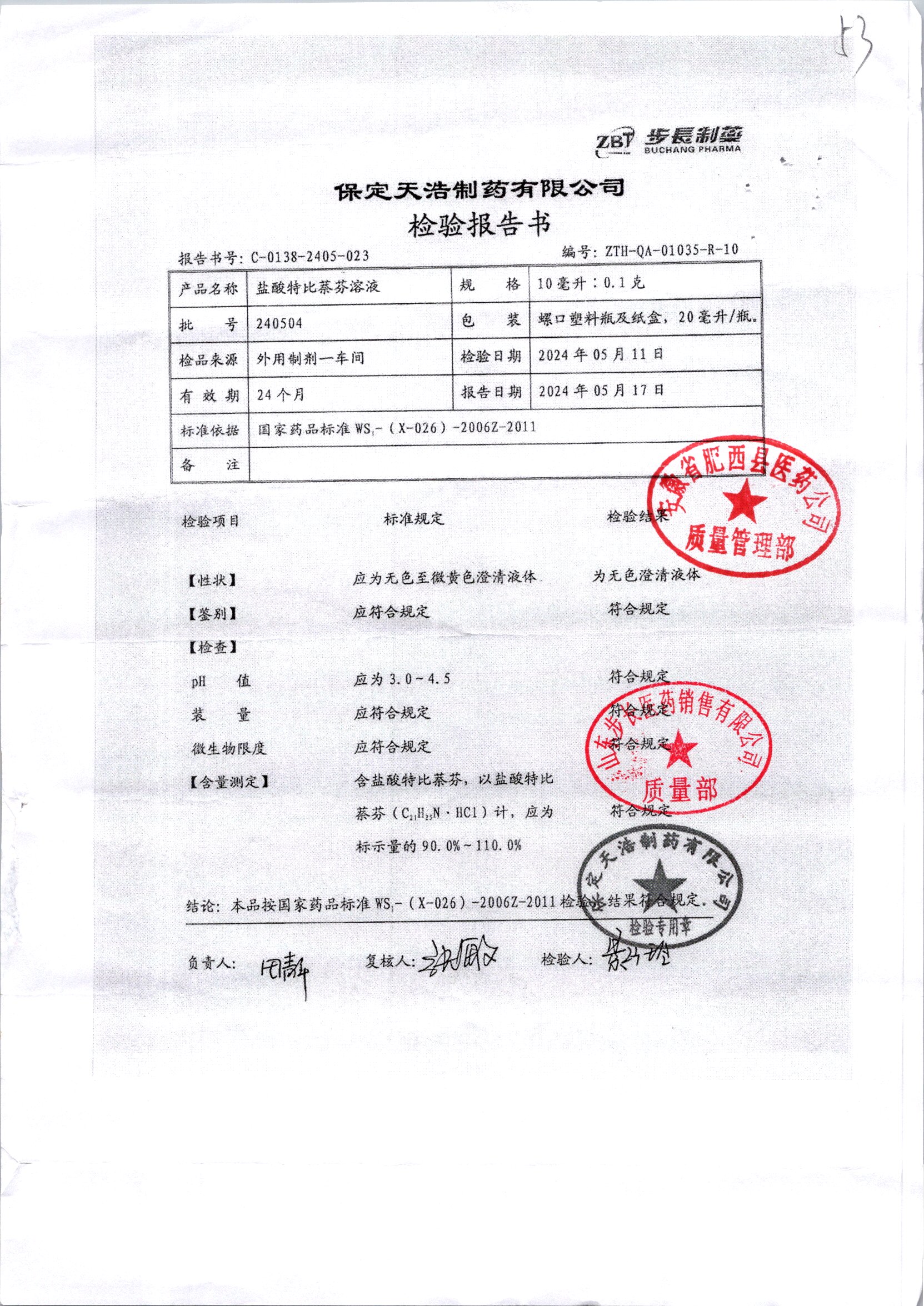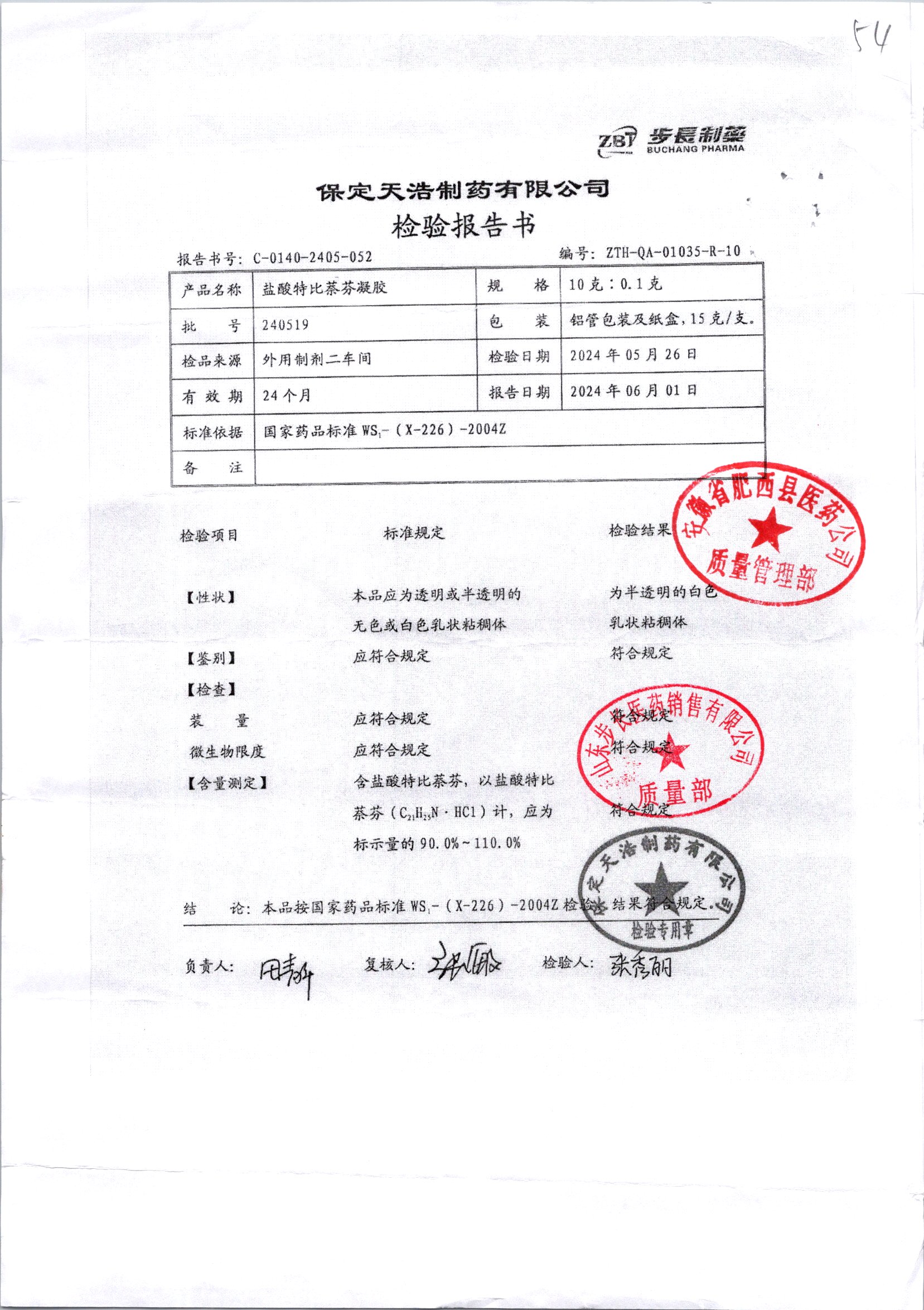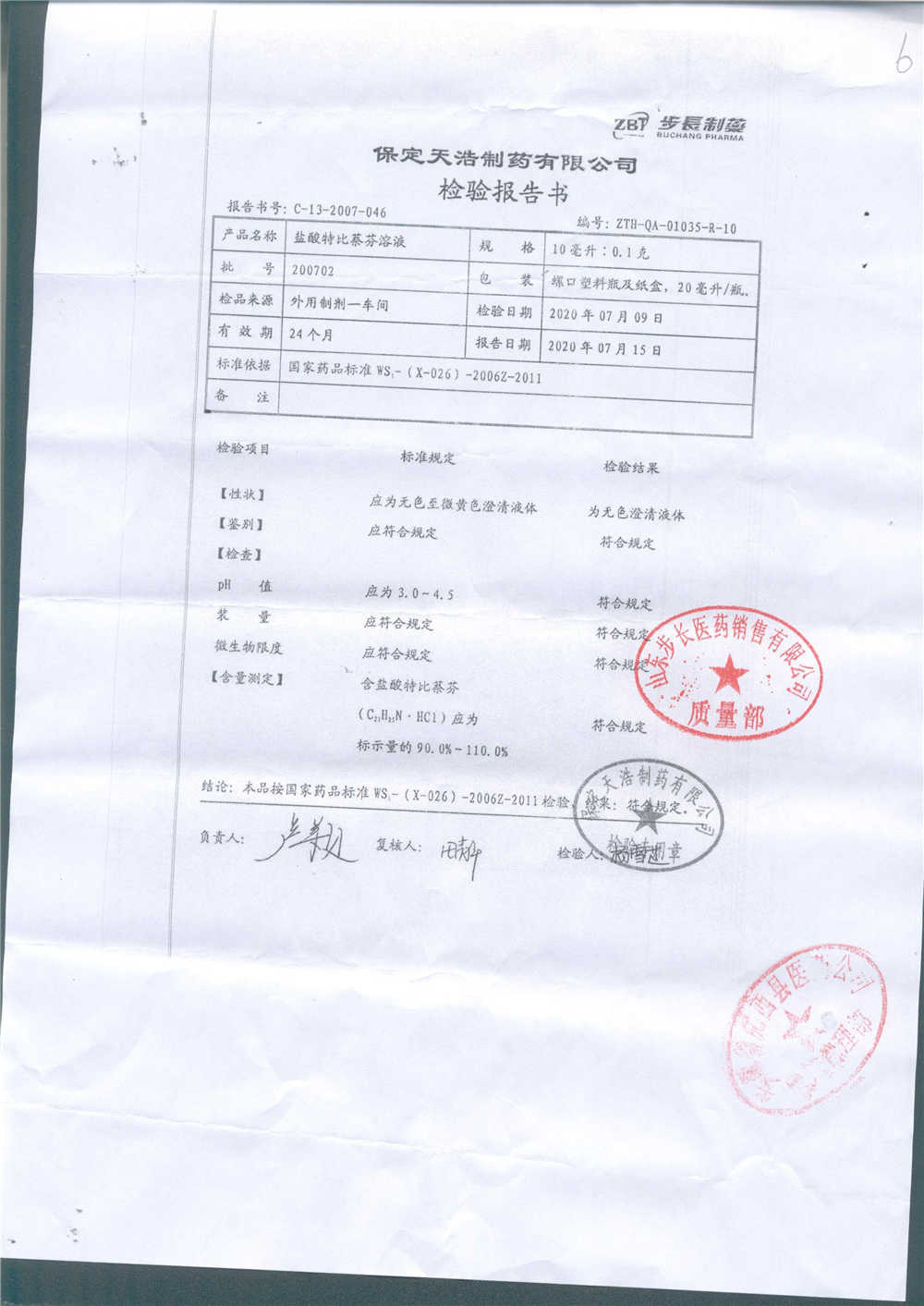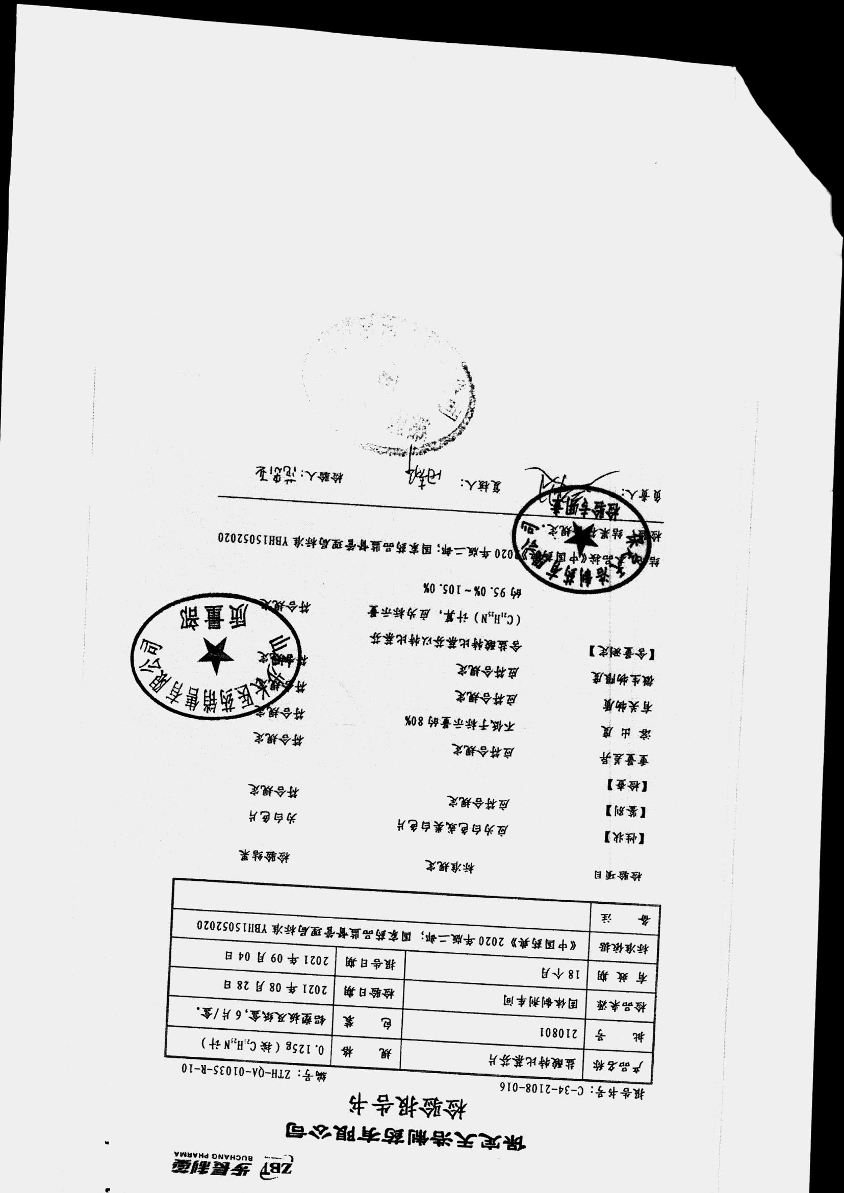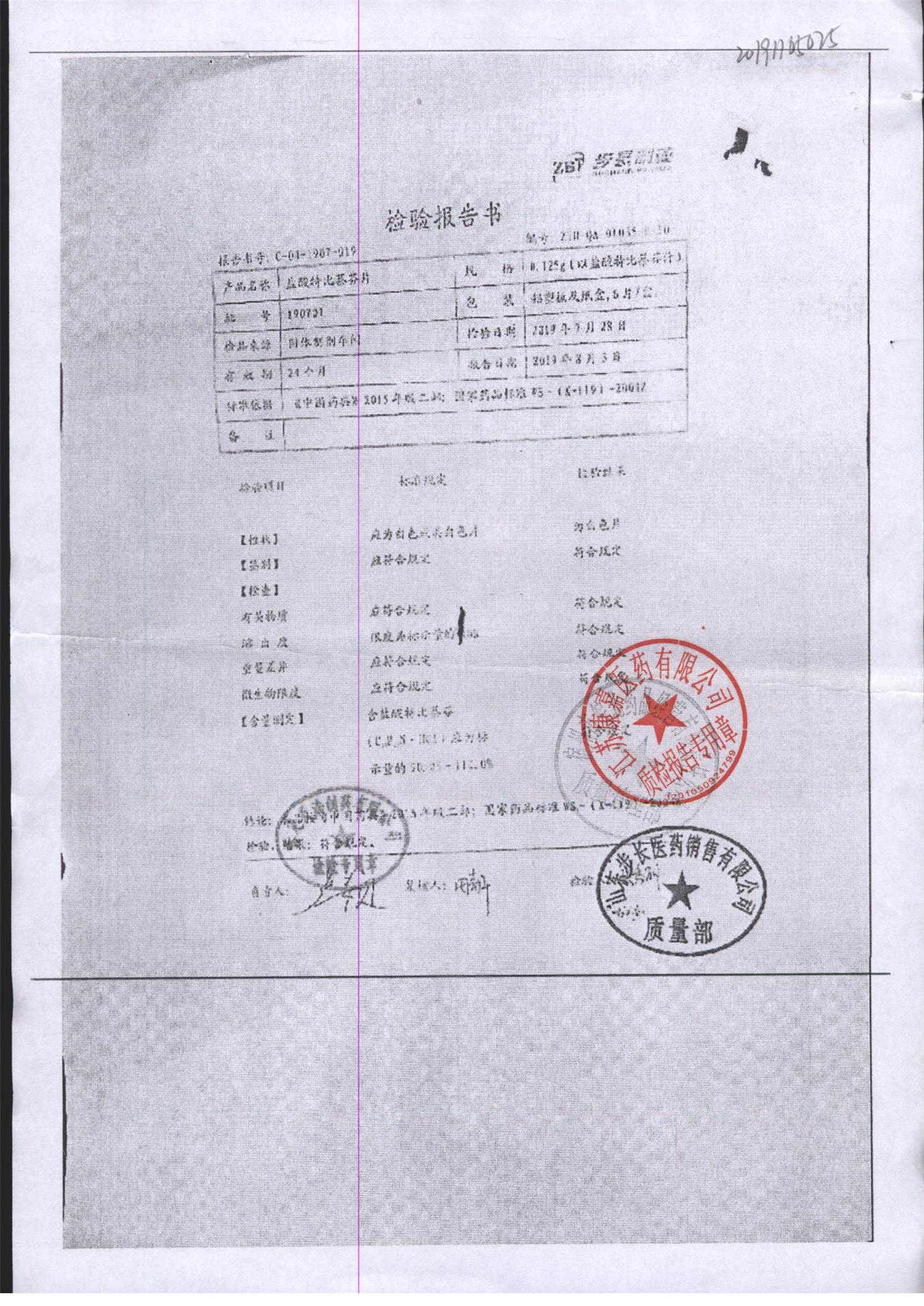 名称 | 规格 | 批号 | 药检报告 |