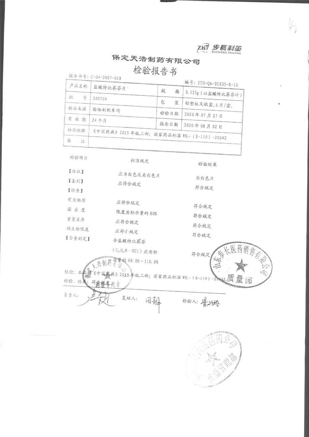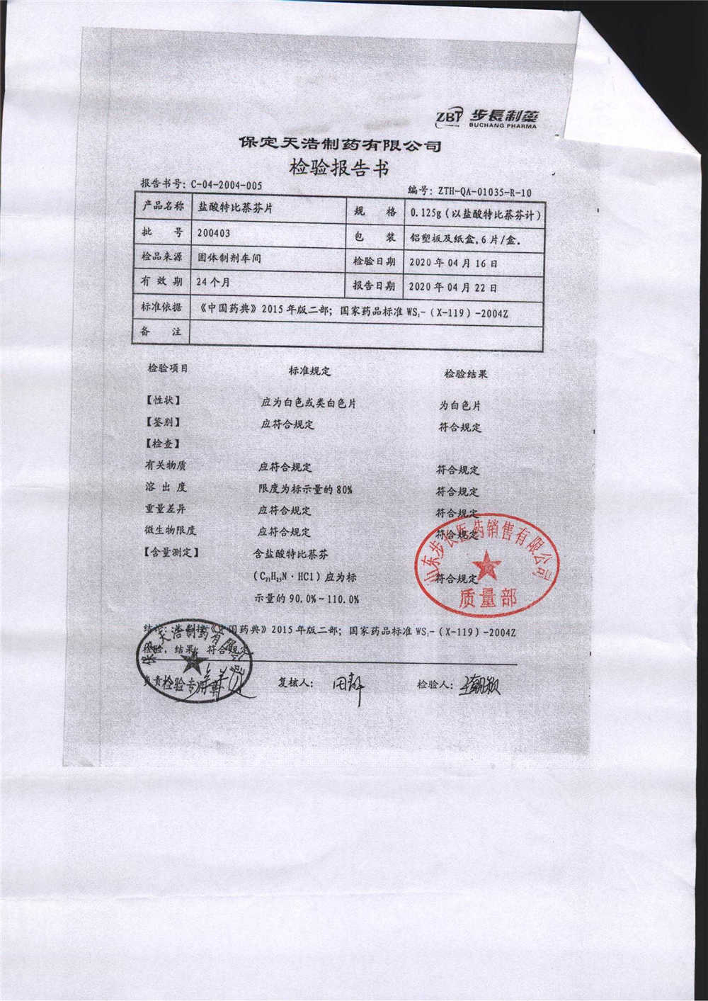 盐酸特比萘芬片 | 0.125g*6片 | 200602 | 查看详情 |