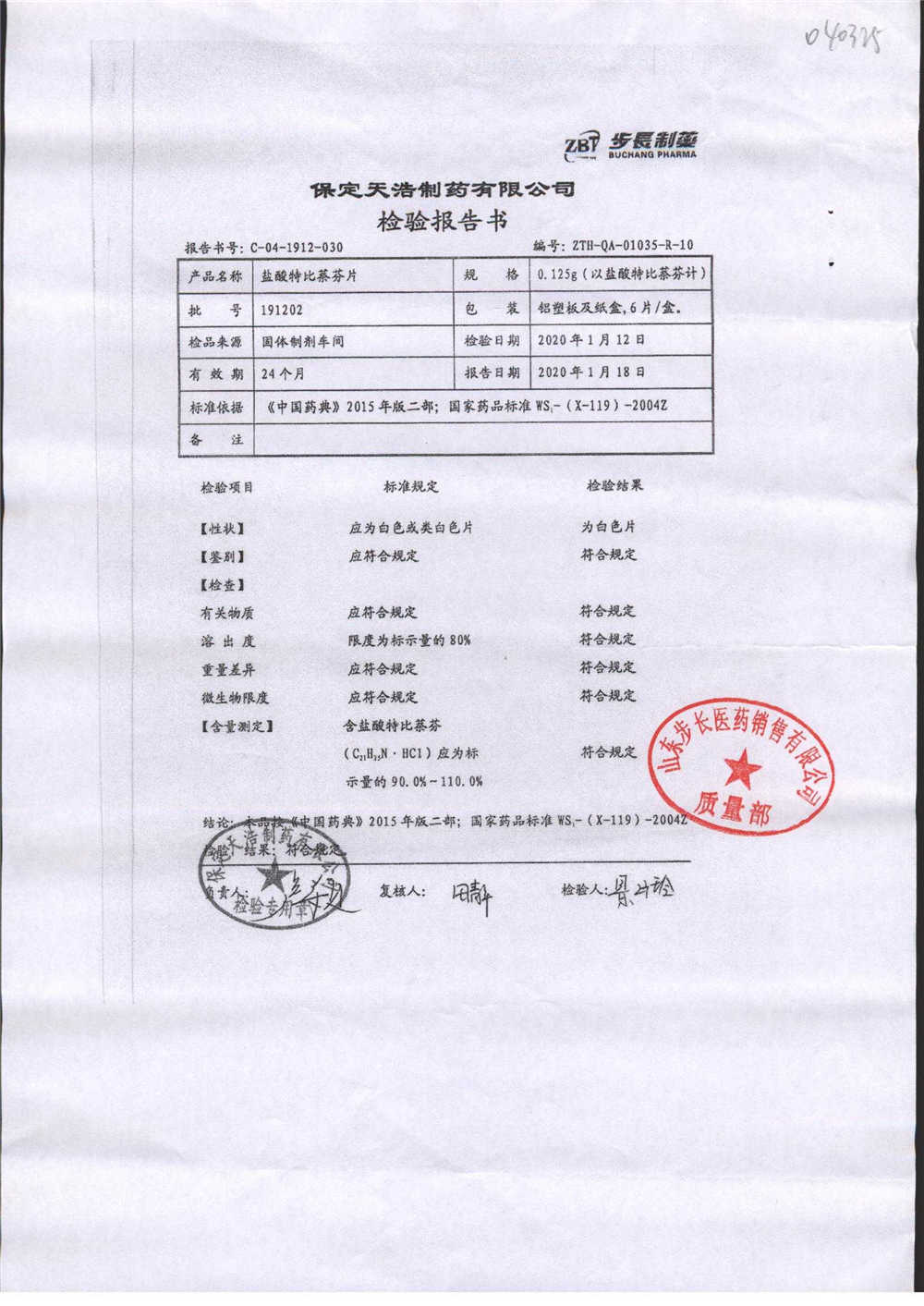 盐酸特比萘芬片 | 0.125g*6片 | 200403 | 查看详情 |