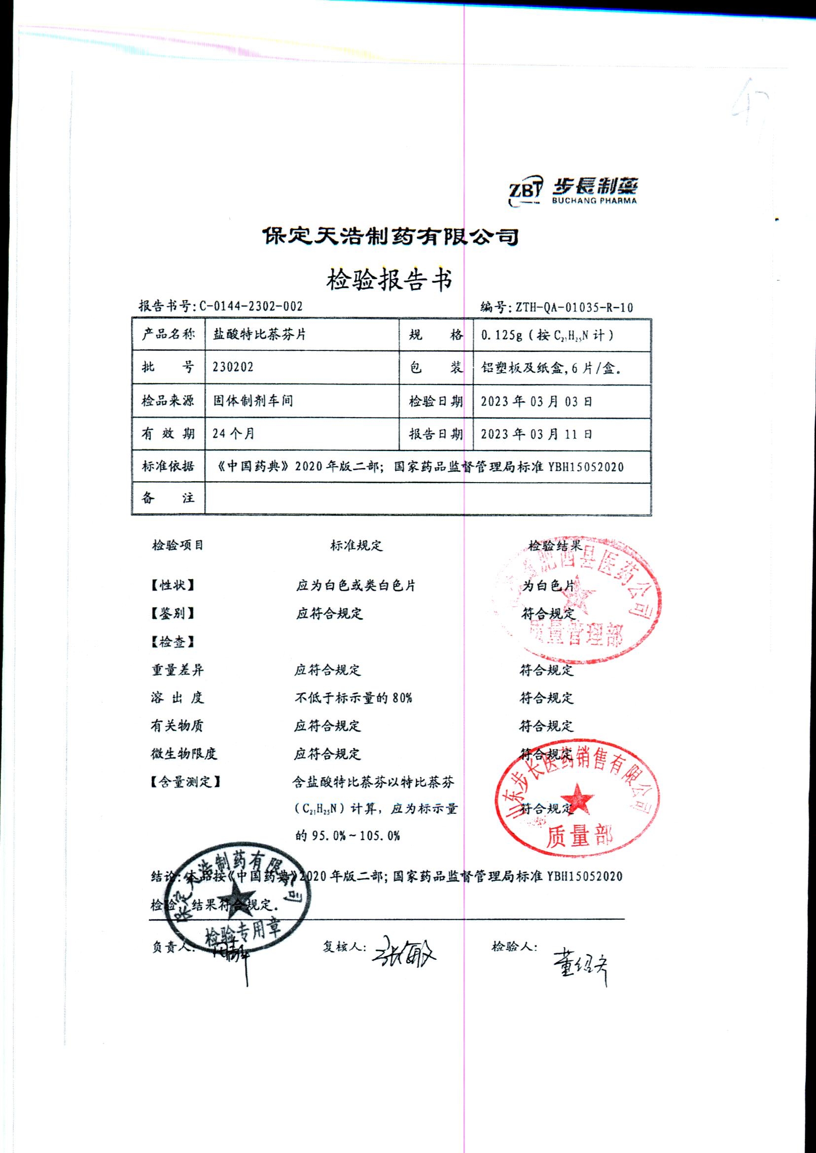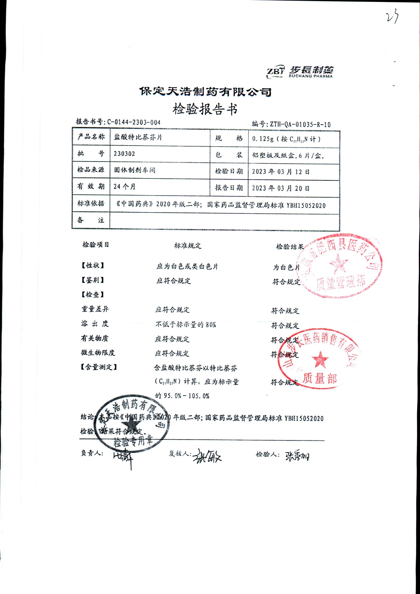 盐酸特比萘芬片 | 0.125g*6片 | 230302 | 查看详情 |