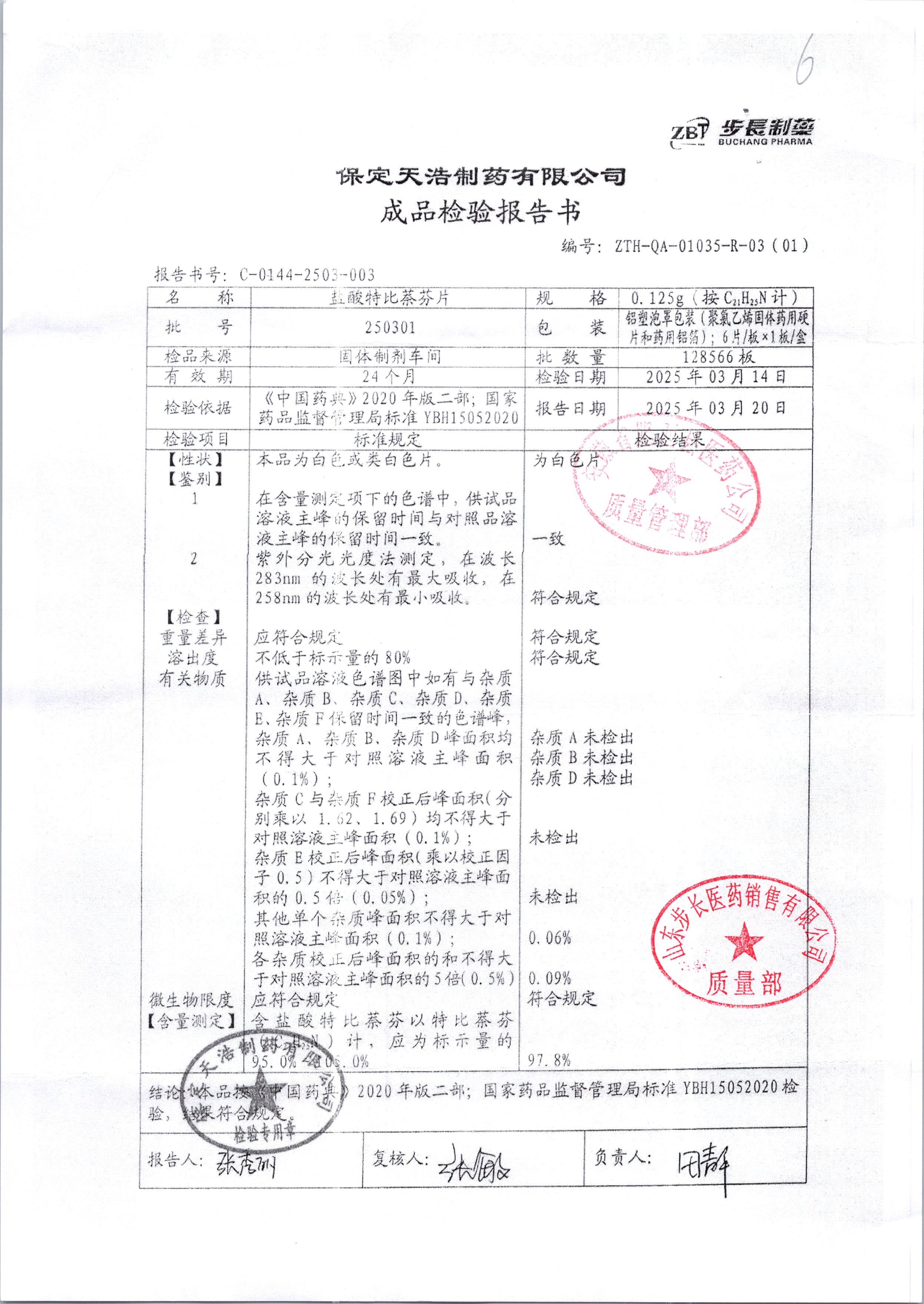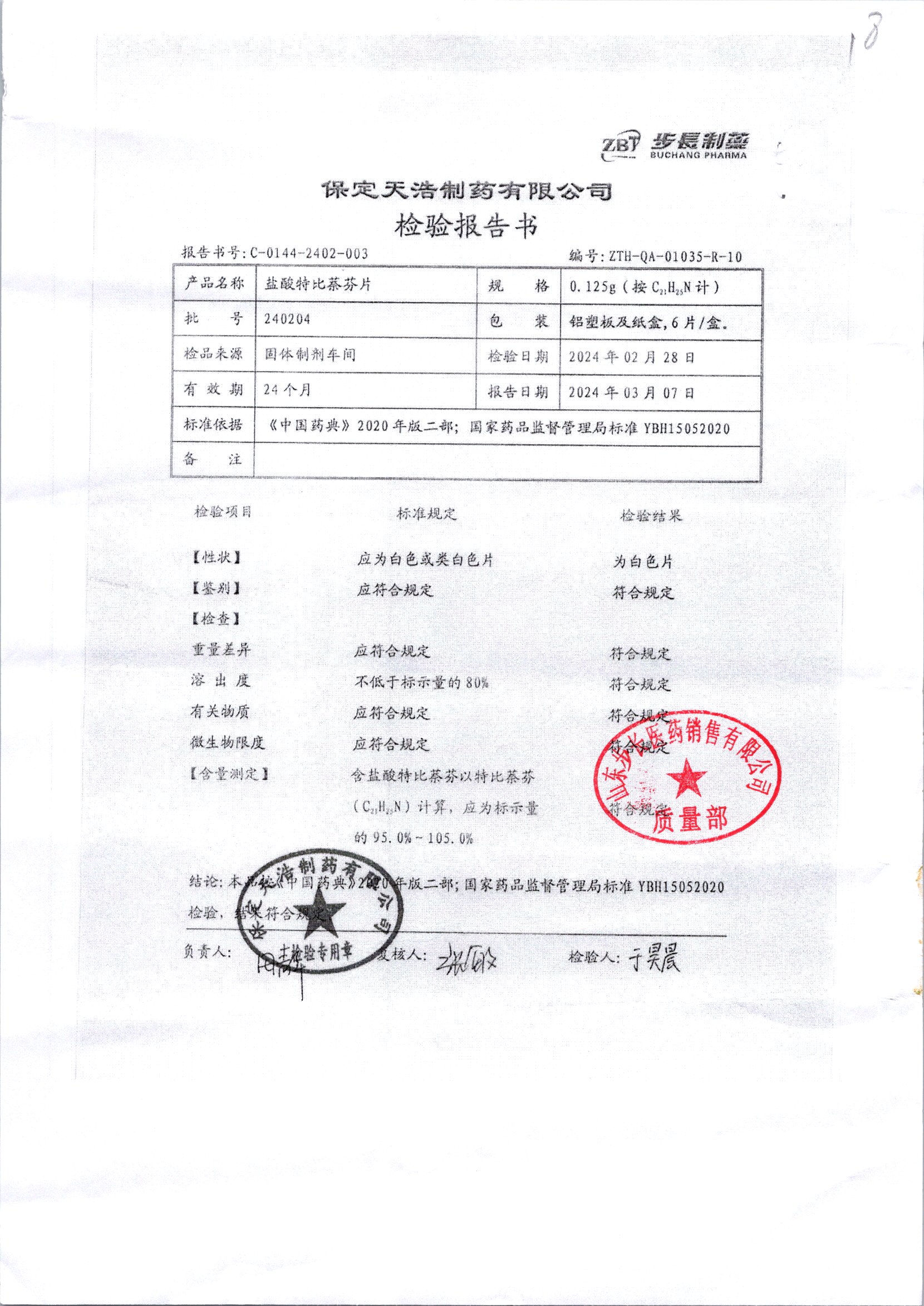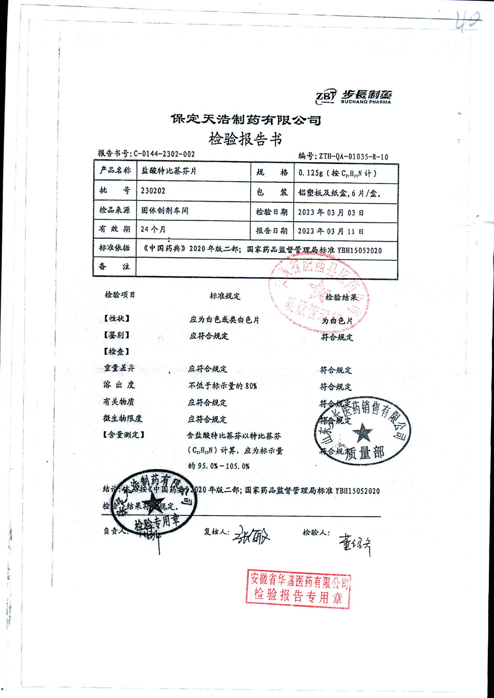 盐酸特比萘芬片 | 0.125g*6片 | 240502 | 查看详情 |