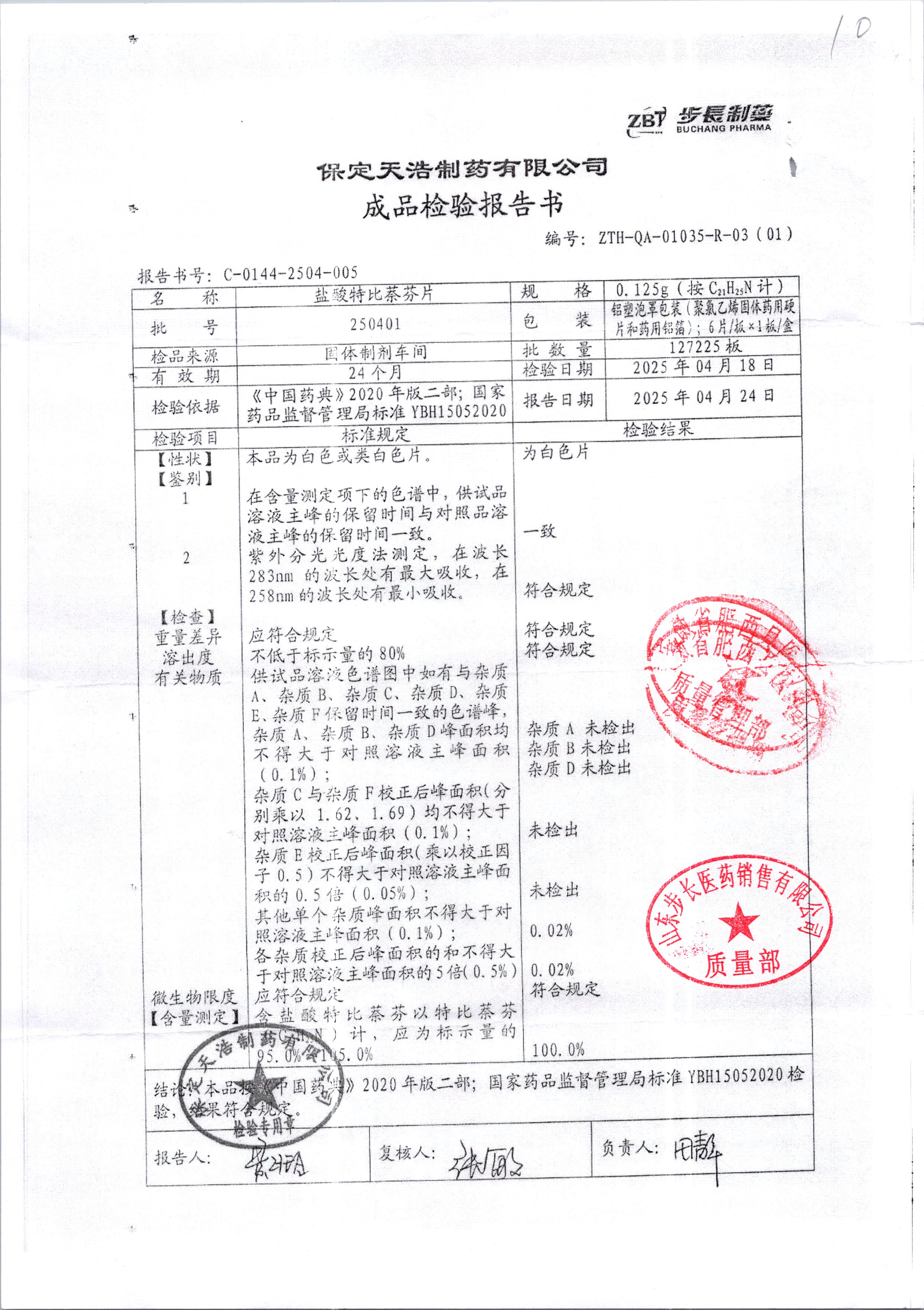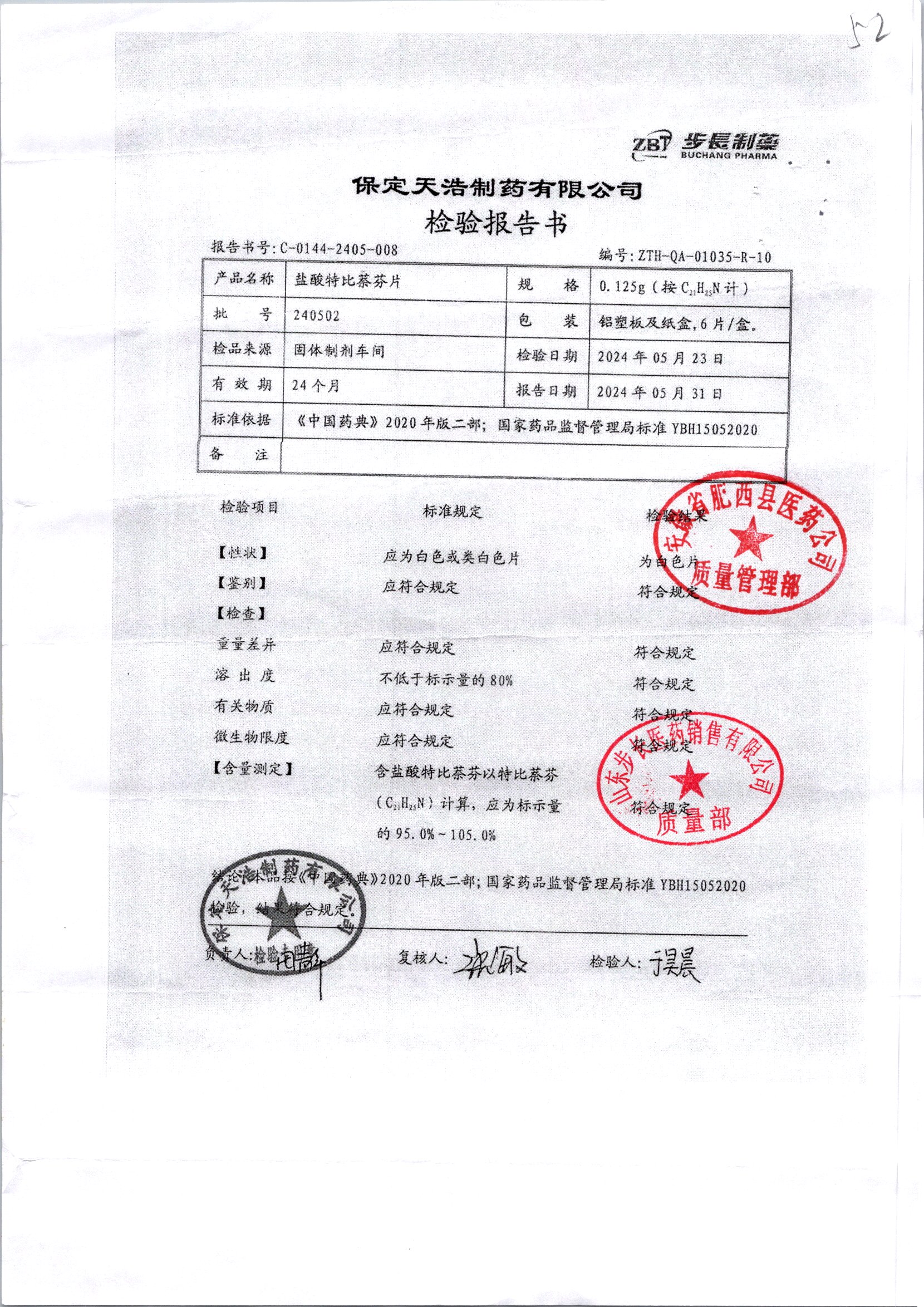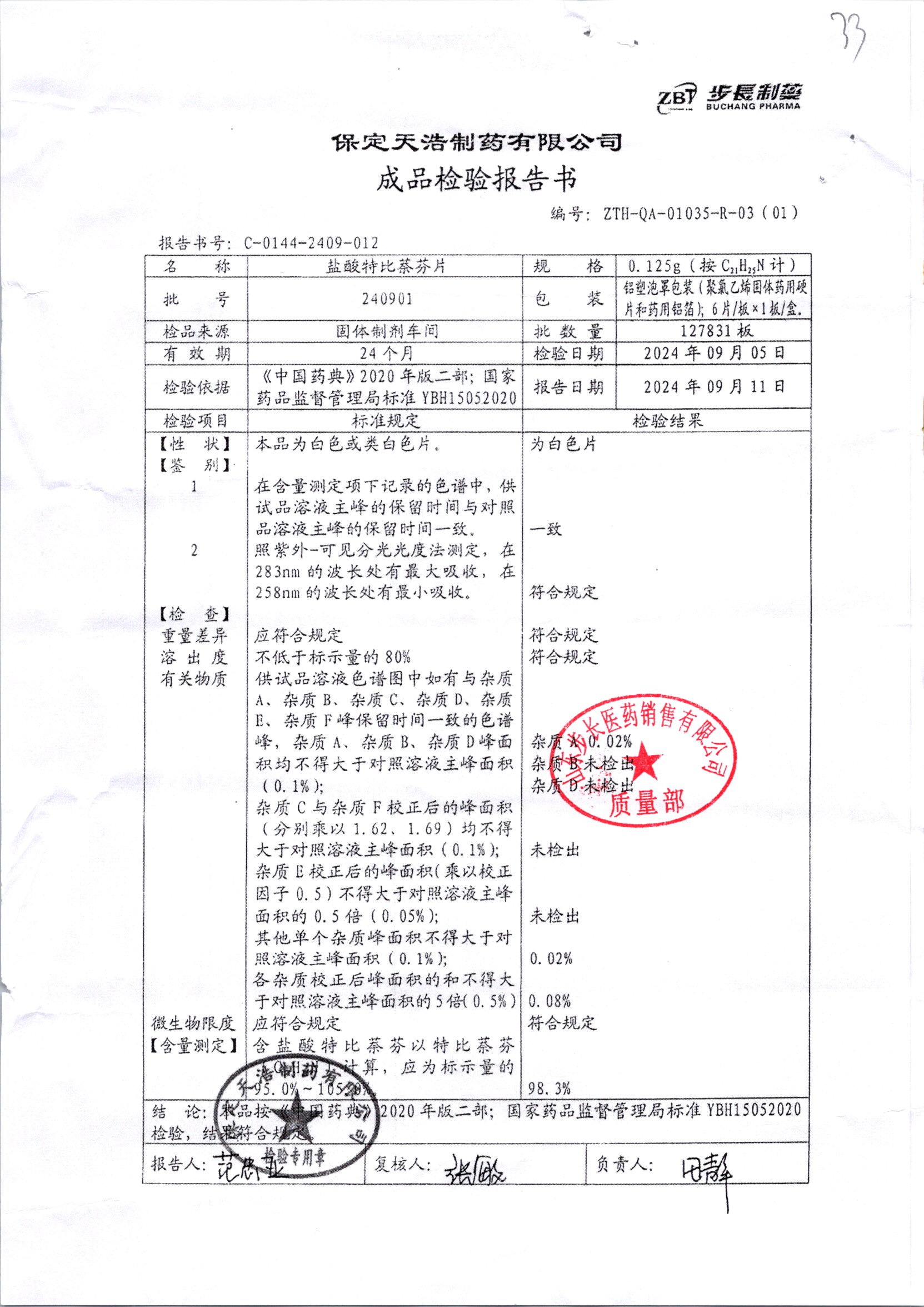 盐酸特比萘芬片 | 0.125g*6片 | 240502 | 查看详情 |