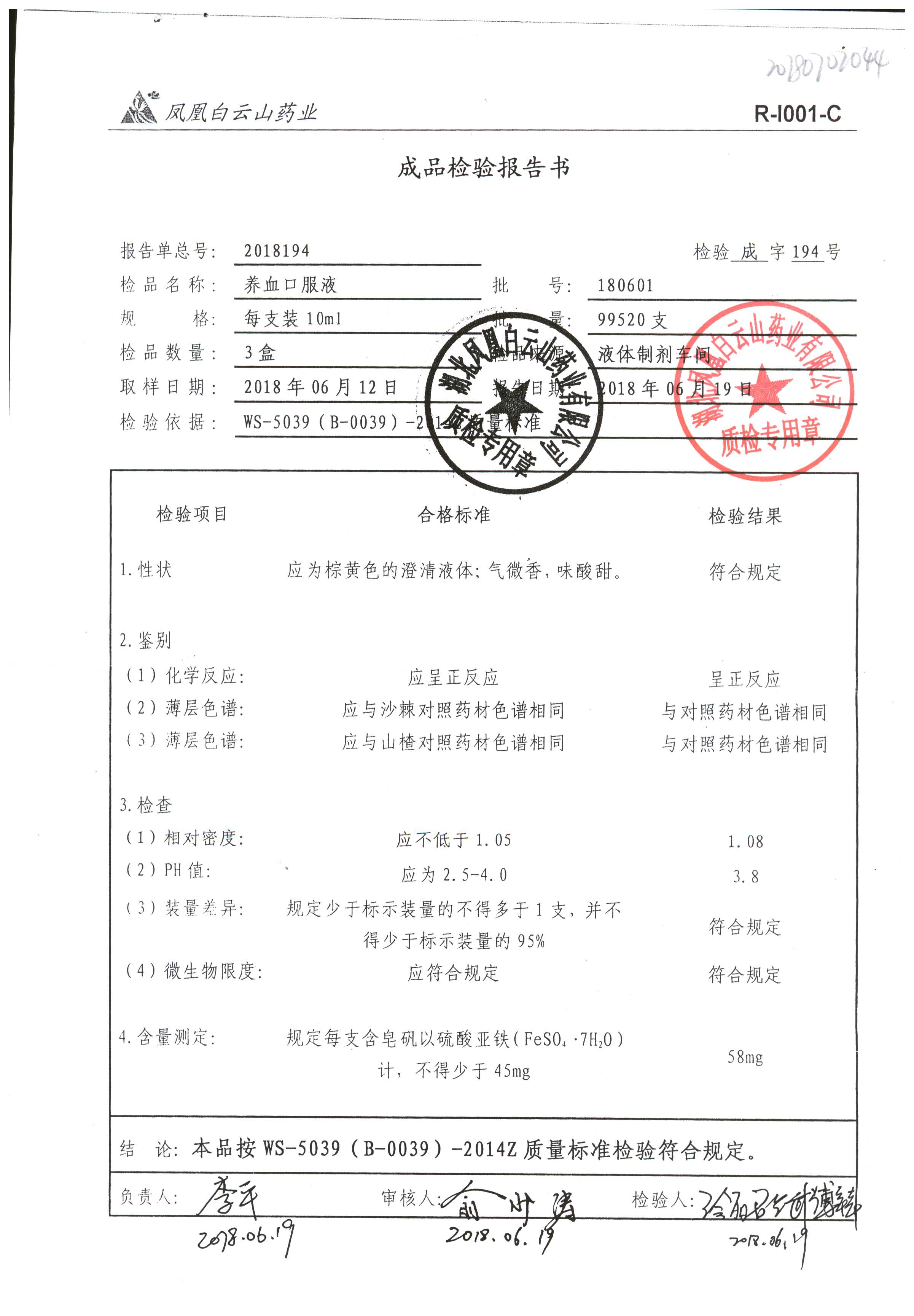 药检报告