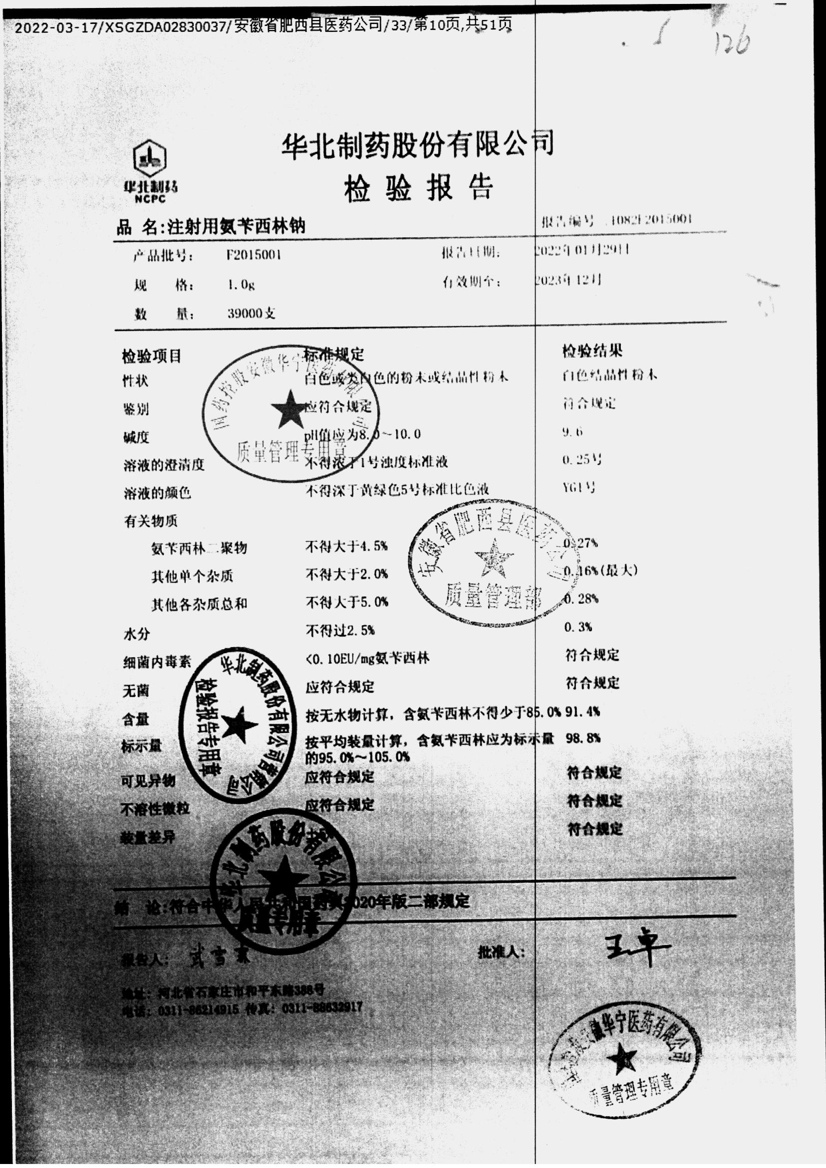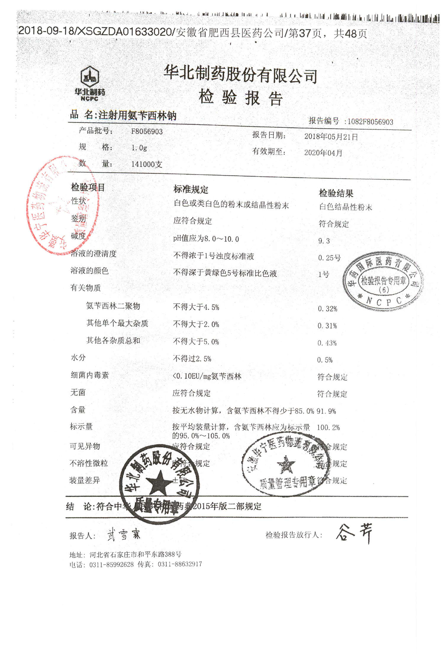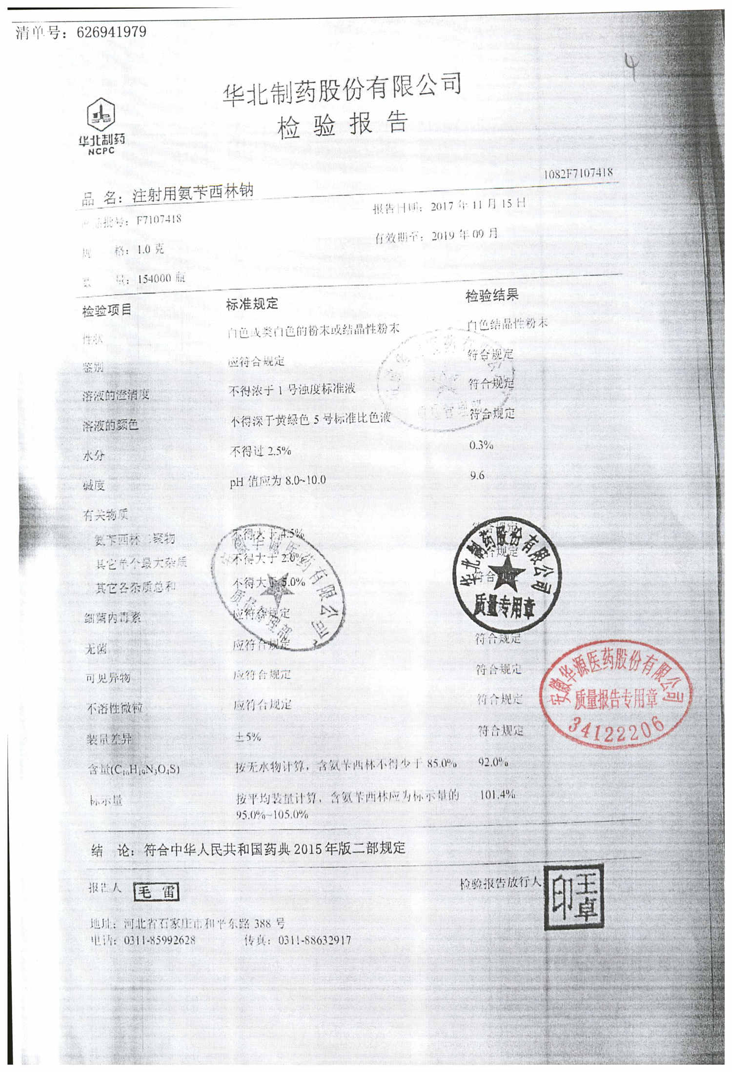 注射用氨苄西林钠 | 1.0g | F2015001 | 查看详情 |