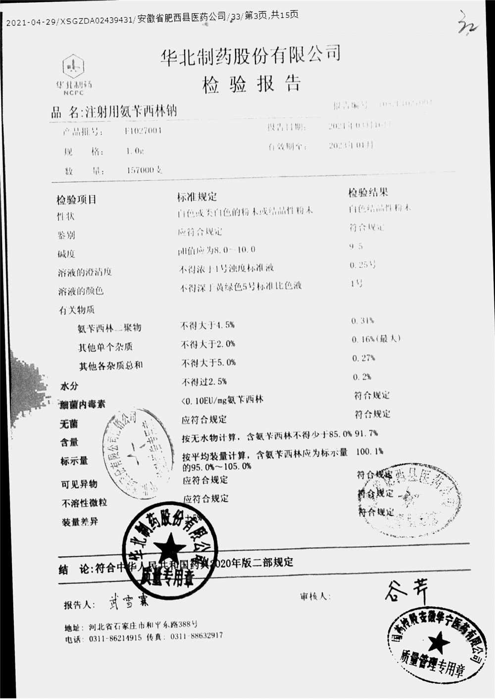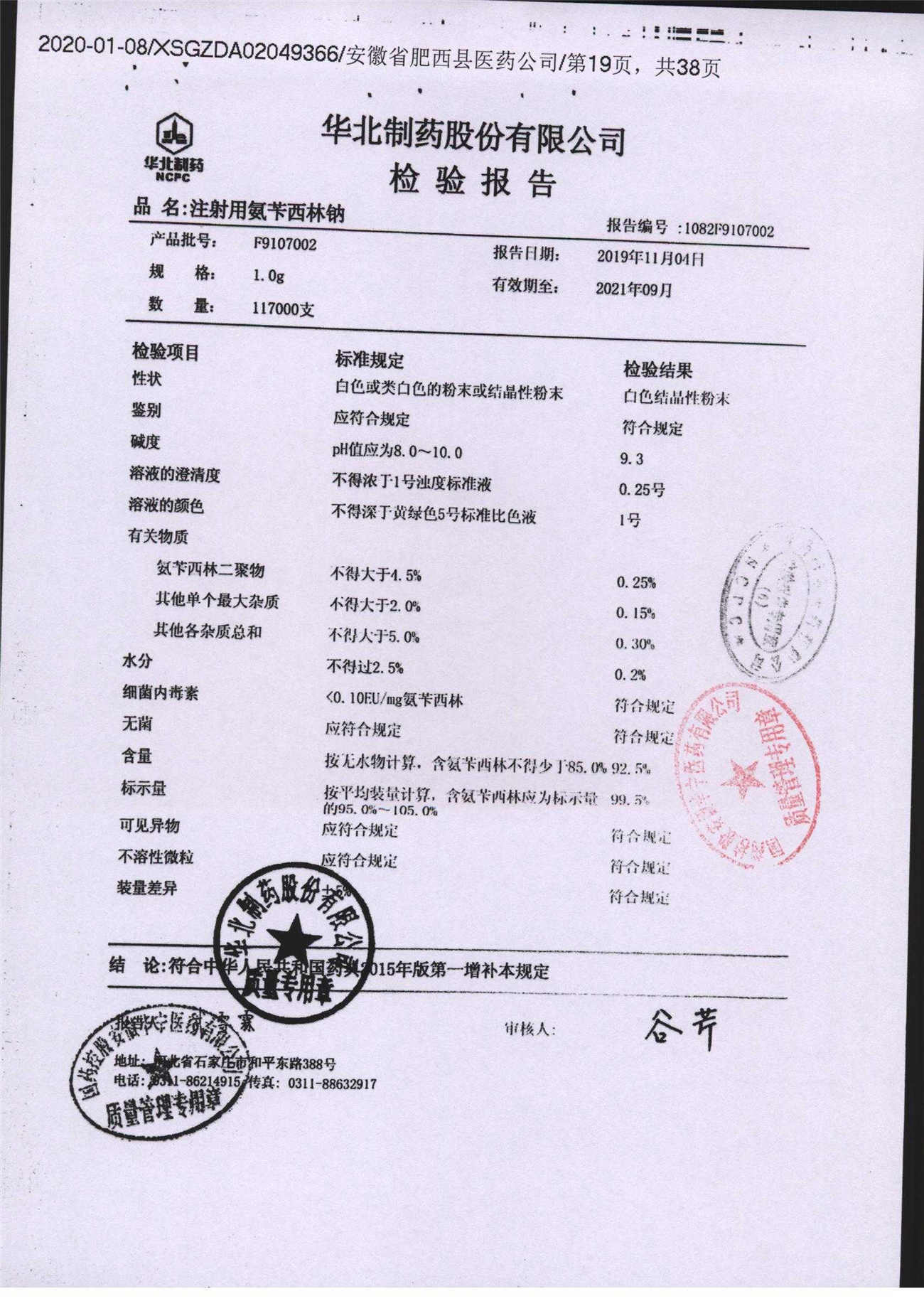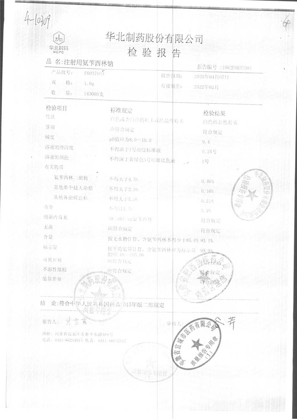 注射用氨苄西林钠 | 1.0g | F2015001 | 查看详情 |