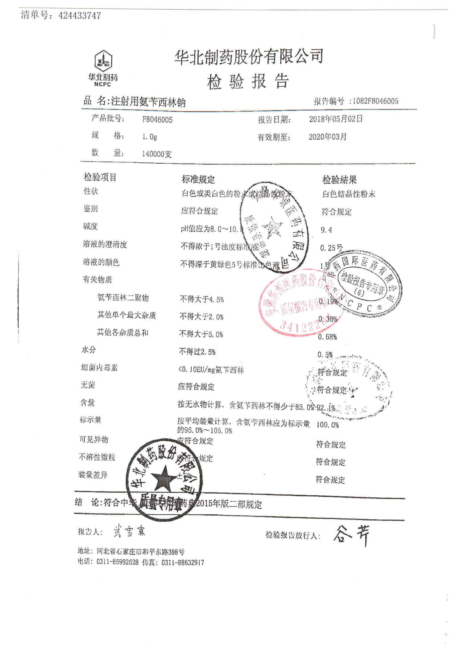 注射用氨苄西林钠 | 1.0g | F8046005 | 查看详情 |