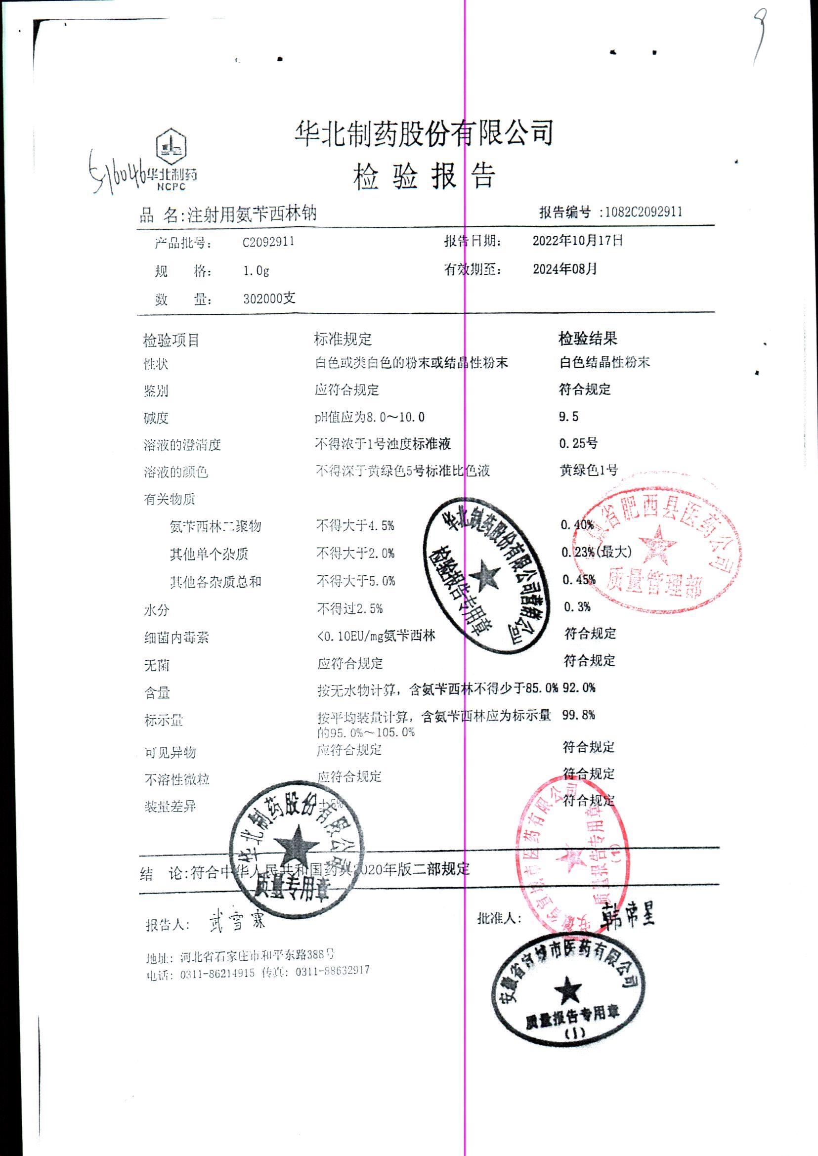 注射用氨苄西林钠 | 1.0g | F9107002 | 查看详情 |