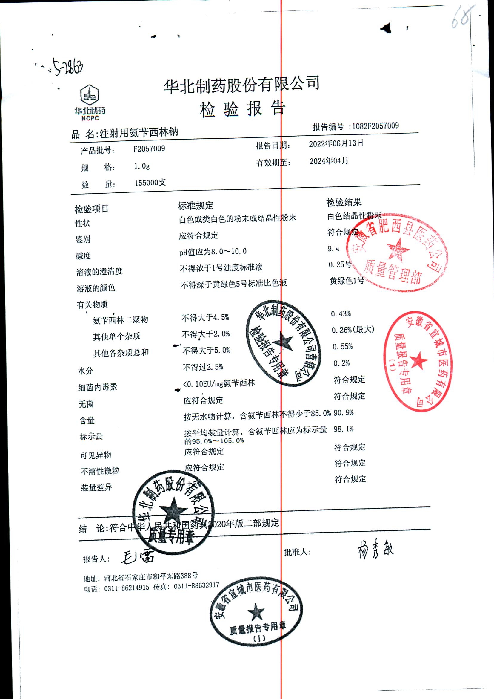 注射用氨苄西林钠 | 1.0g | F2057001 | 查看详情 |