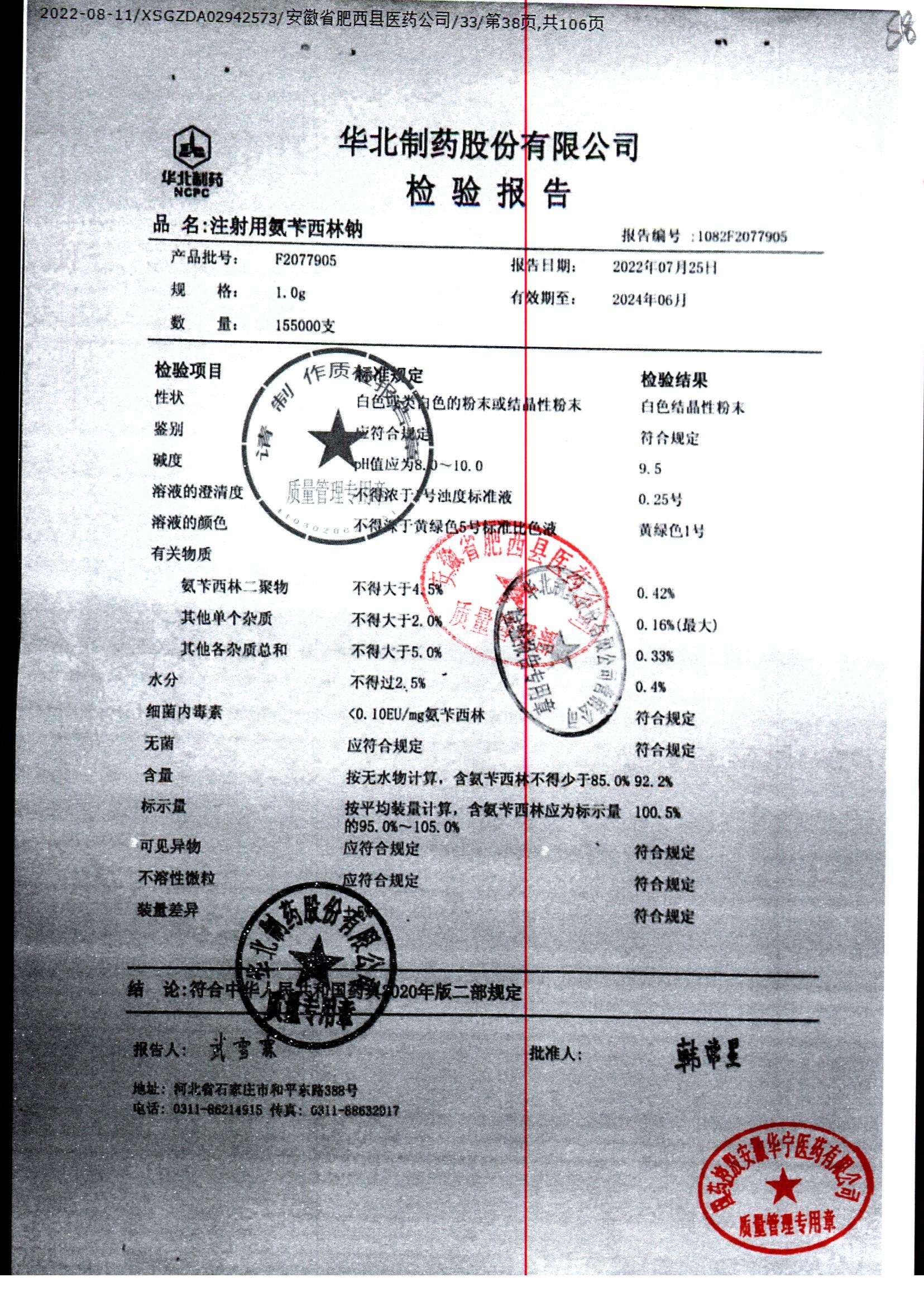 注射用氨苄西林钠 | 1.0g | F1056001 | 查看详情 |