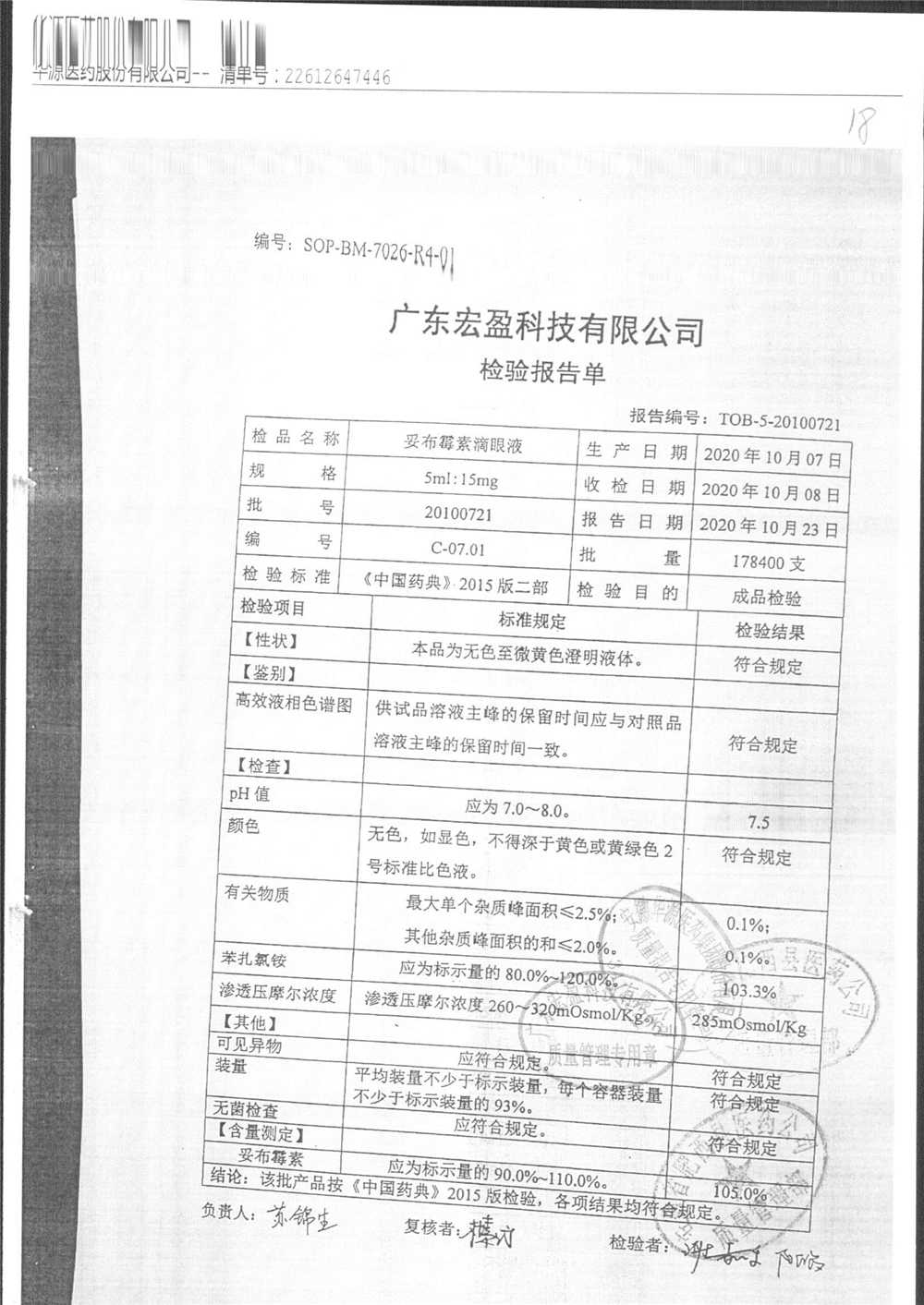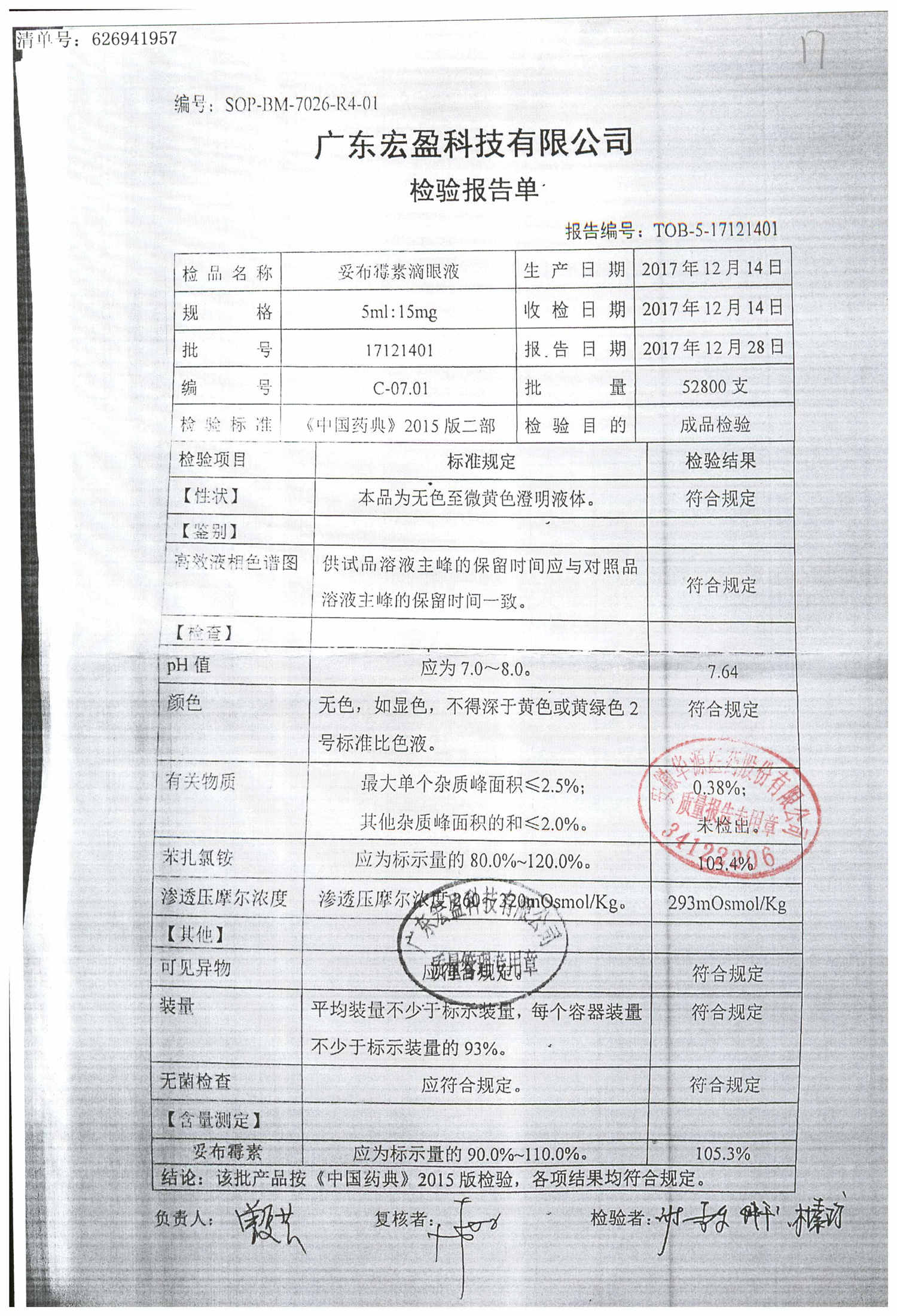 妥布霉素滴眼液 | 5ml:15mg | 17121401 | 查看详情 |