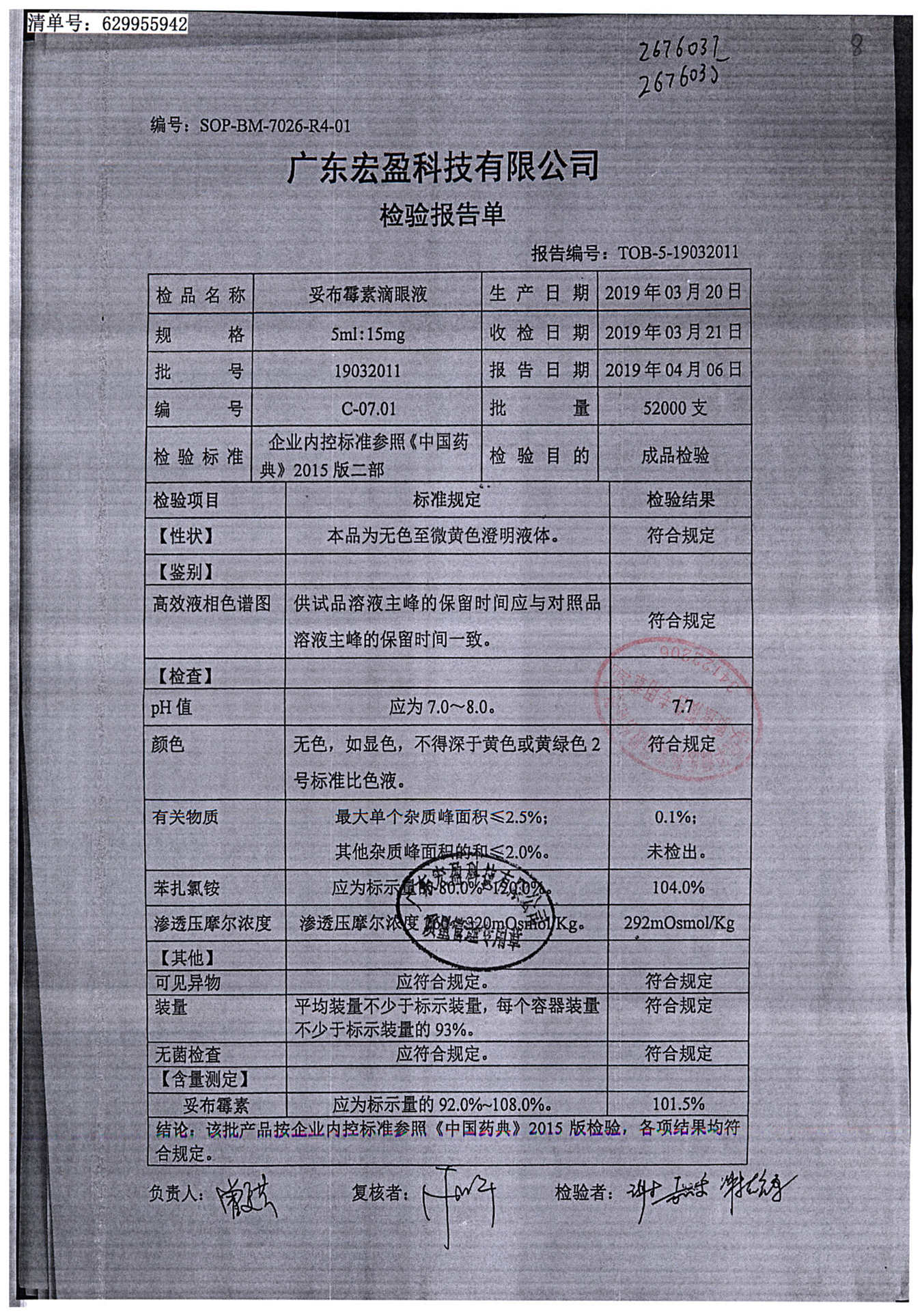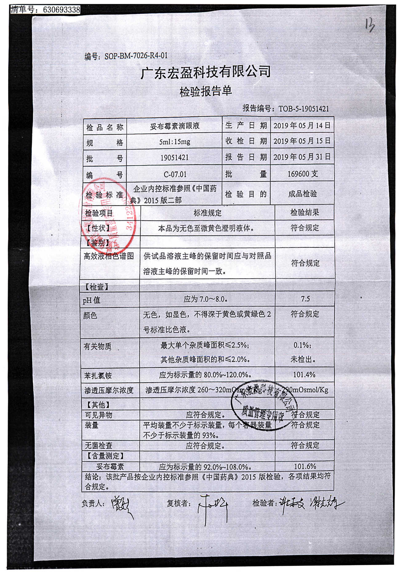 妥布霉素滴眼液 | 5ml:15mg | 19032011 | 查看详情 |