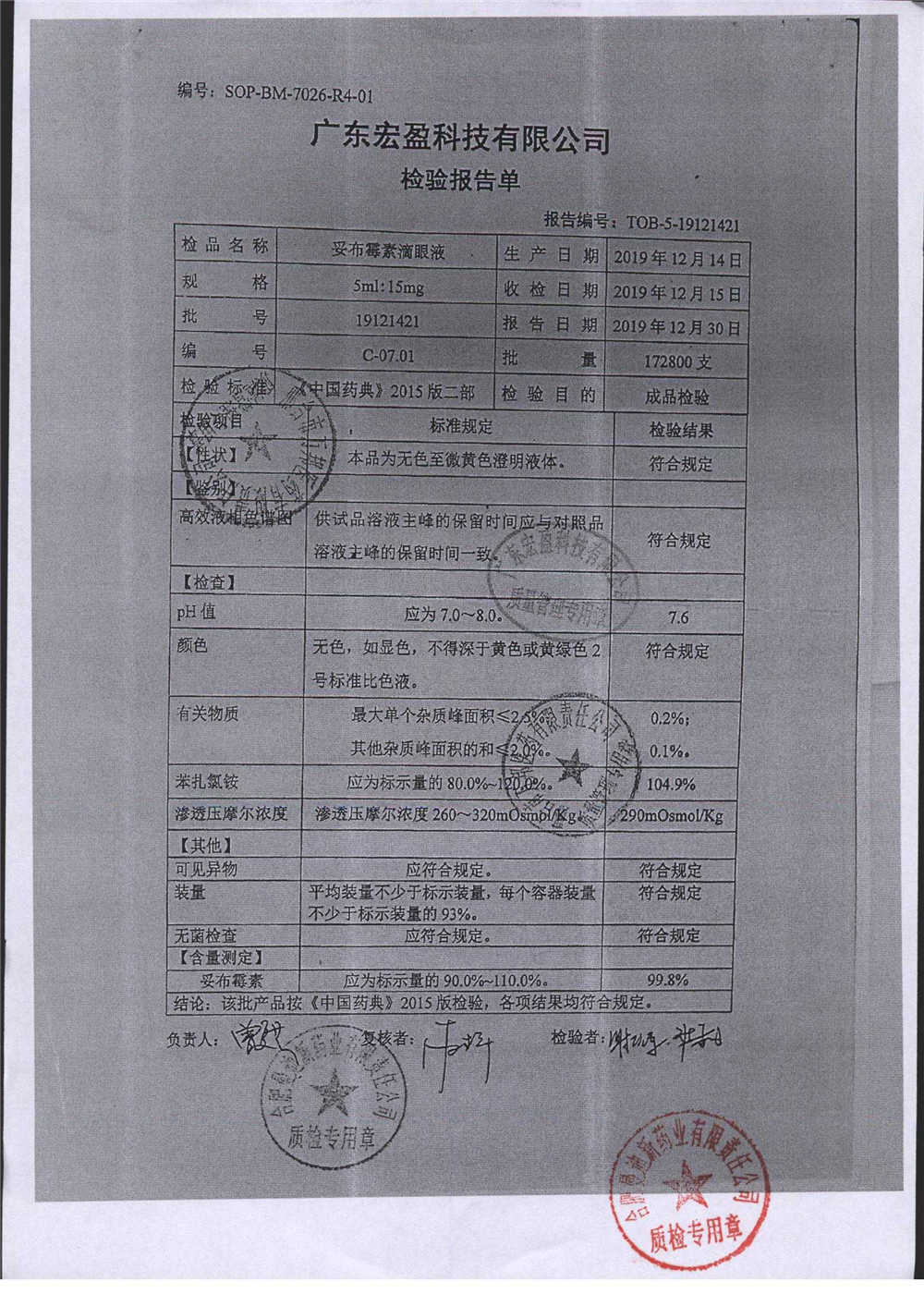 妥布霉素滴眼液 | 5ml:15mg | 19051421 | 查看详情 |