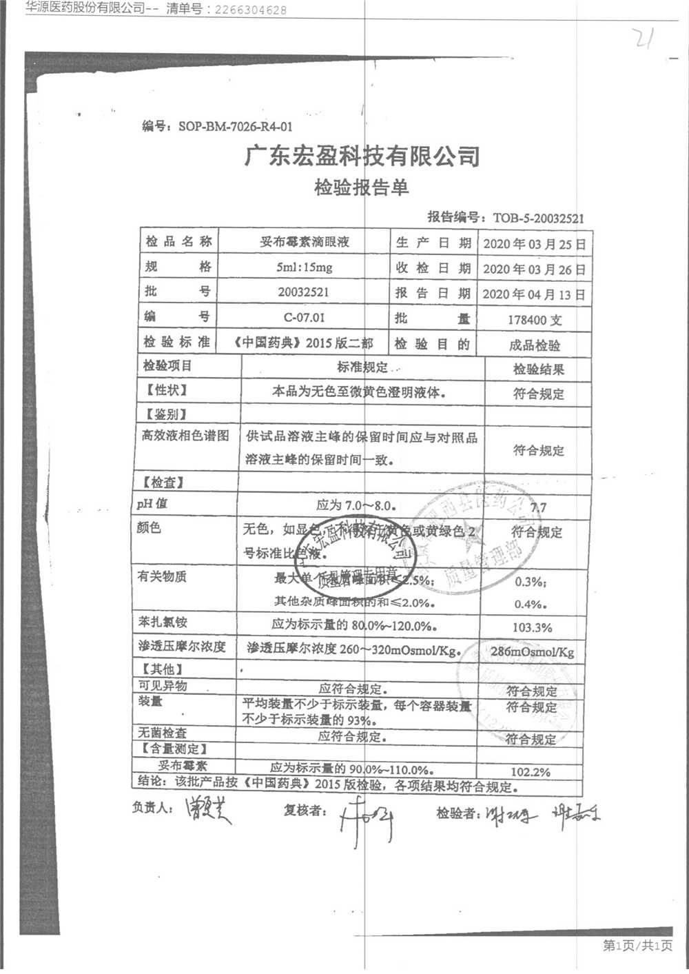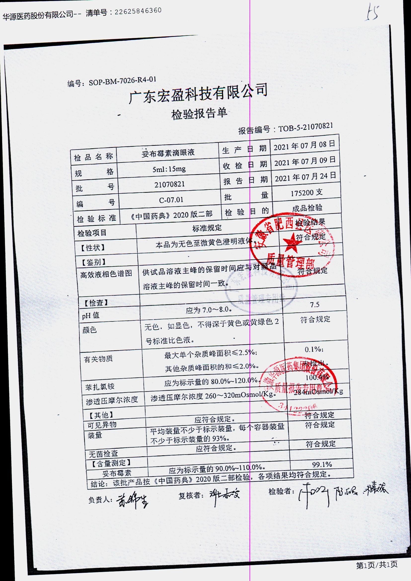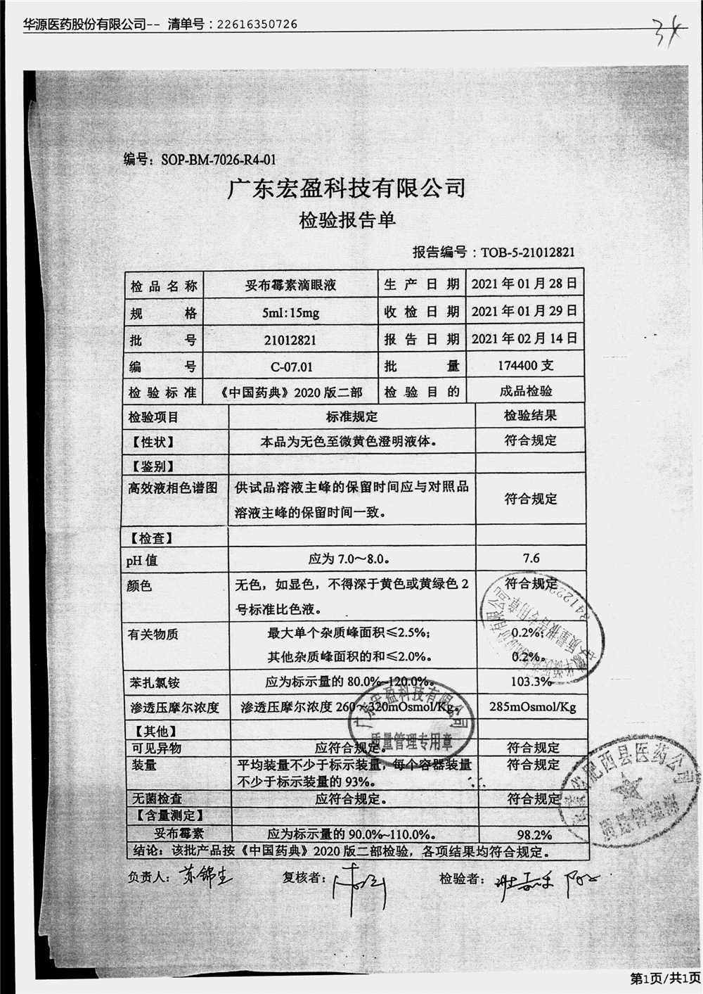 妥布霉素滴眼液 | 5ml:15mg | 21062321 | 查看详情 |