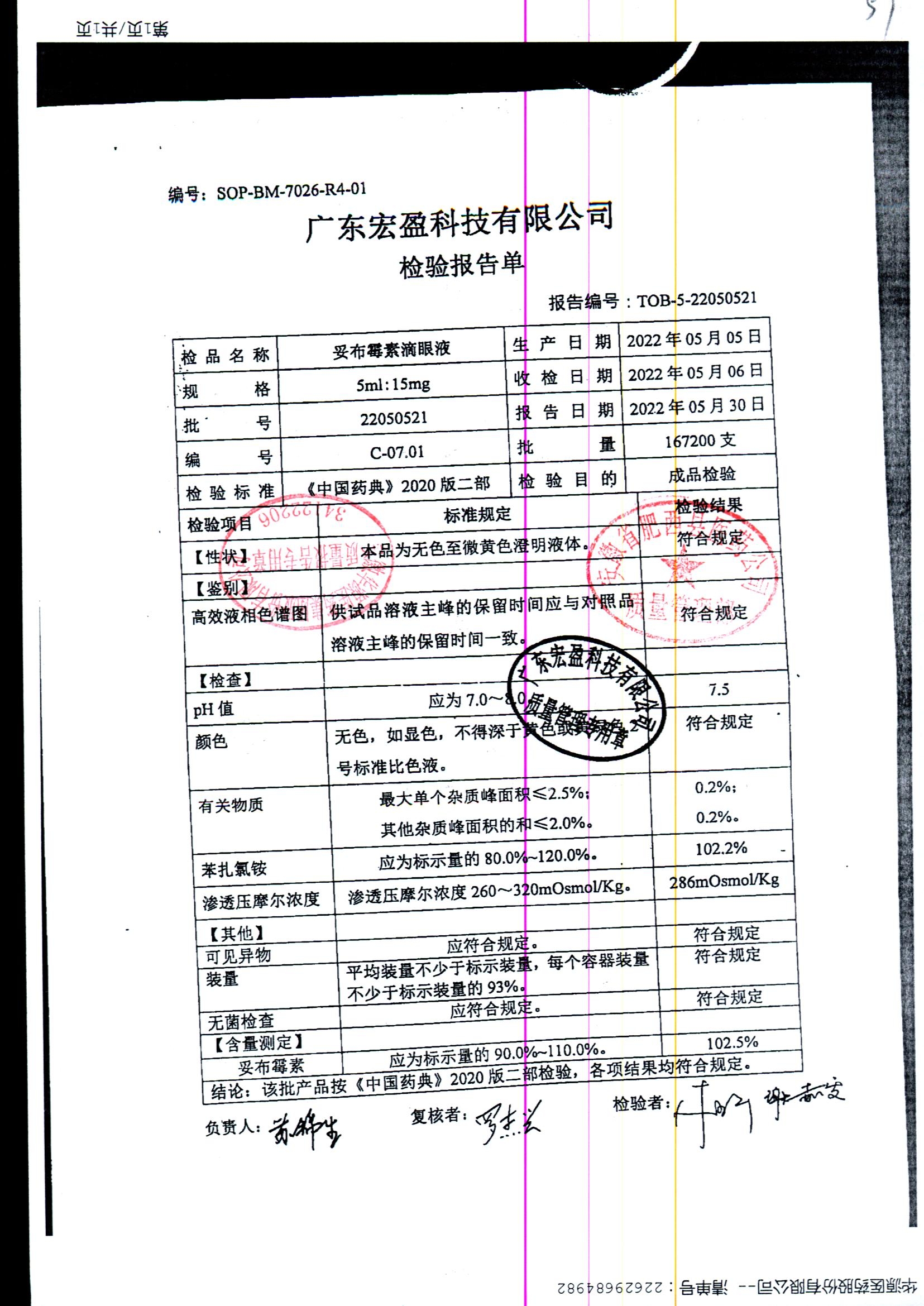 妥布霉素滴眼液 | 5ml:15mg | 23112721 | 查看详情 |