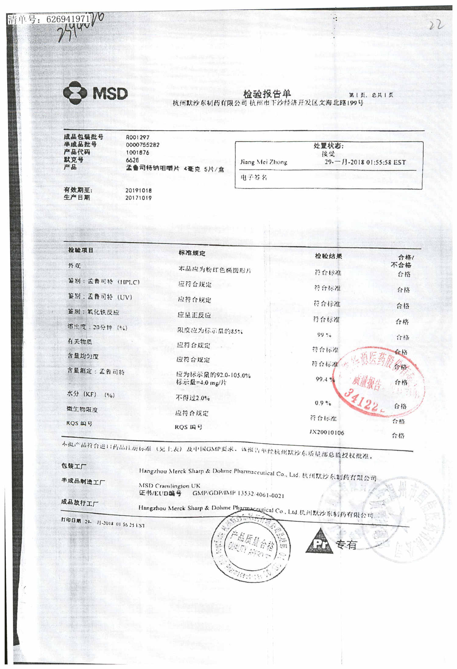 孟鲁司特钠咀嚼片 | 4mg*5片 | R001297 | 查看详情 |