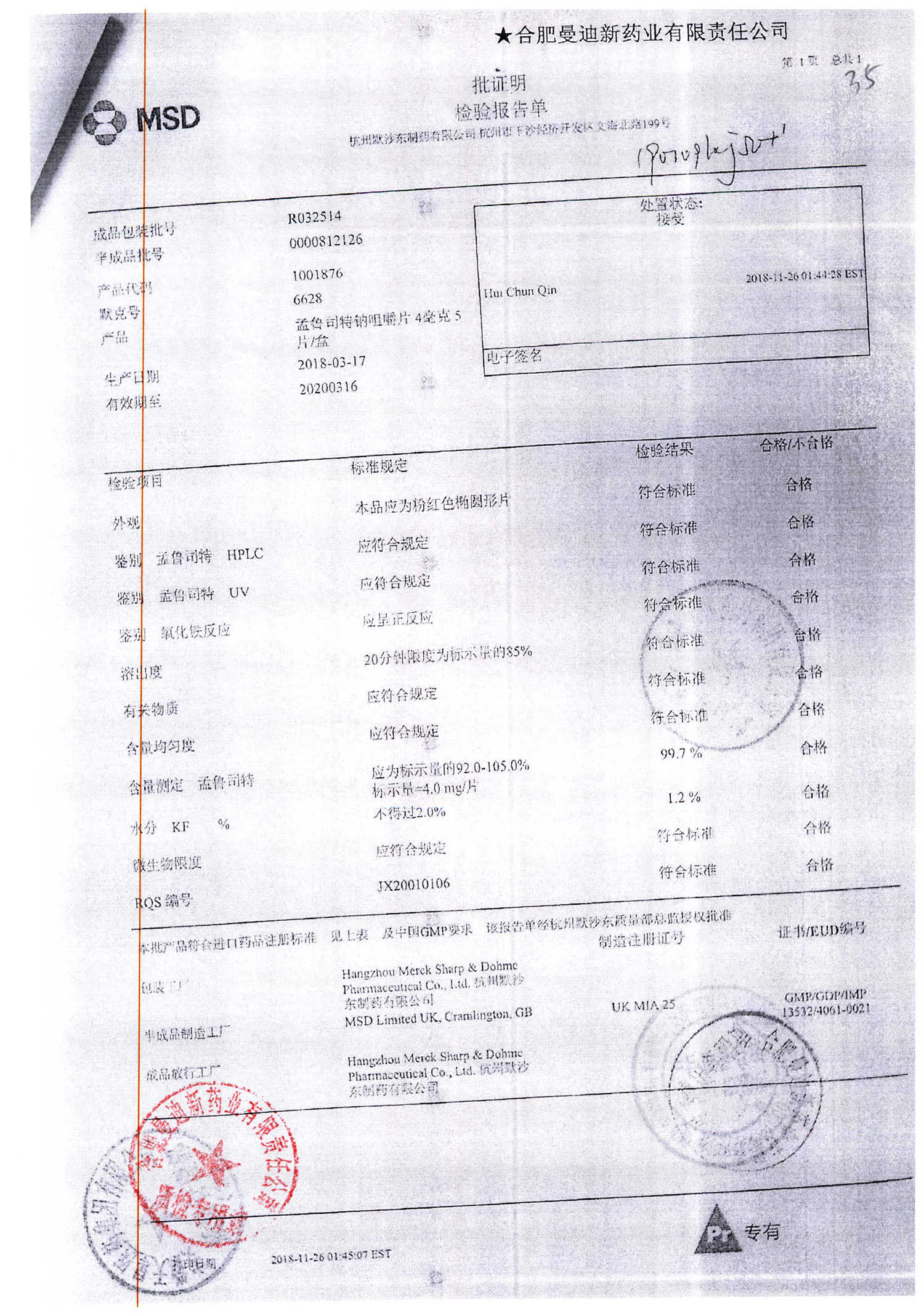 孟鲁司特钠咀嚼片 | 4mg*5片 | S018499 | 查看详情 |