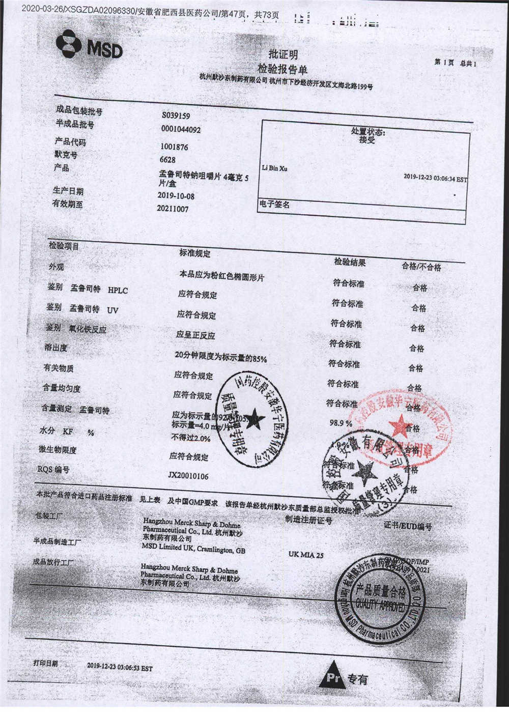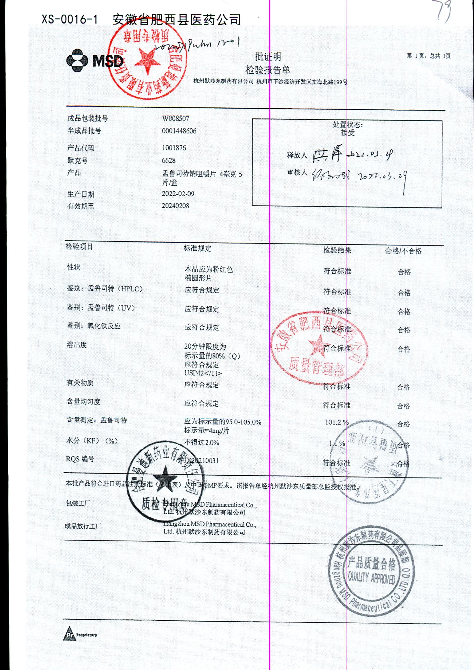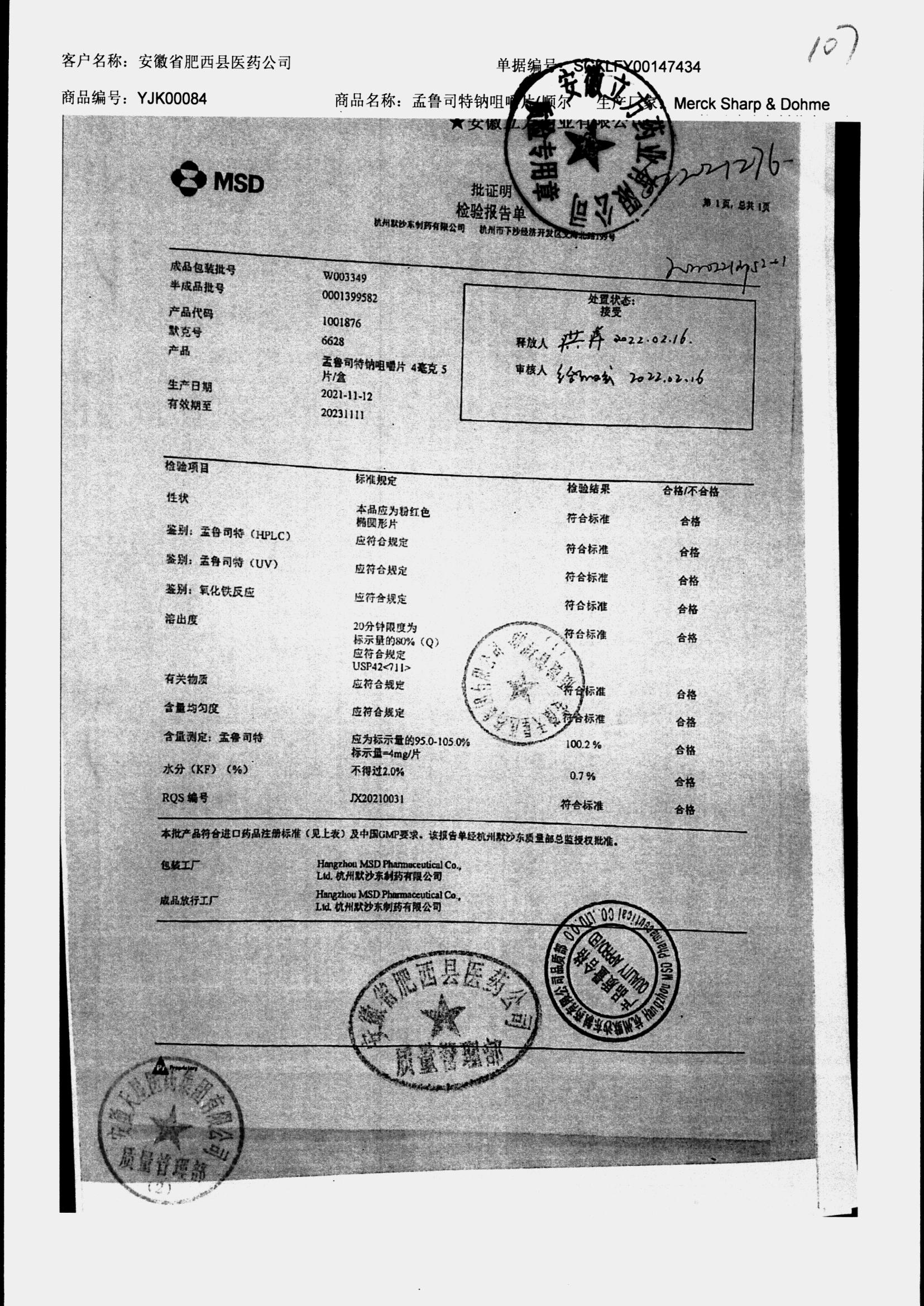 孟鲁司特钠咀嚼片 | 4mg*5片 | S039159 | 查看详情 |